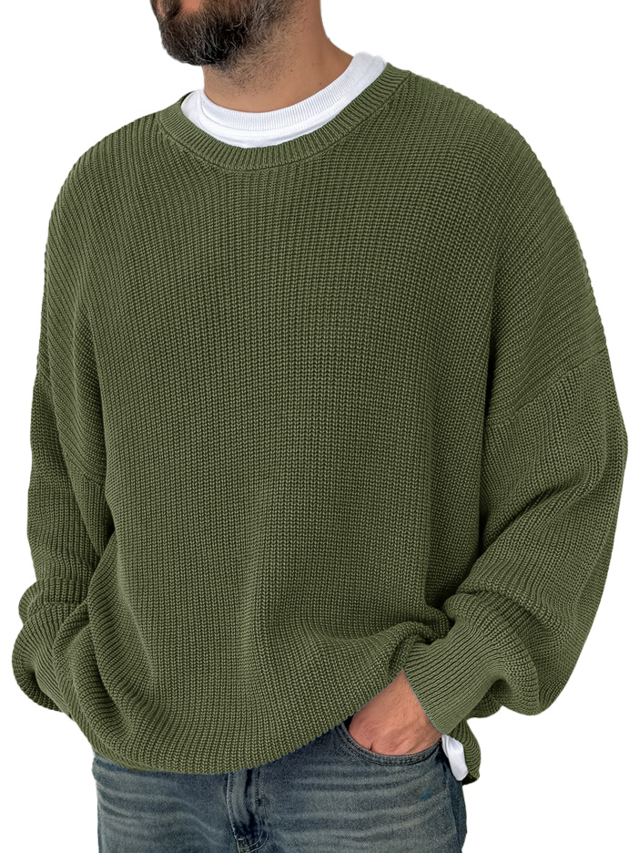 Men's Fashionable Loose Thickened Crew Neck Sweater