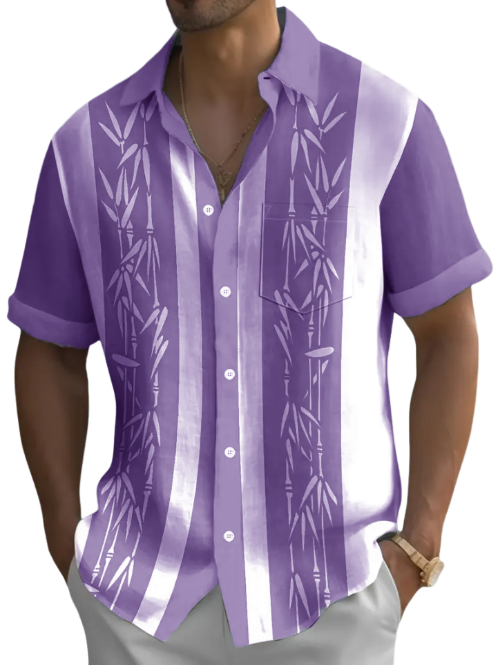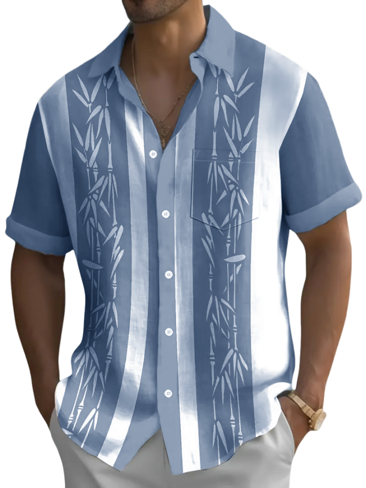 Men's Hawaiian Bamboo Print Pocket Short Sleeve Shirt
