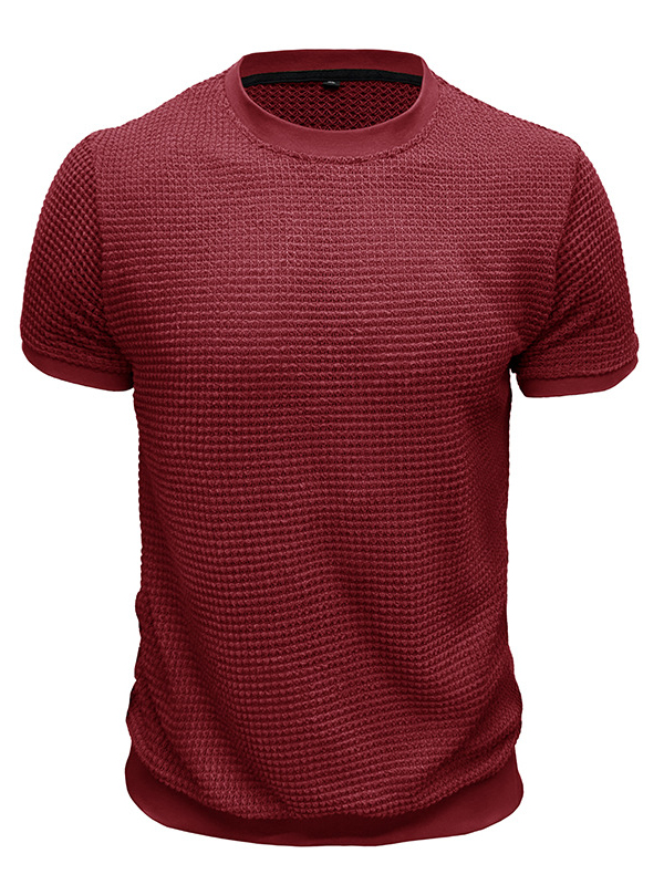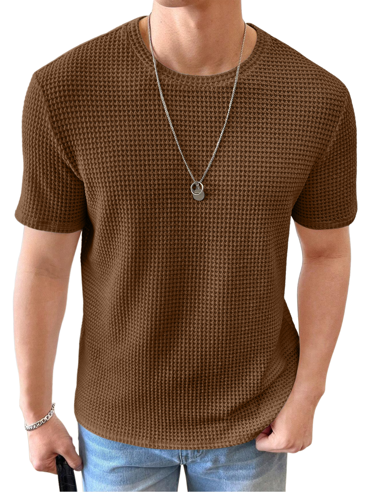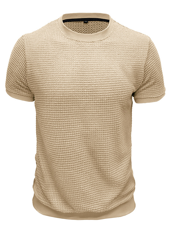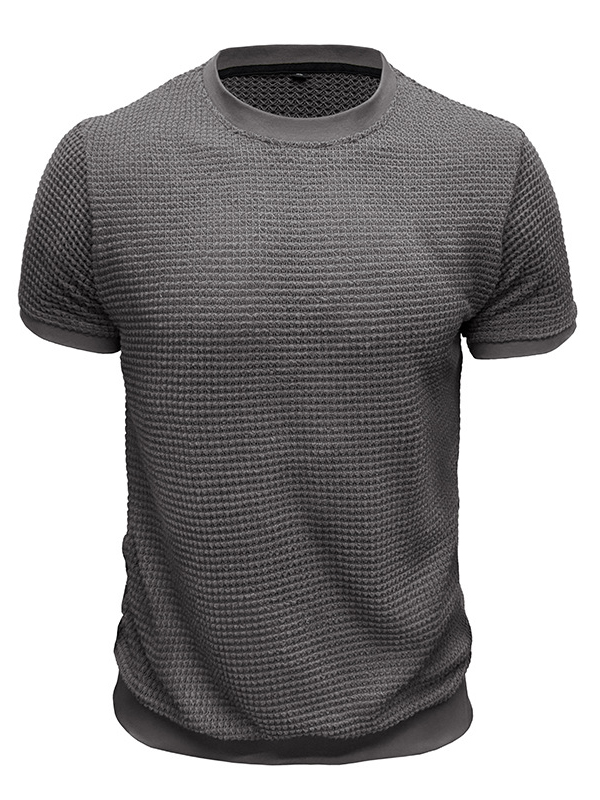 Men's Knitted Waffle Quality Casual Round Neck Short-sleeved T-shirt