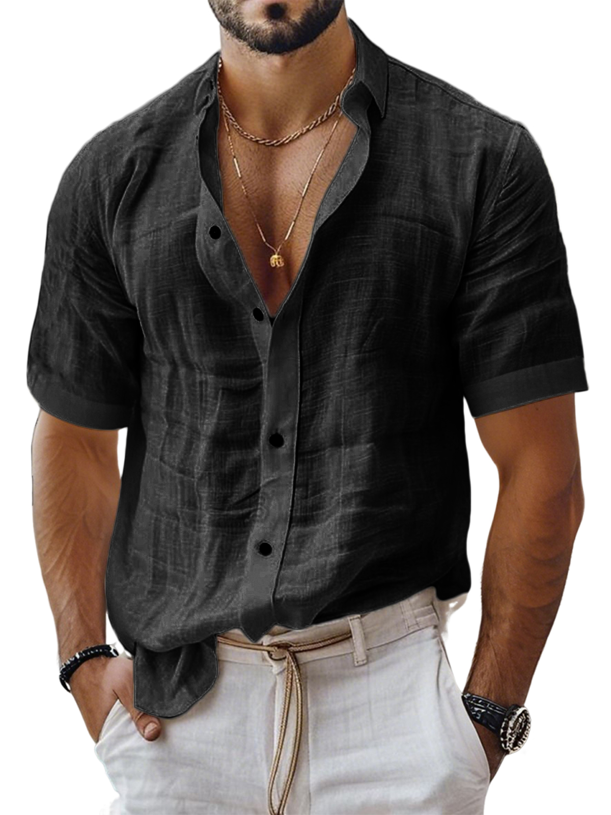 Men's Linen Resort Casual Button-Down Everyday Short Sleeve Shirt