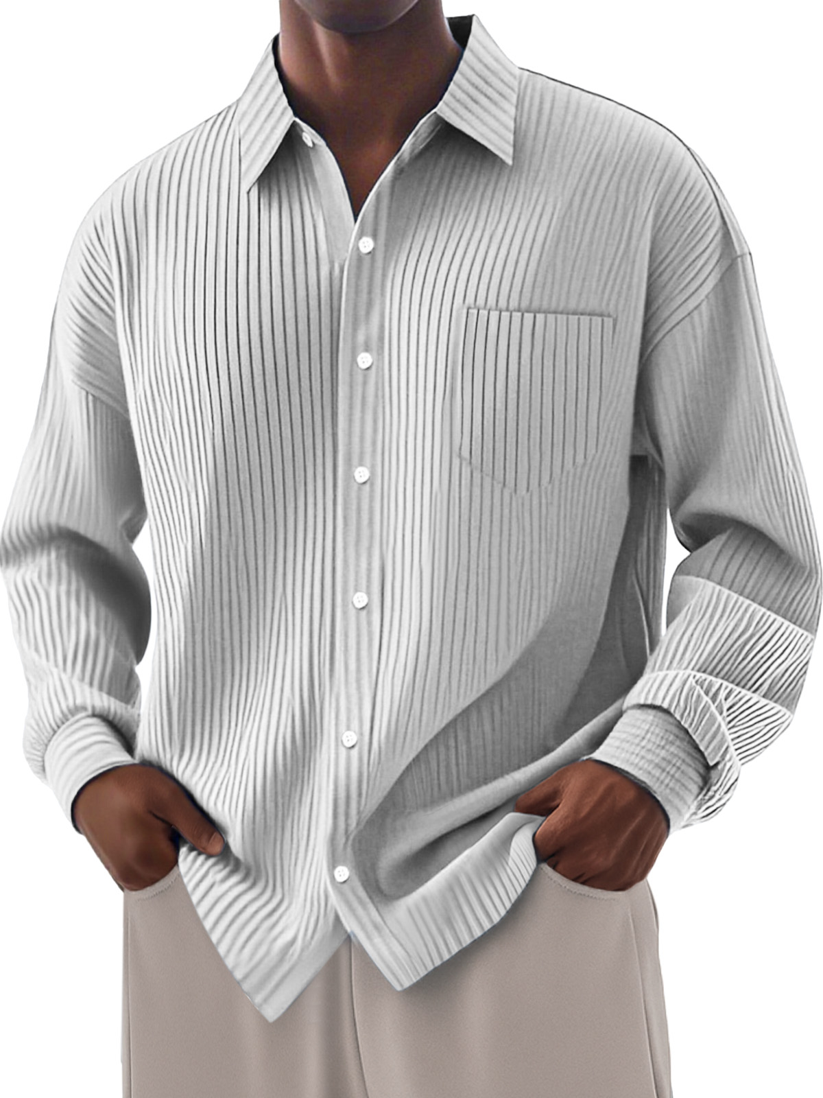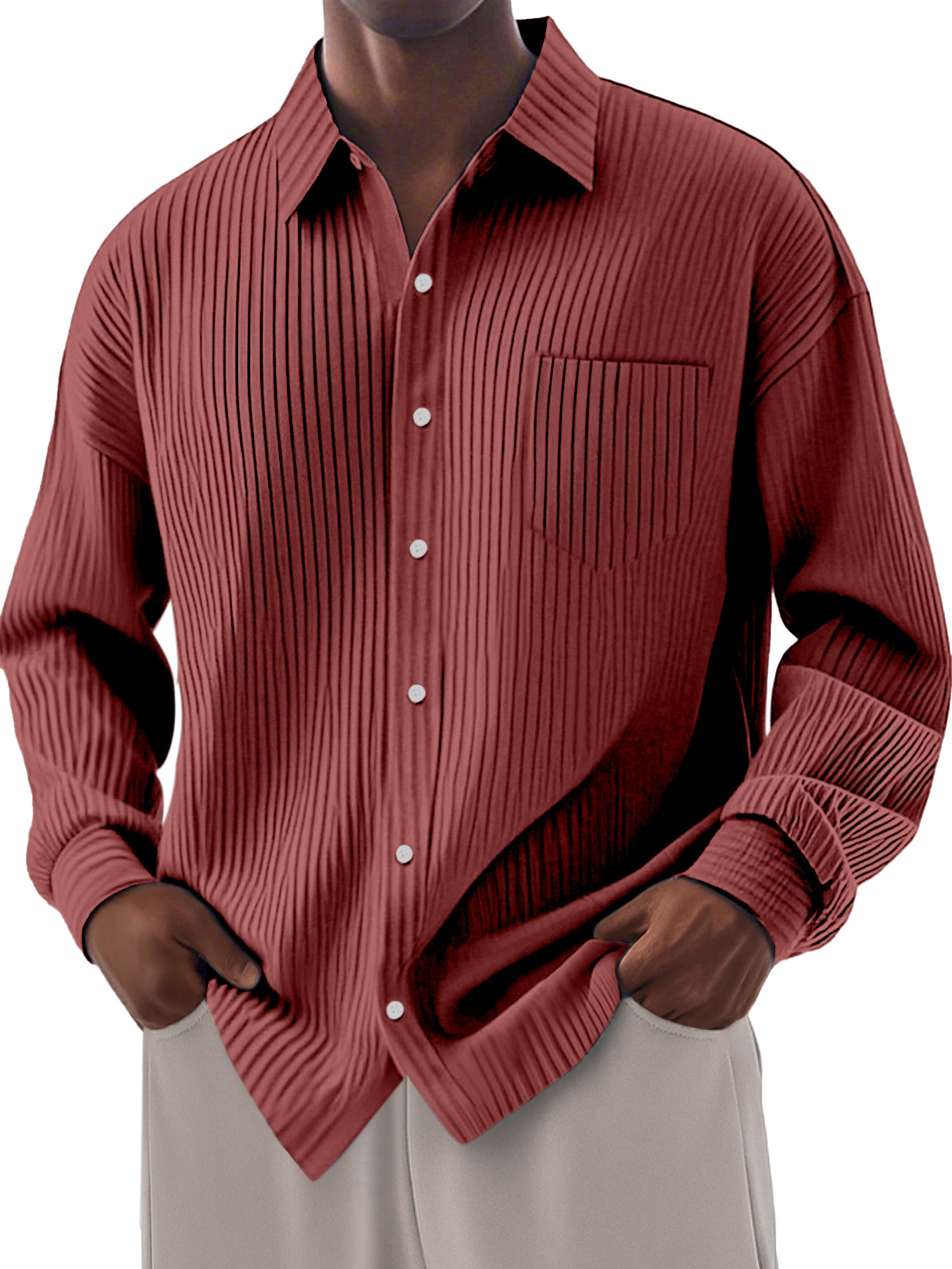 Men's Loose Everyday Breathable Solid Color Simple Long-sleeved Shirt