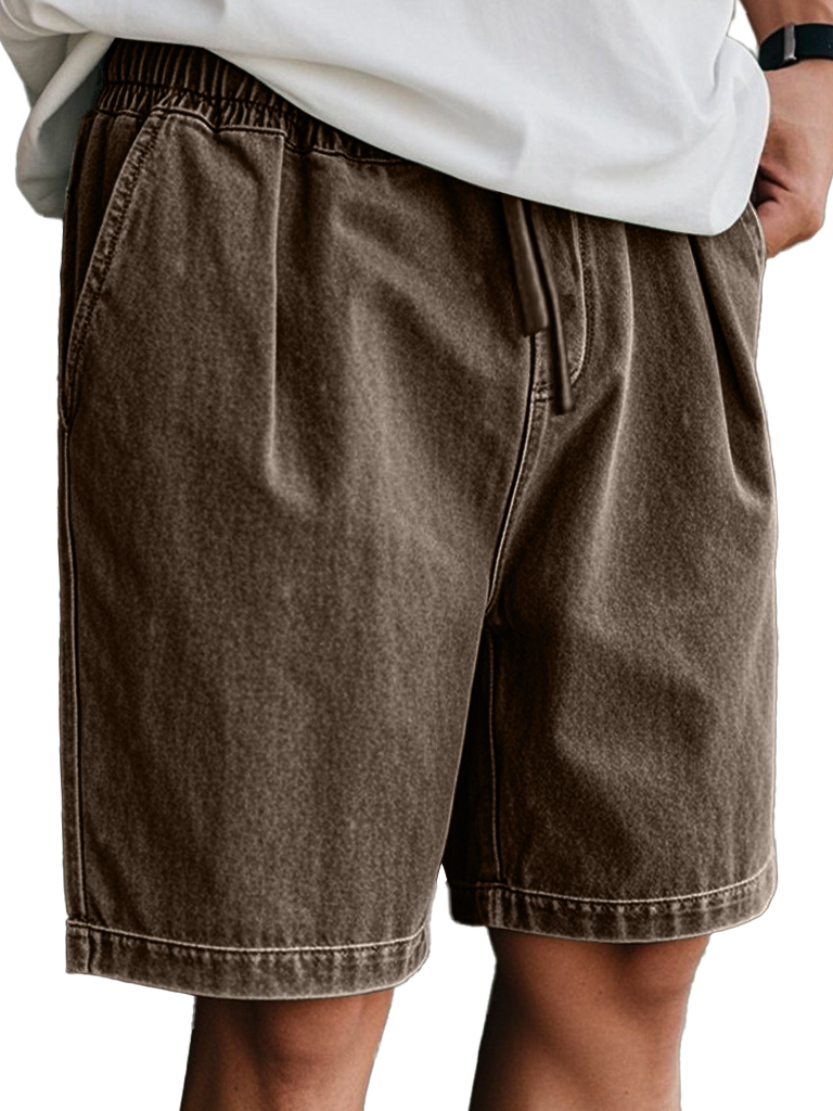 Men's Retro Casual Elastic Waist Solid Color Comfort Shorts
