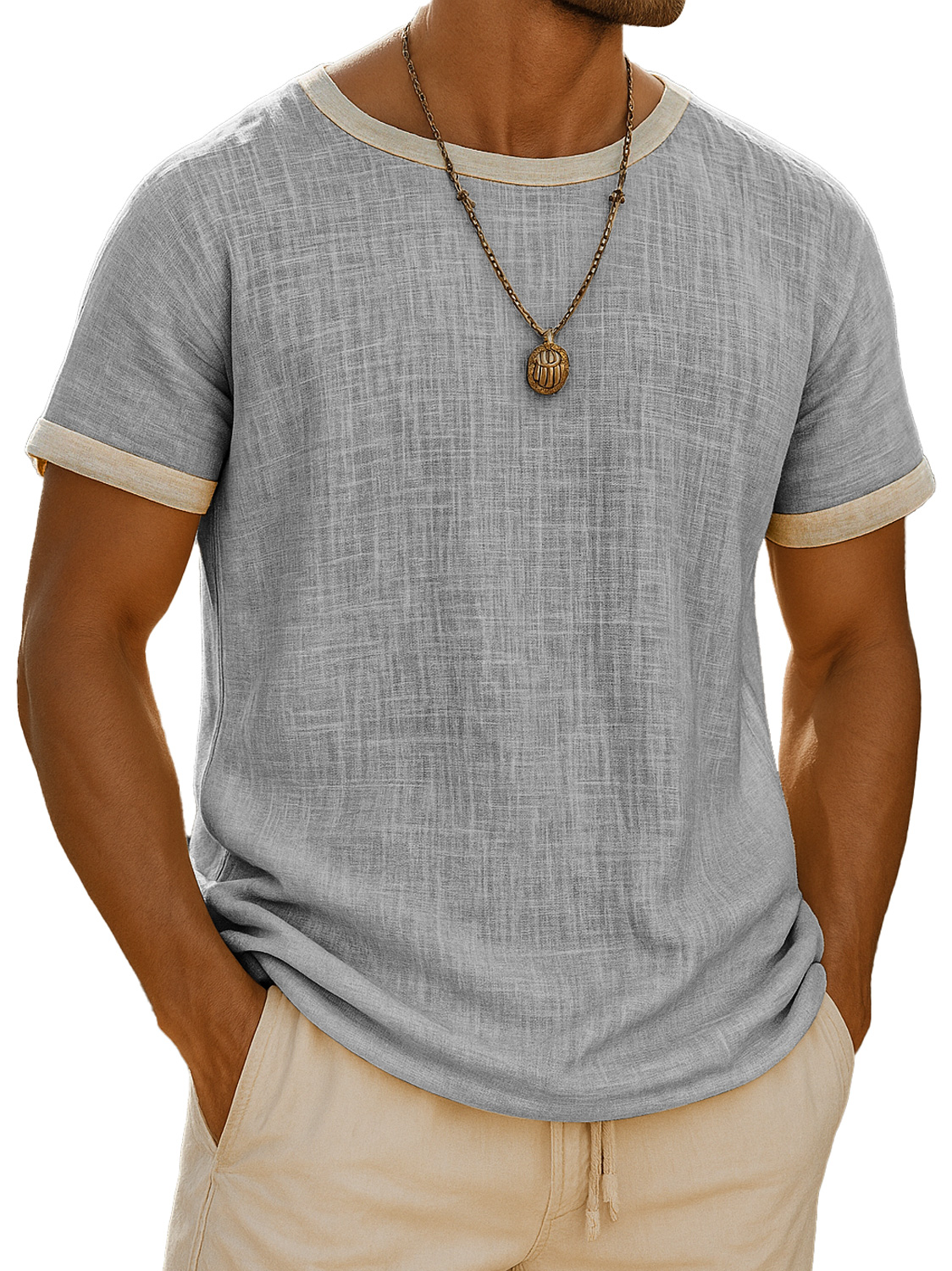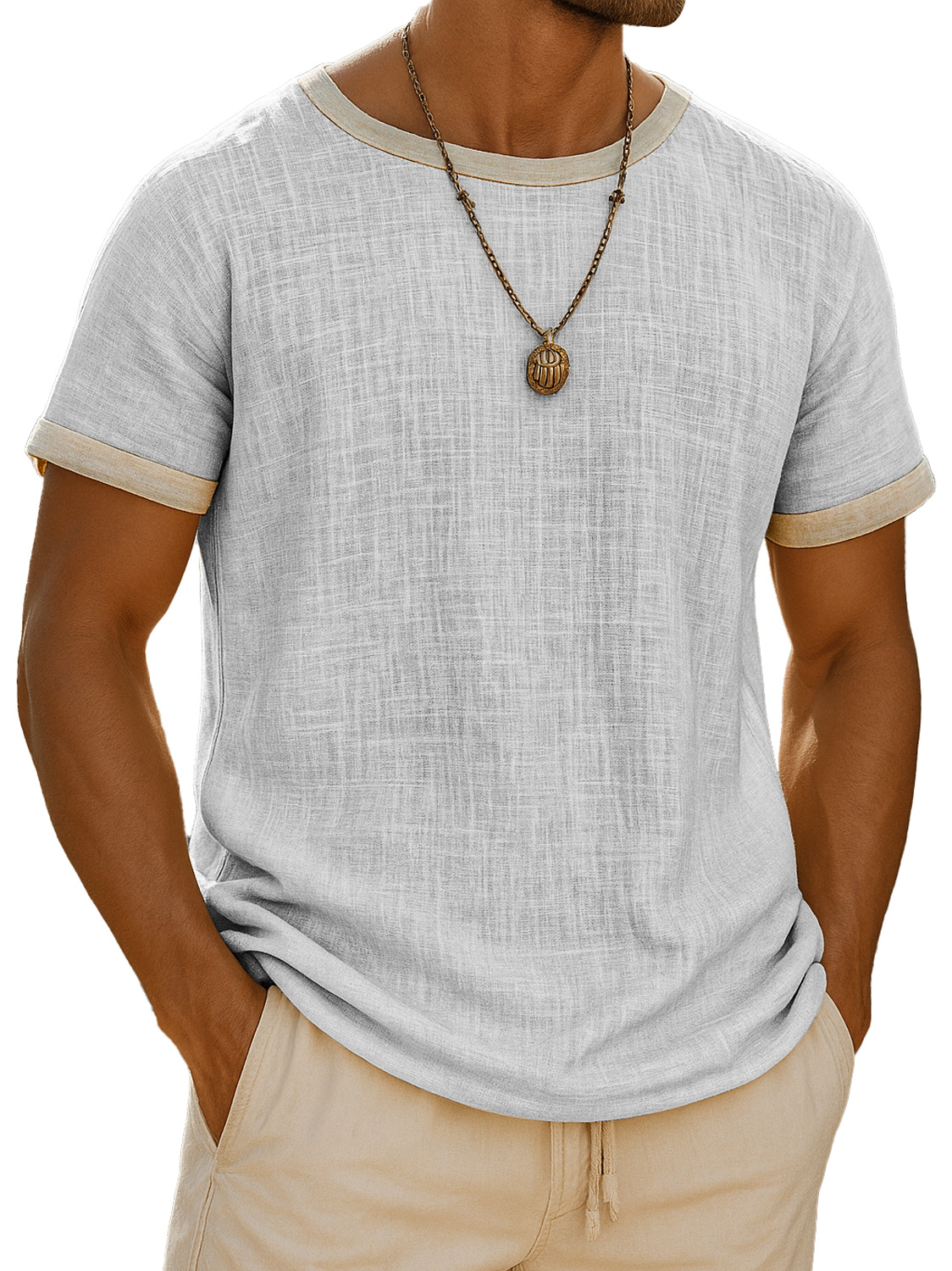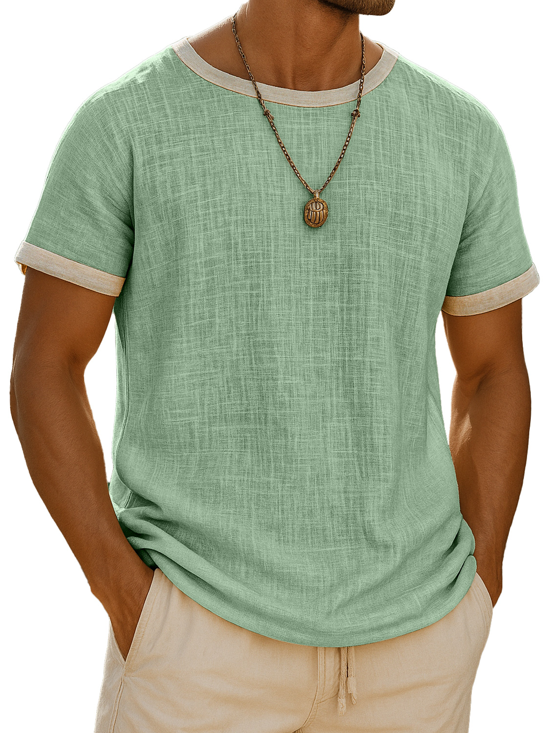 Men's Retro Daily Round Neck Colorblock Casual Short Sleeve T-shirt