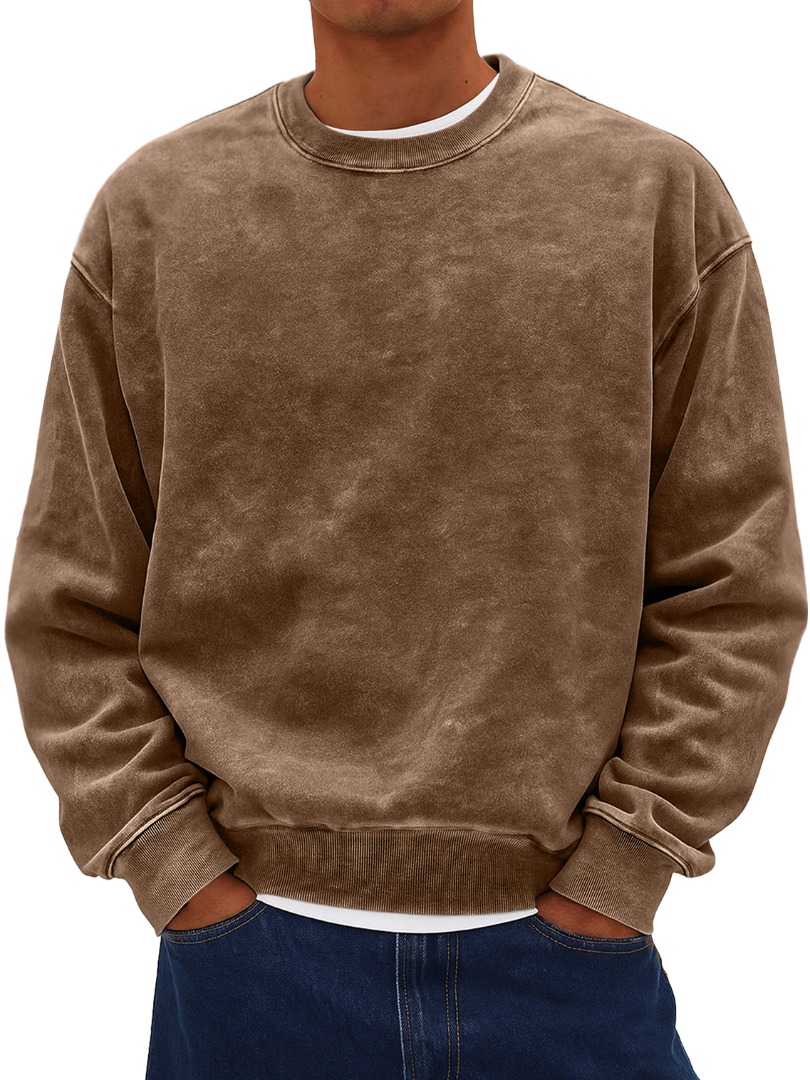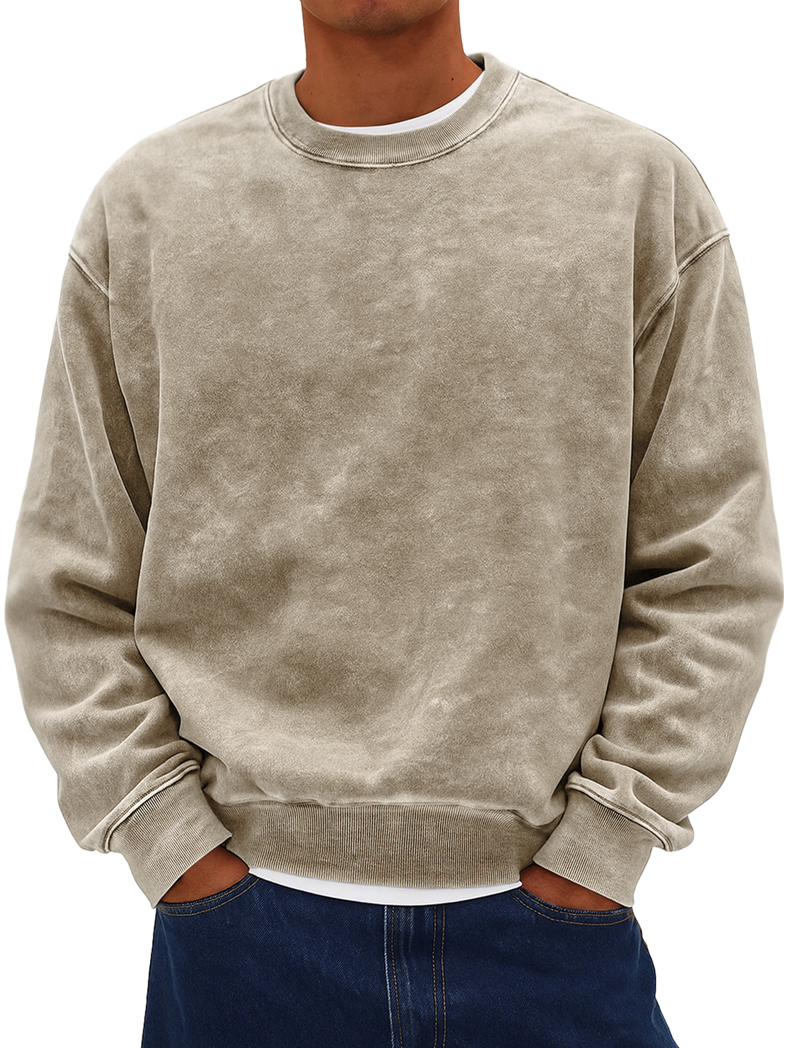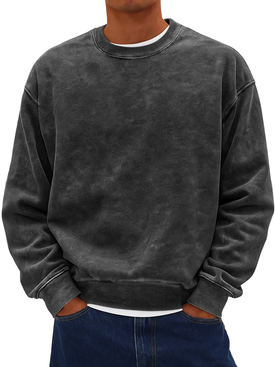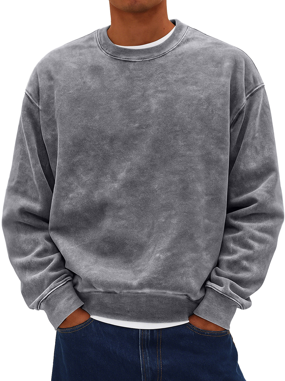Men's Retro Daily Round Neck Cotton Washed Distressed Sweatshirt