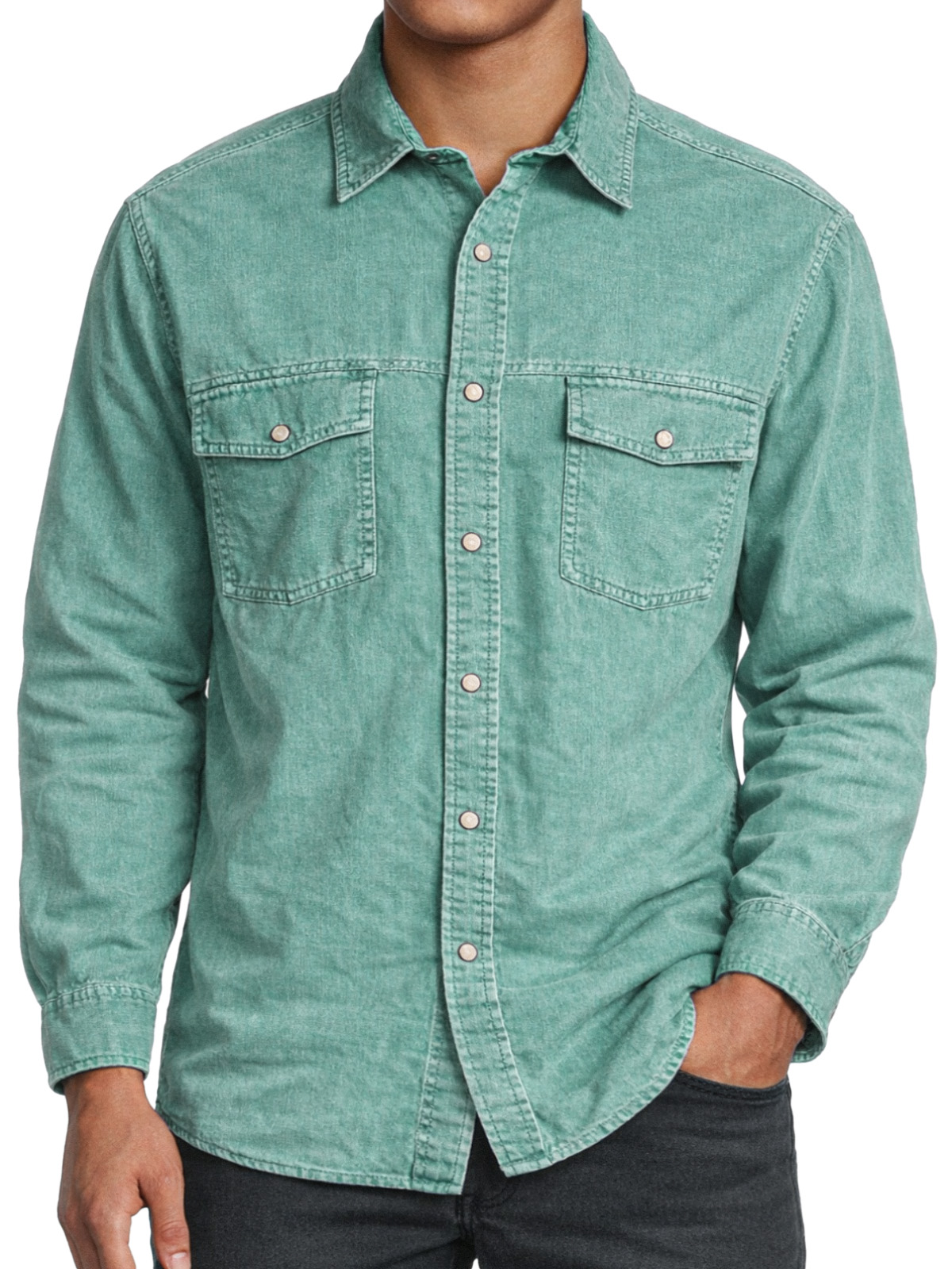 Men's Retro Double-pocket Collared Long-sleeved Shirt
