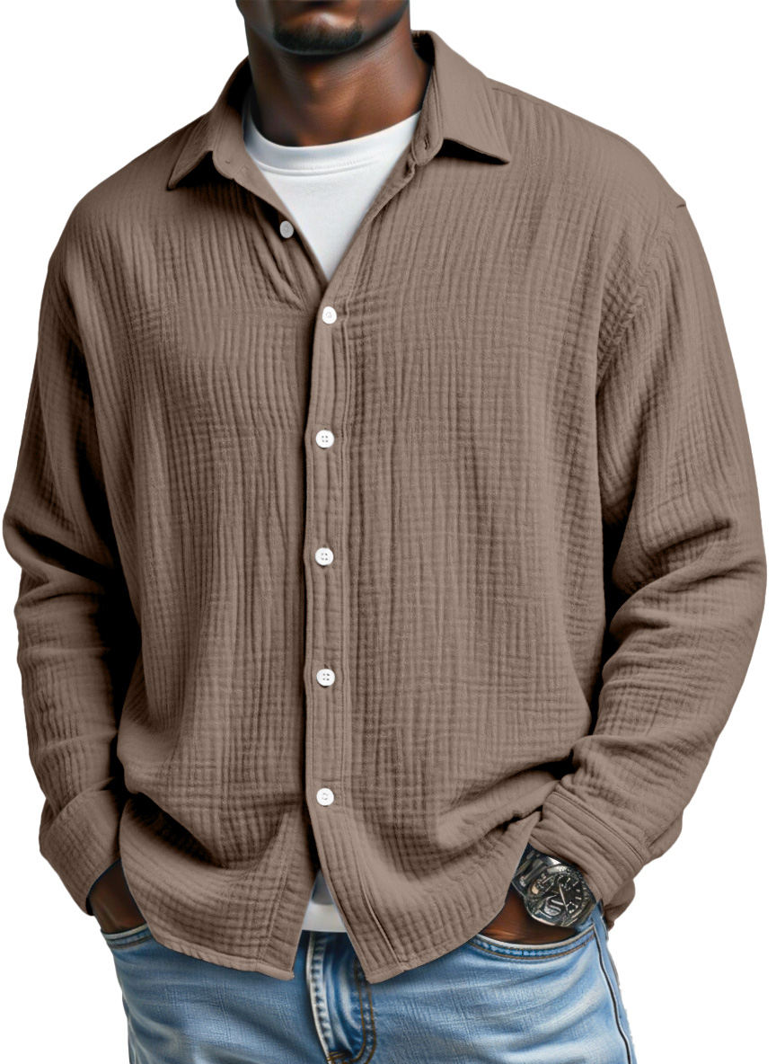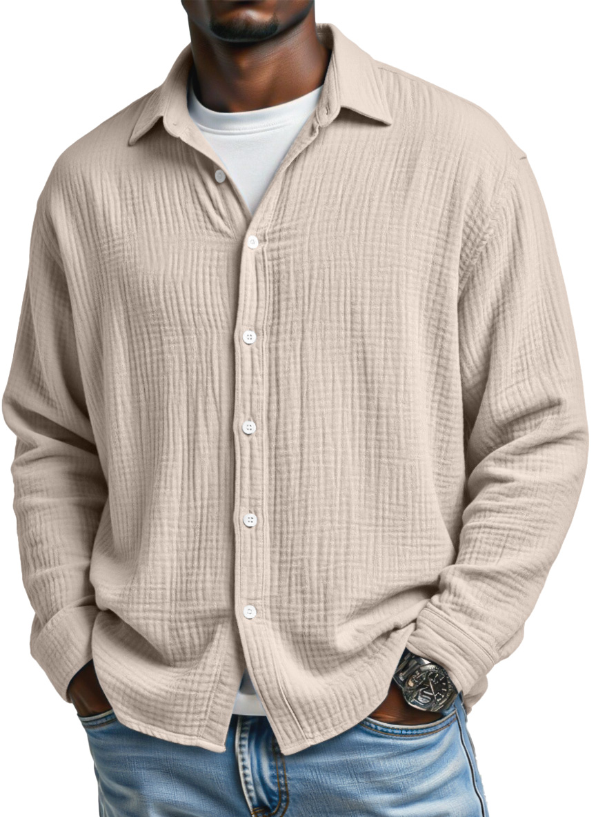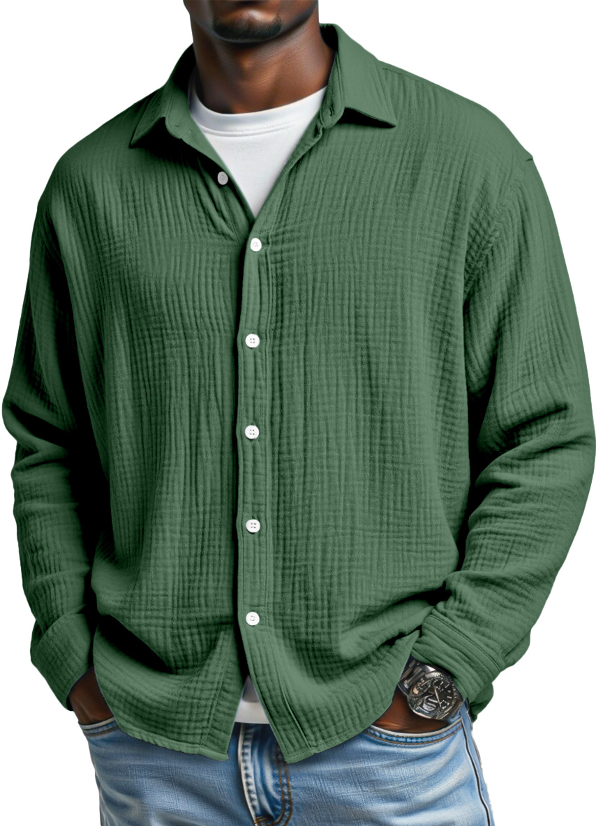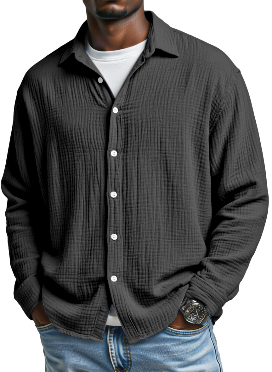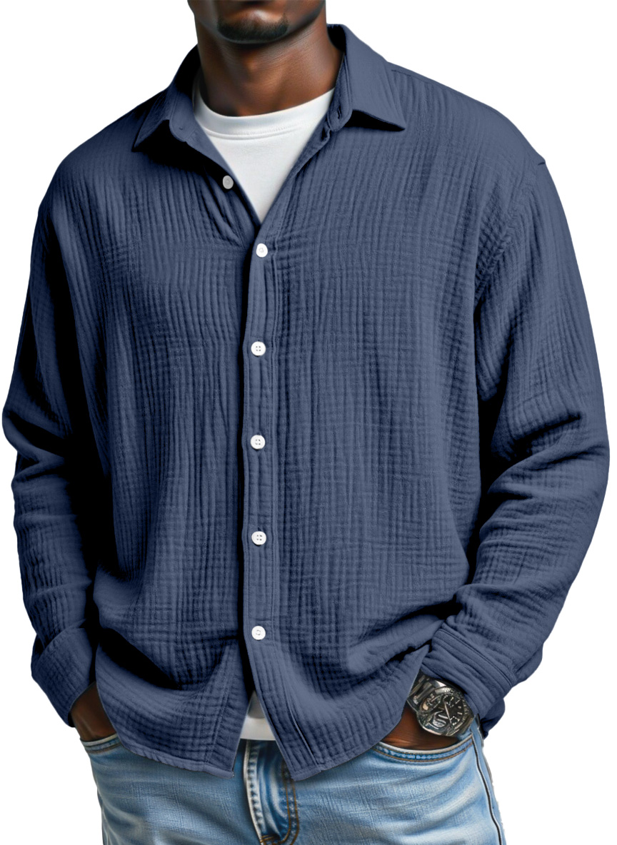Men's Simple Breathable Pleated Cotton Long Sleeve Button Down Shirt