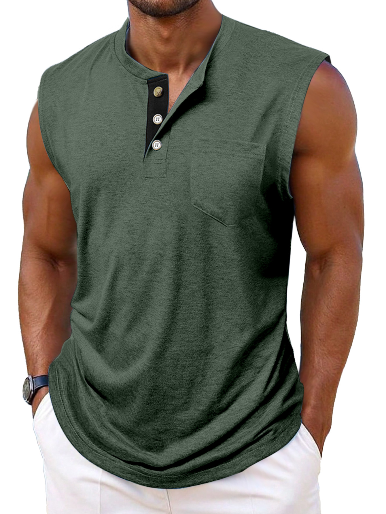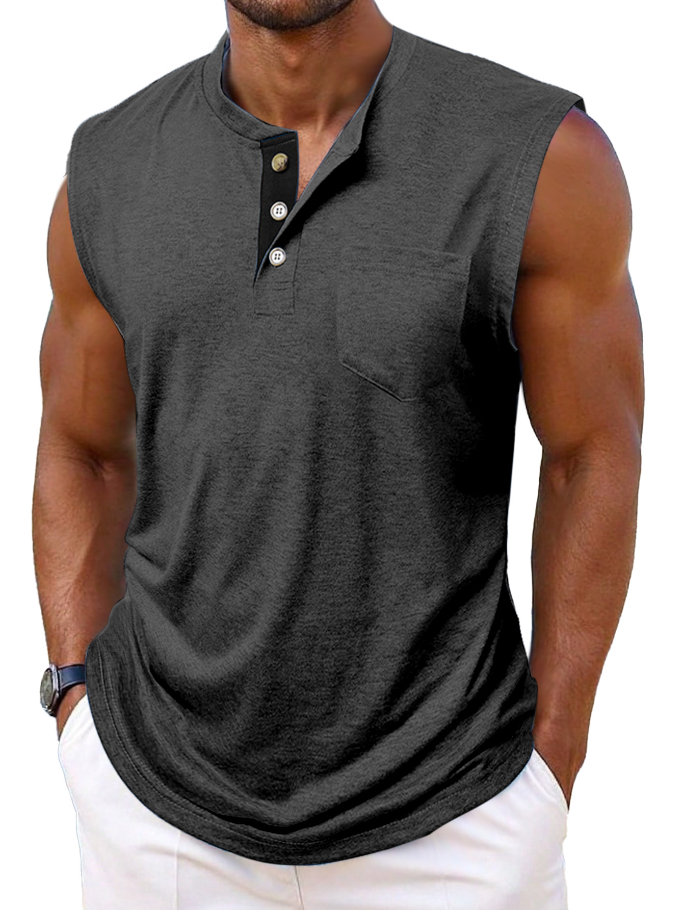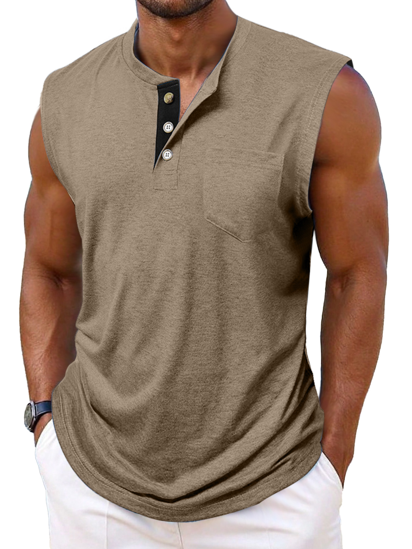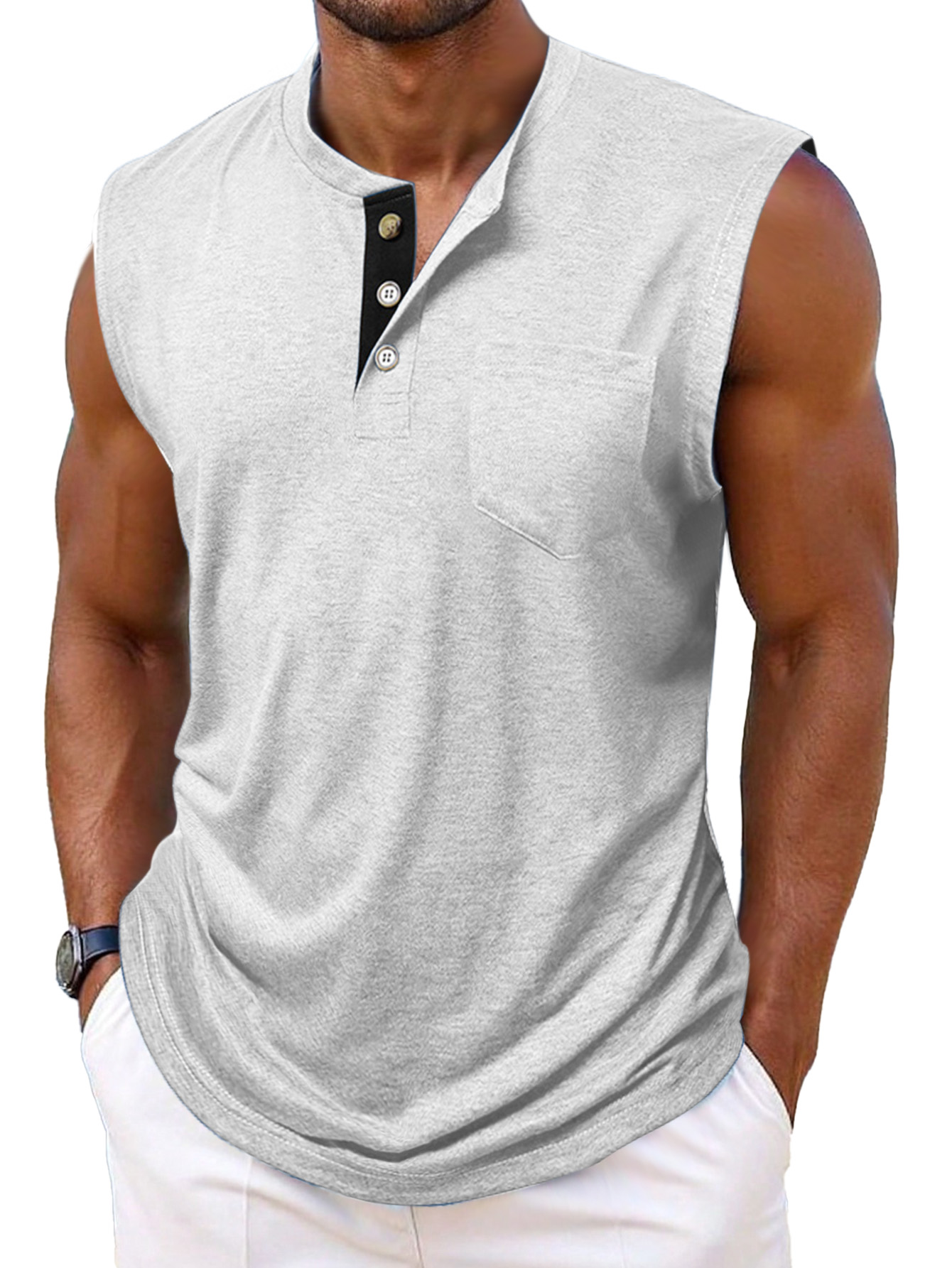 Men's Simple Casual Contrast Color Sleeveless Henley Shirt