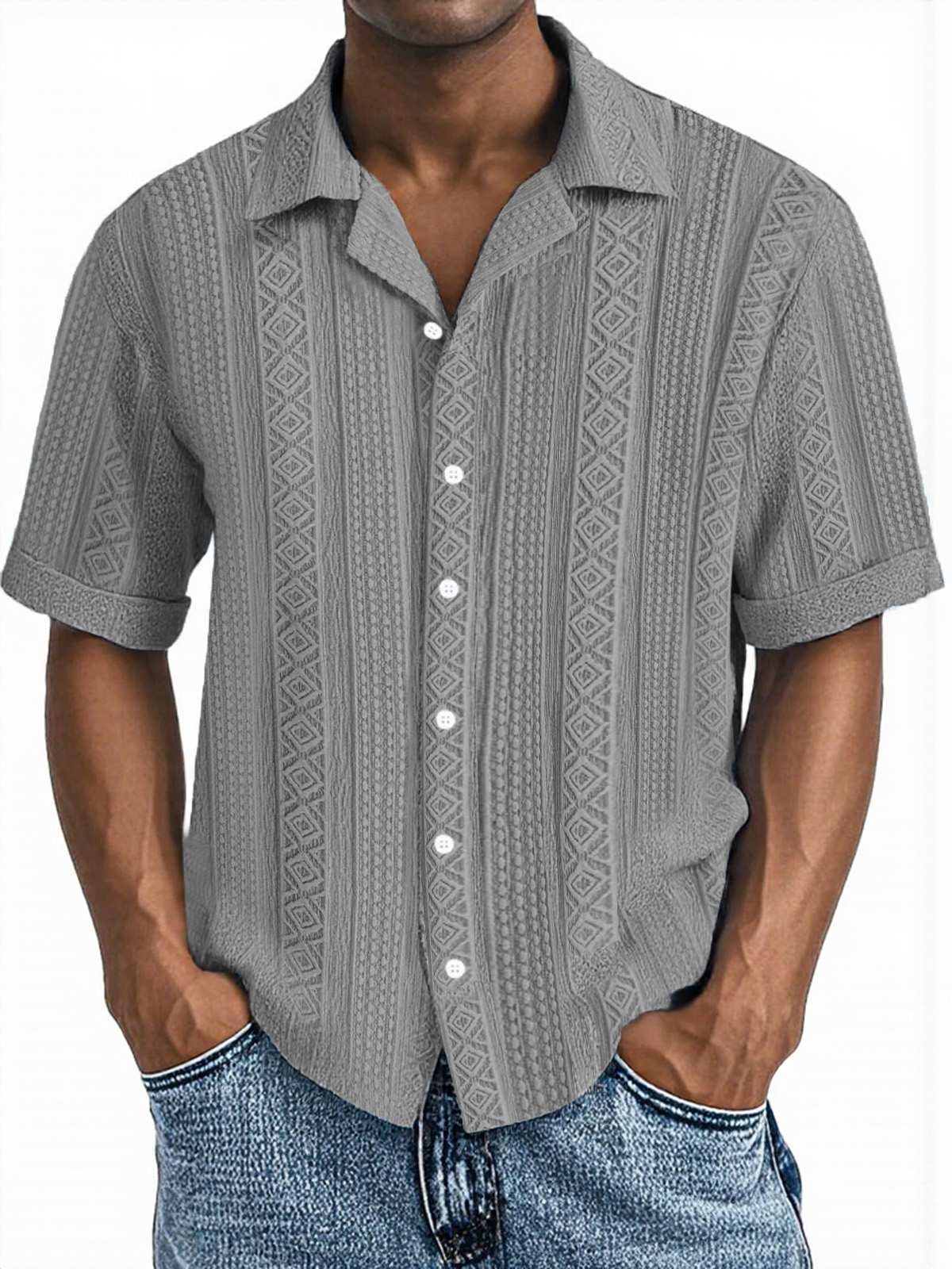 Men's Simple Everyday Casual Texture Button Short-sleeved Shirt