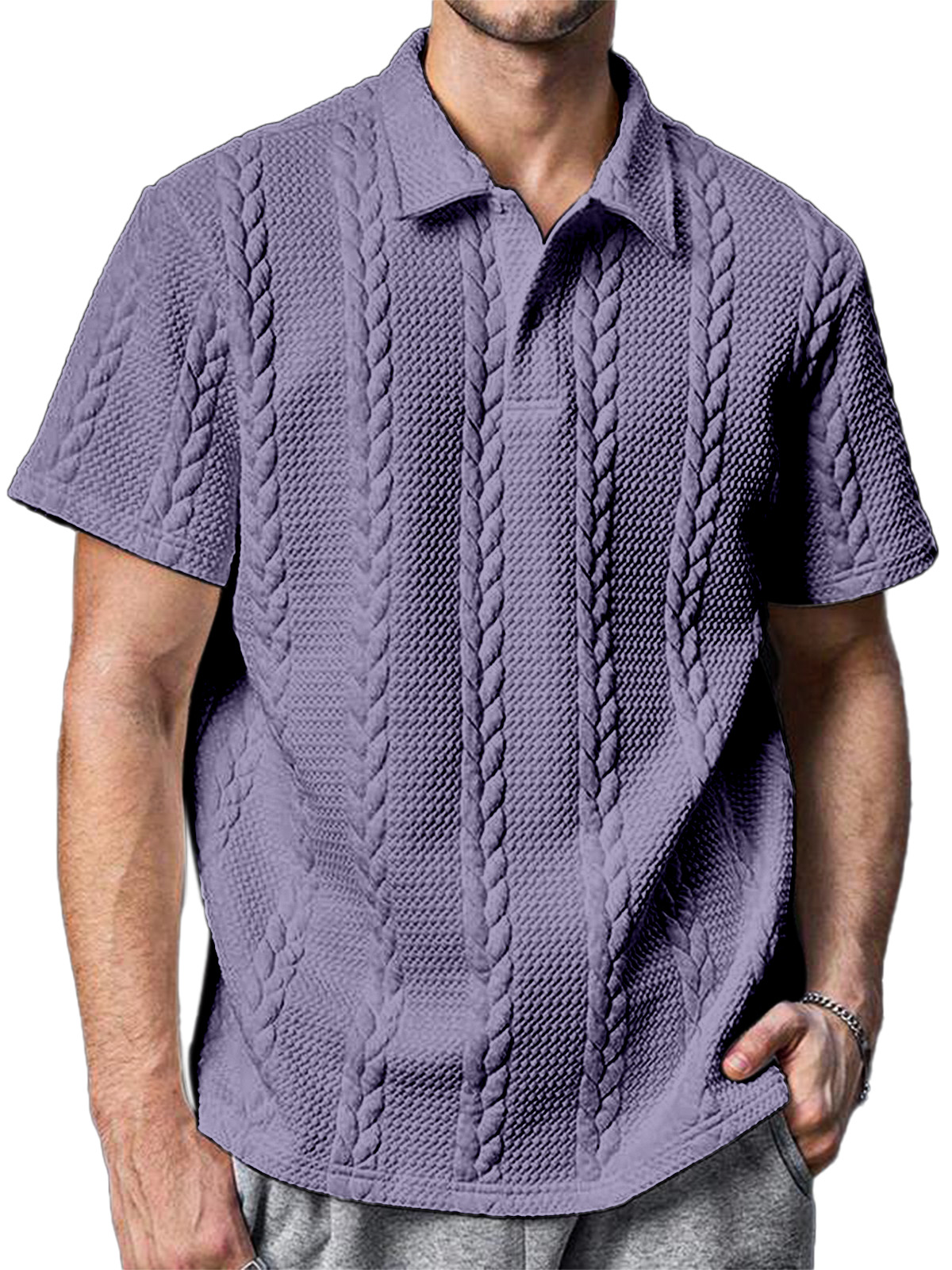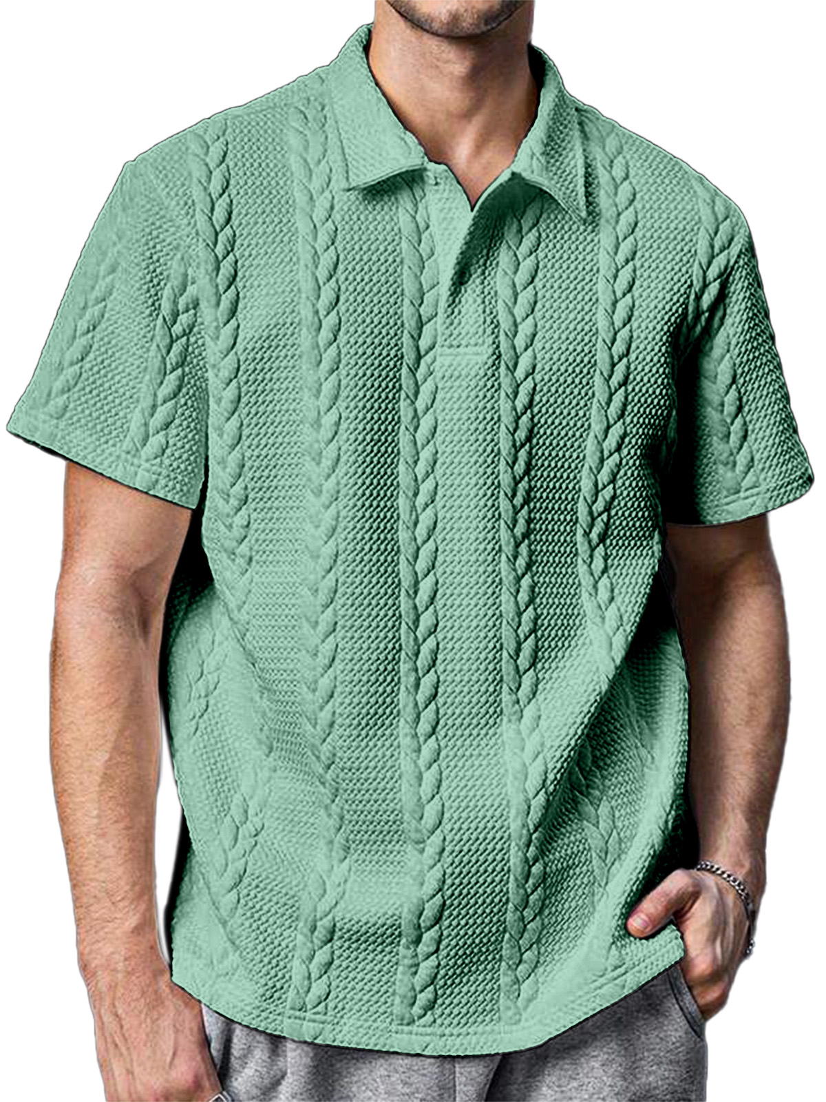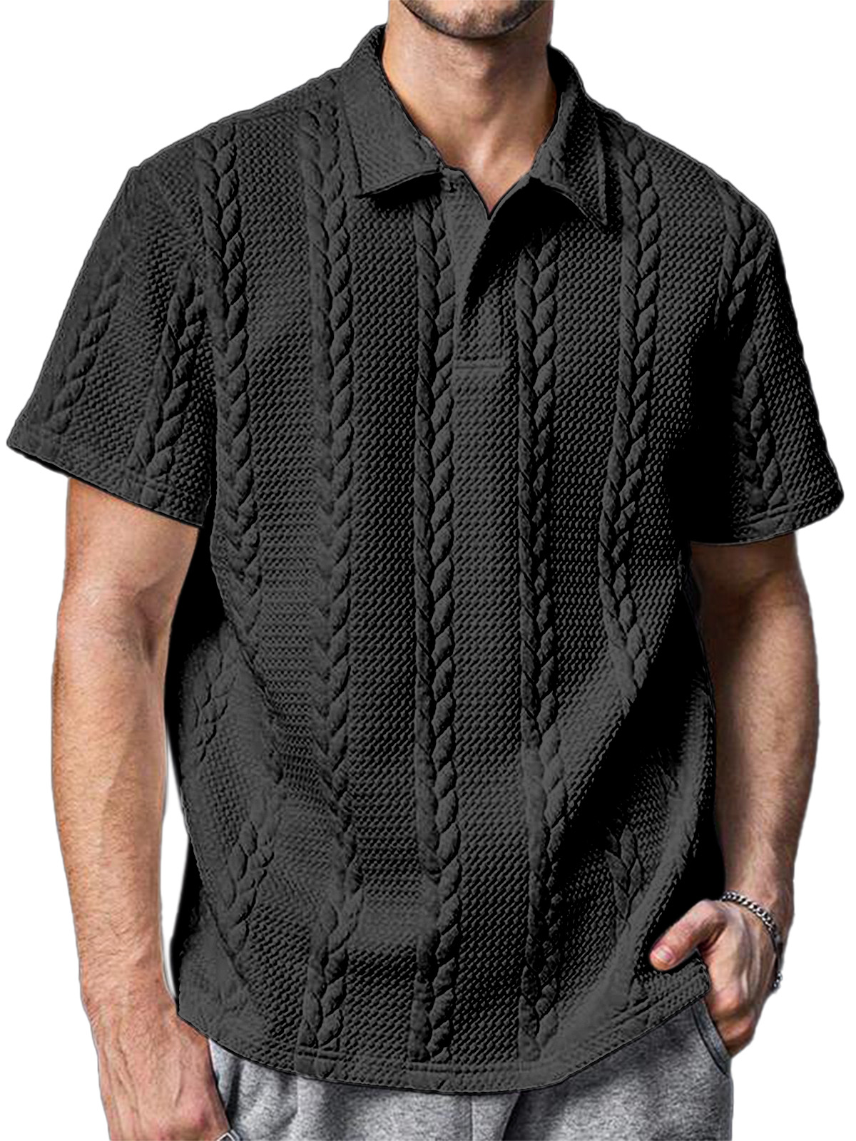 Men's Simple Solid Color Jacquard Texture Short-sleeved Lapel Polo Shirt