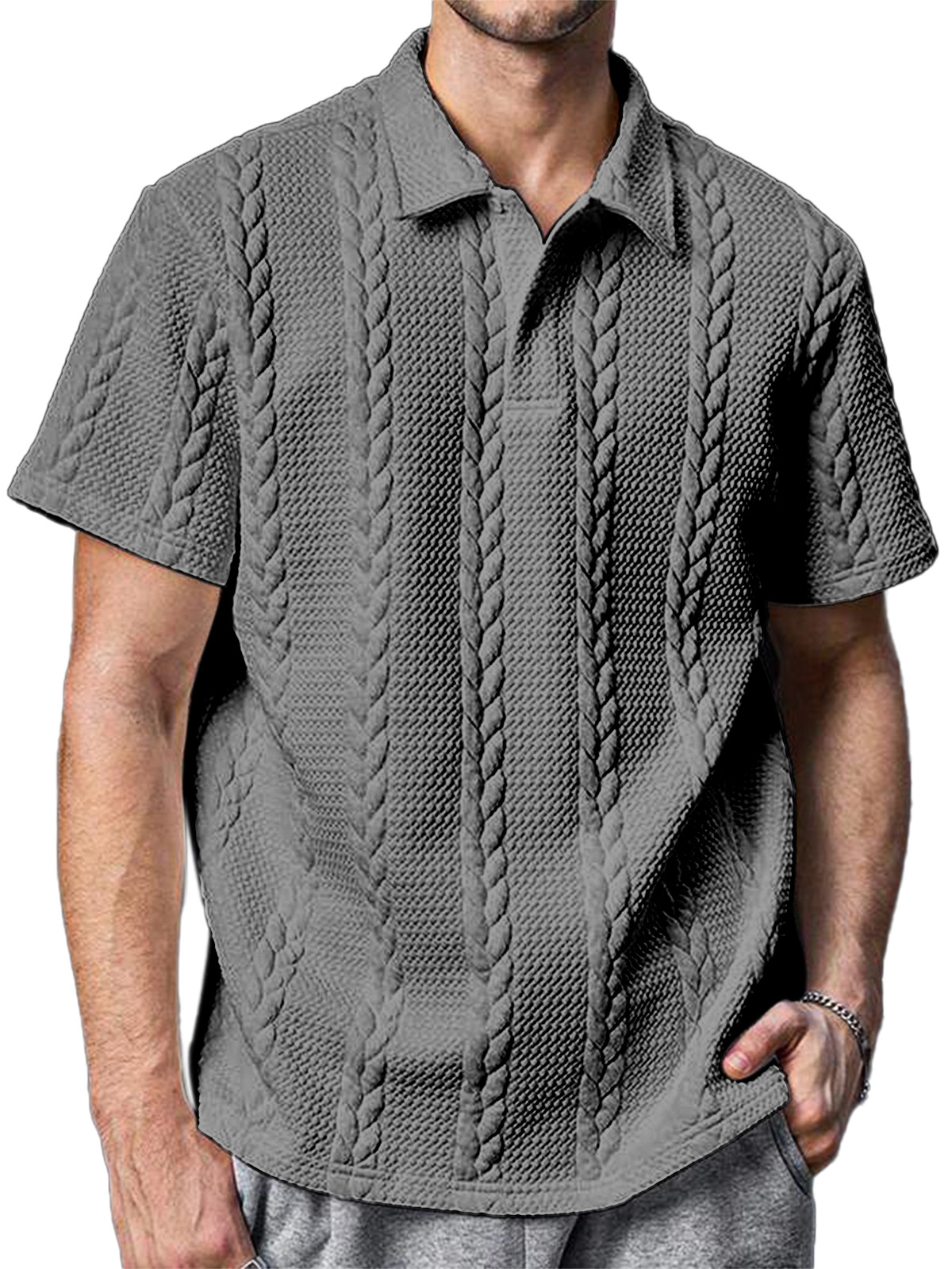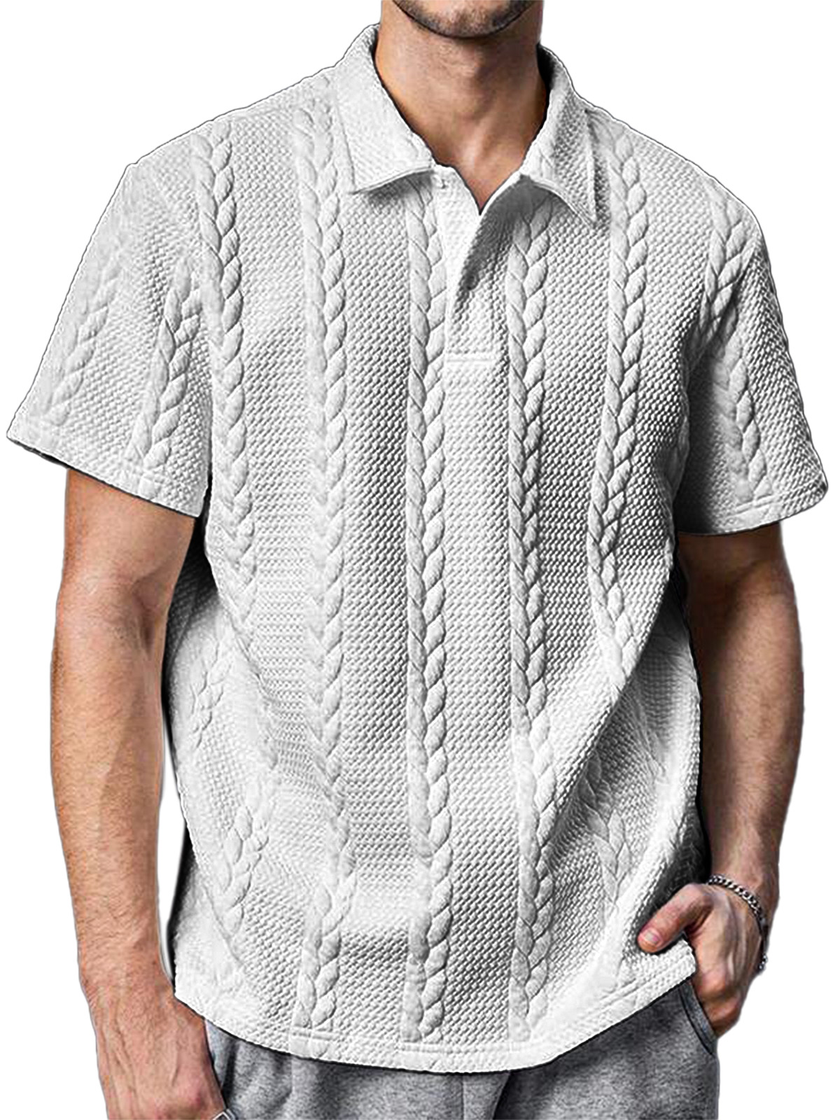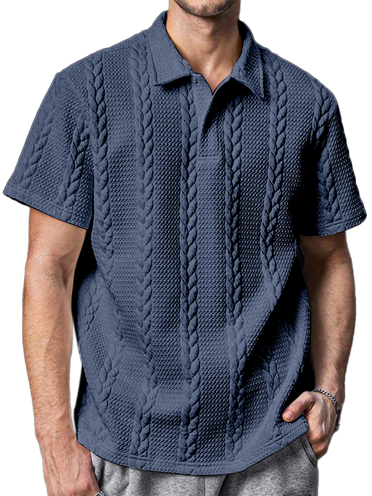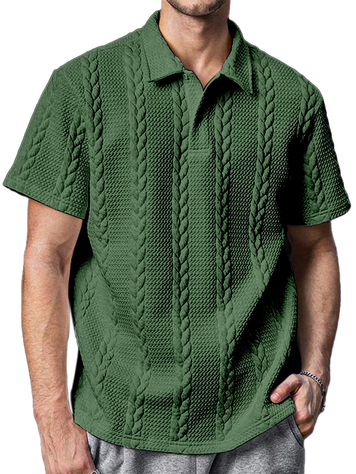 Men's Simple Solid Color Jacquard Texture Short-sleeved Lapel Polo Shirt