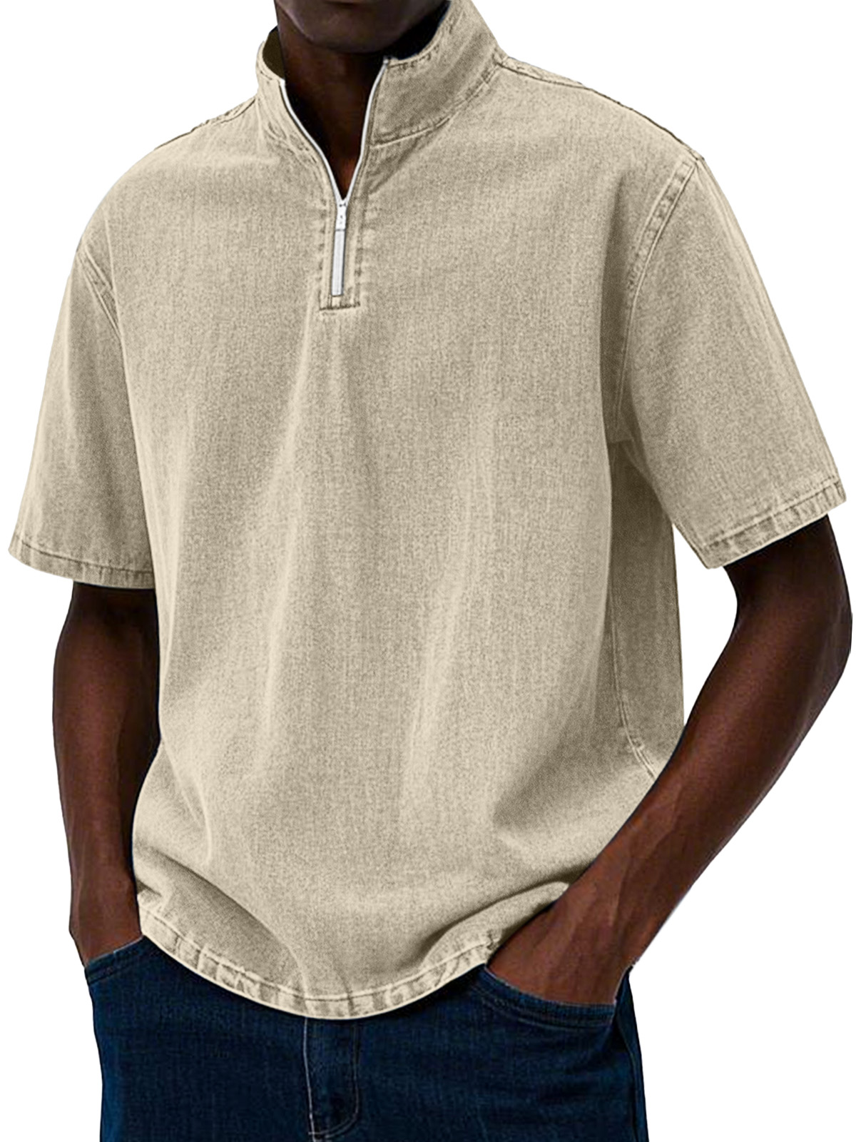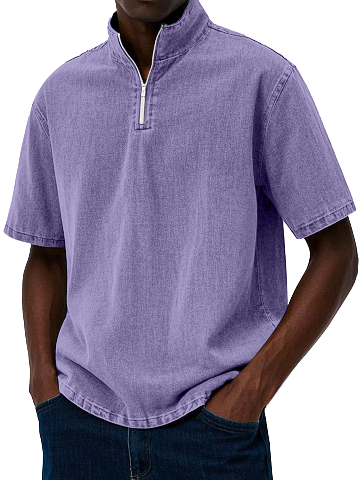 Men's Simple Solid Color Retro Stand Collar Zipper Short-sleeved Polo Shirt