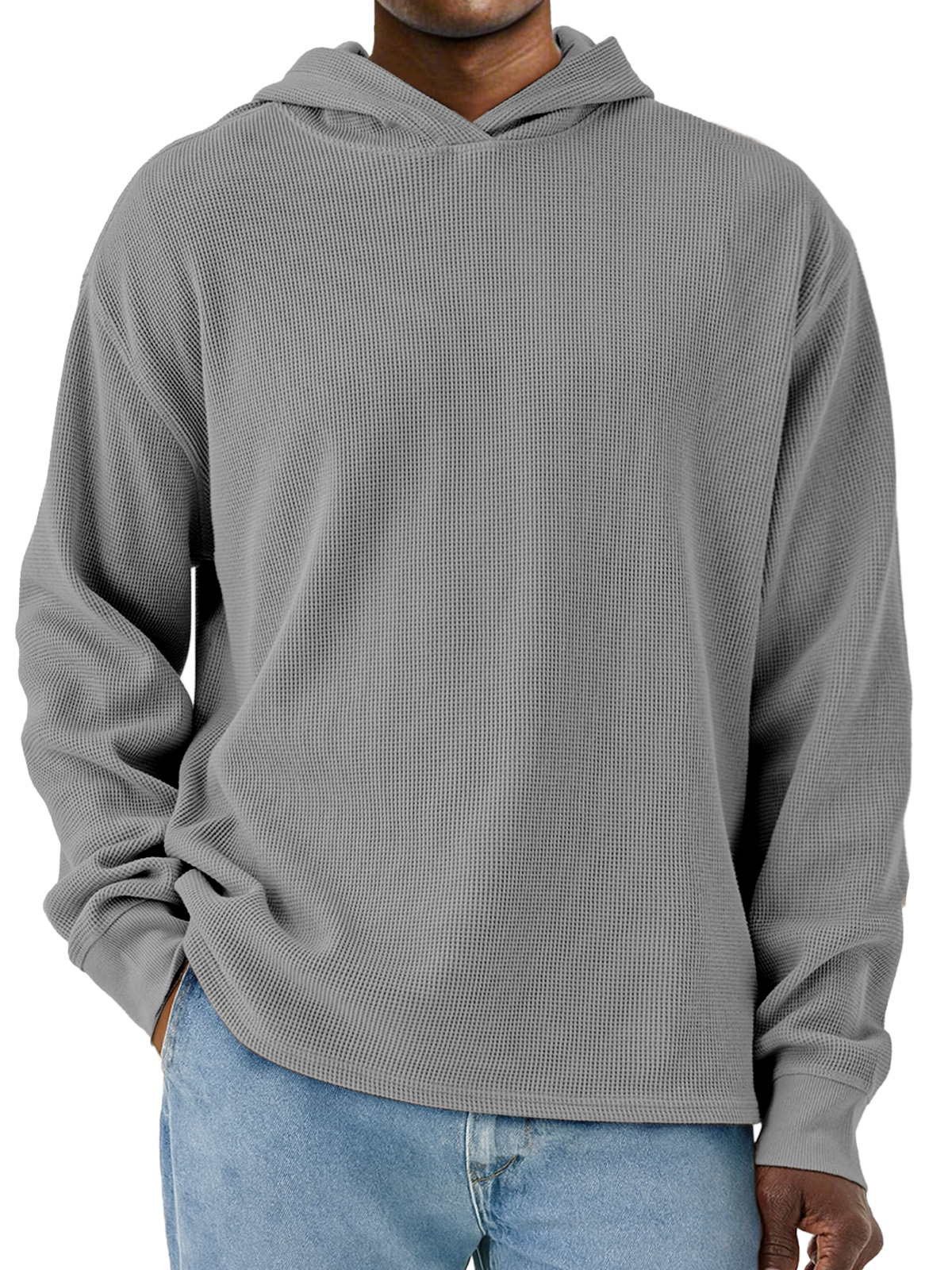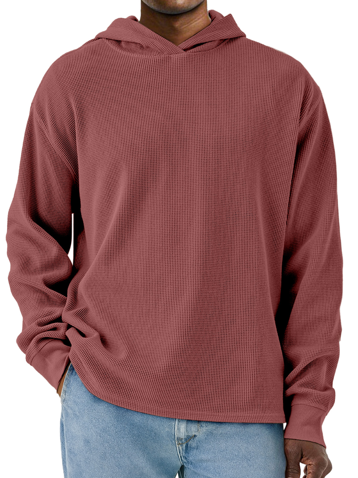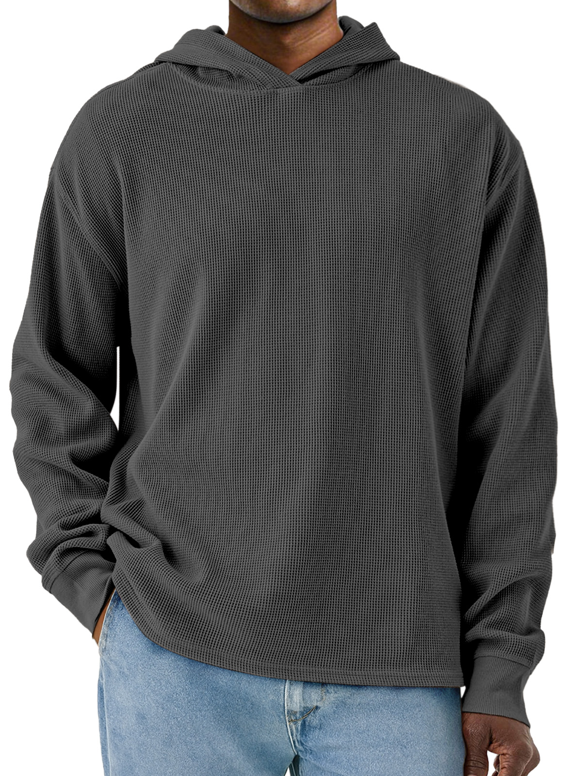Men's Simple Solid Color Waffle Long Sleeve Hooded Sweatshirt