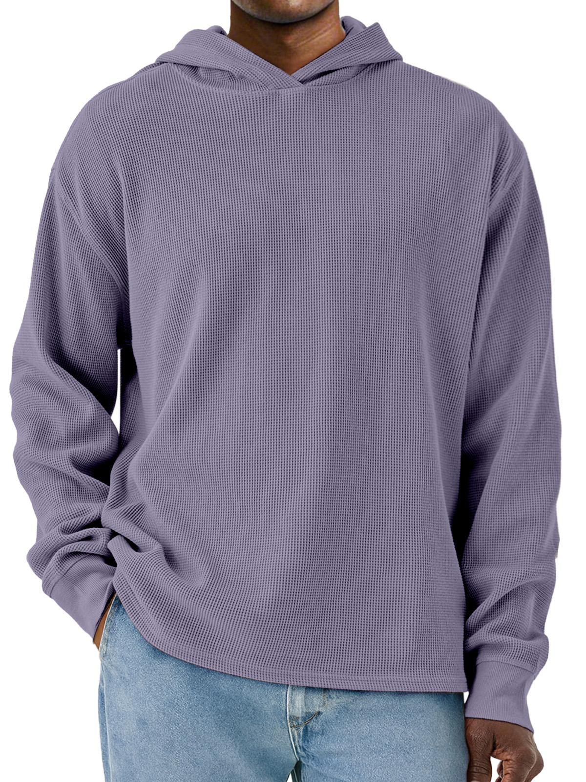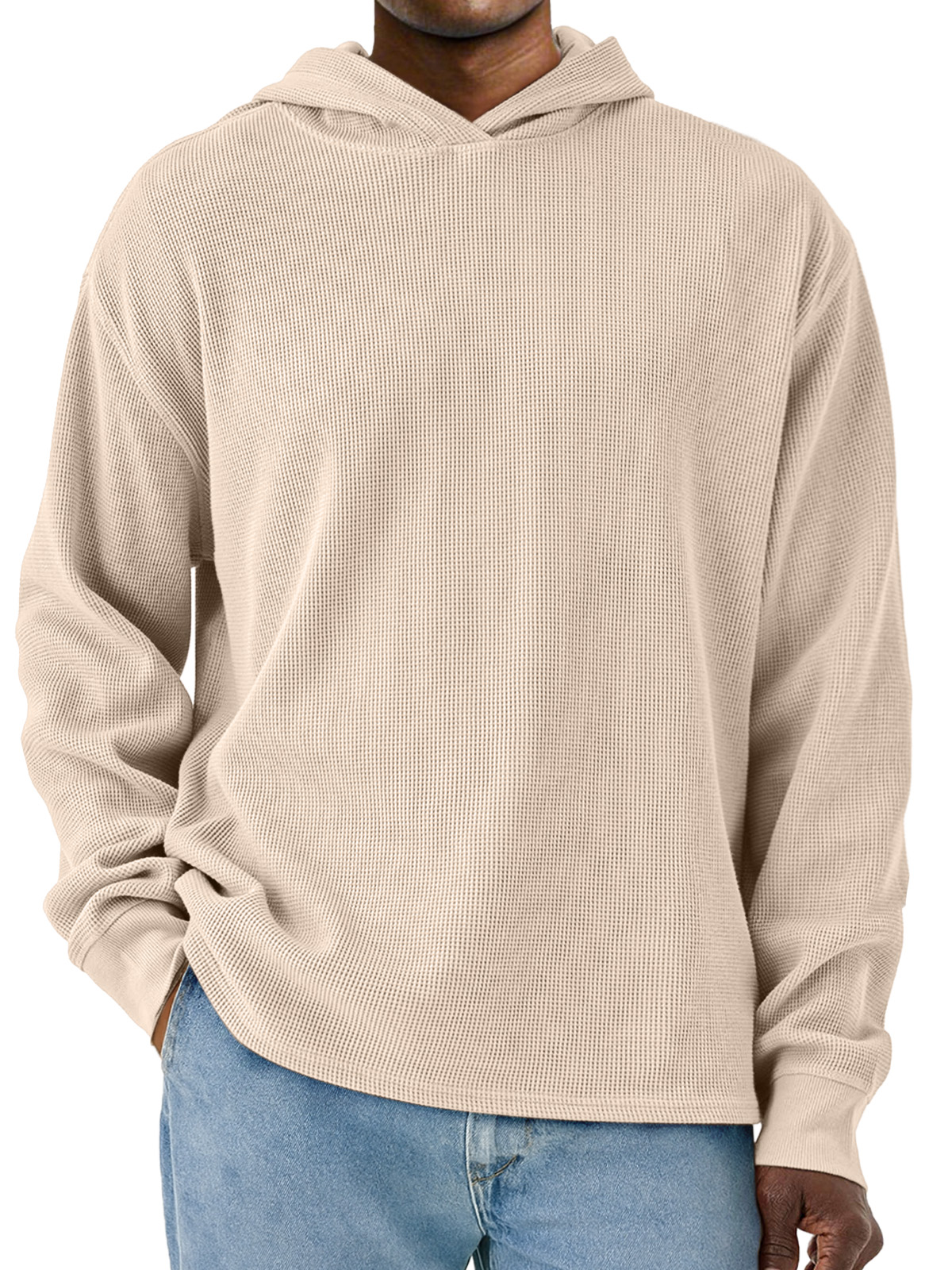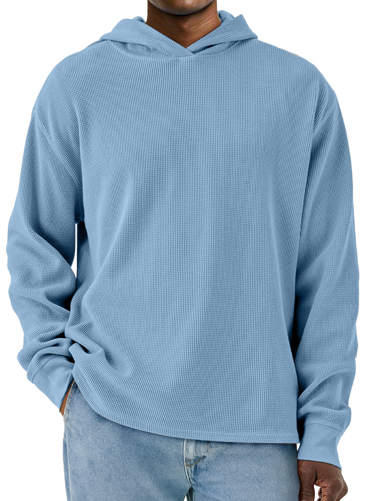 Men's Simple Solid Color Waffle Long Sleeve Hooded Sweatshirt