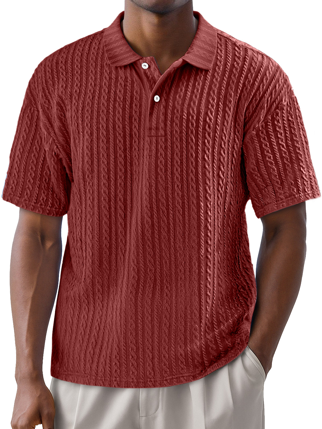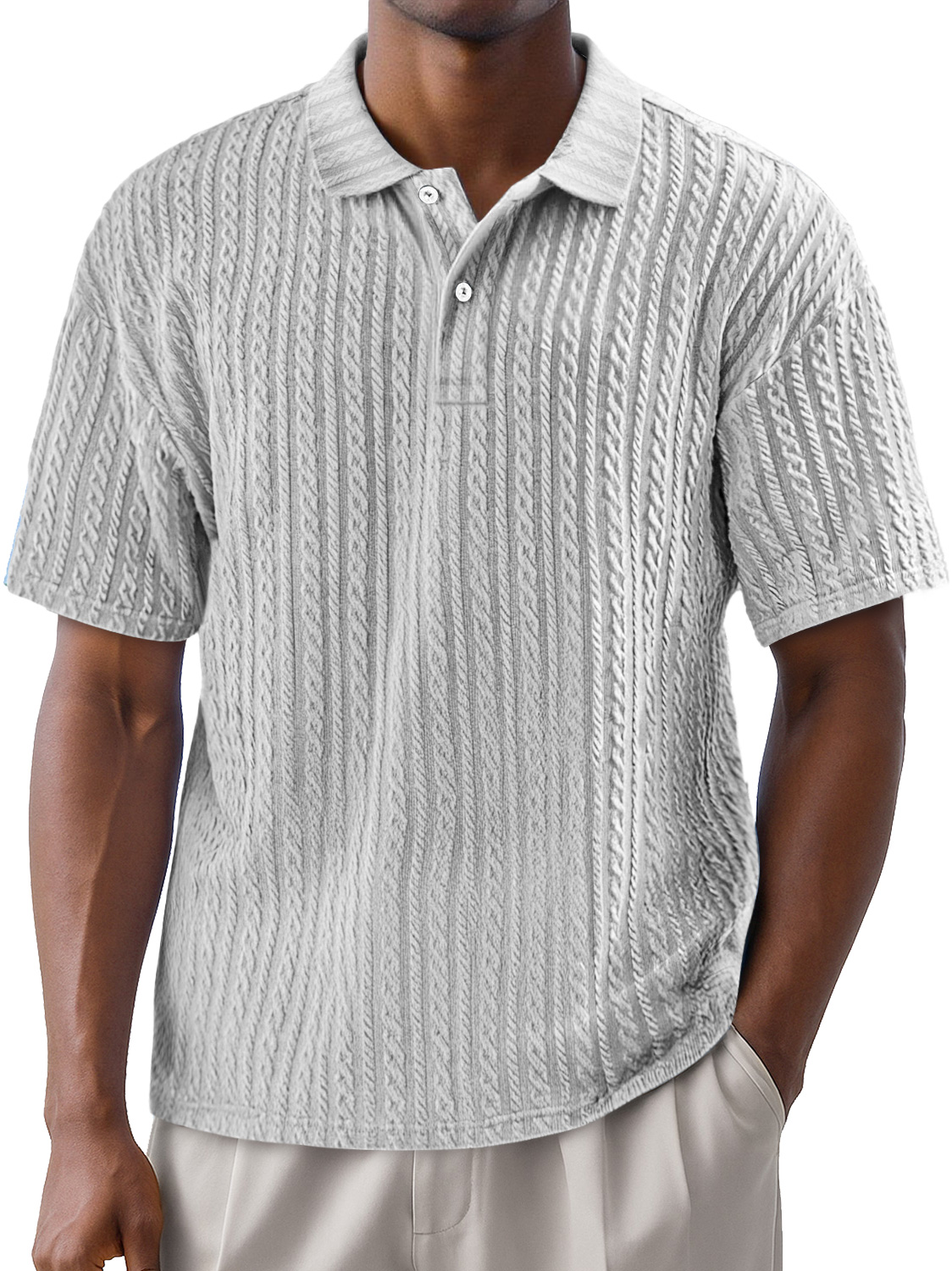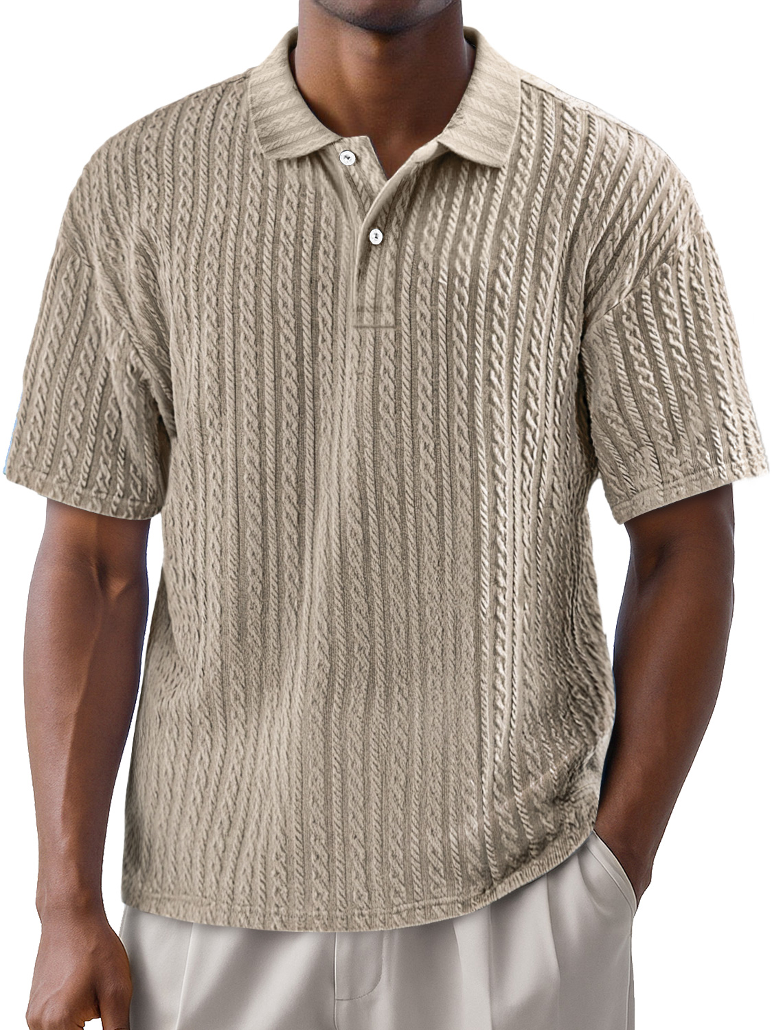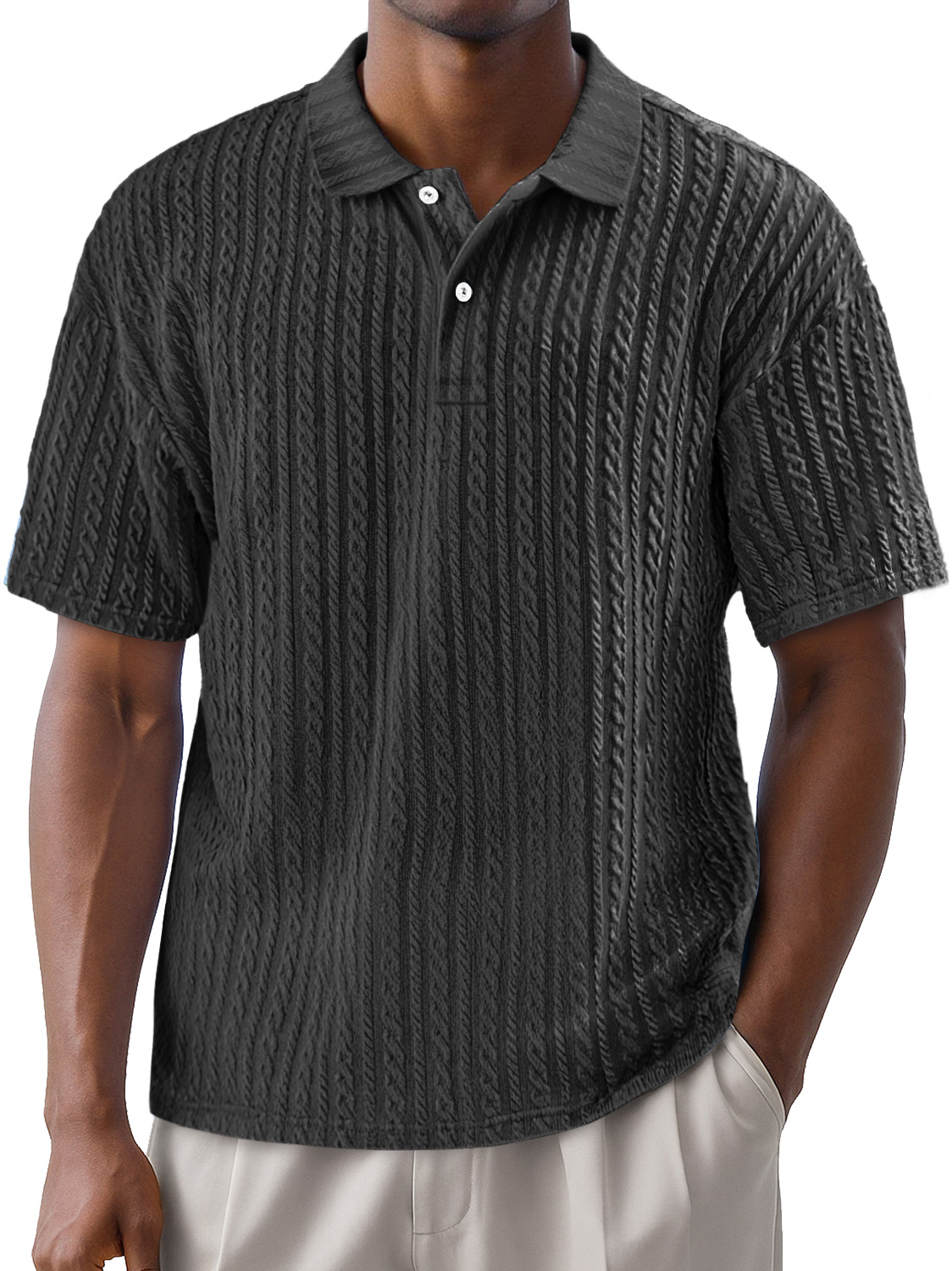 Men's Simple Texture Daily Lapel Button Casual Solid Color Short-sleeved Polo Shirt