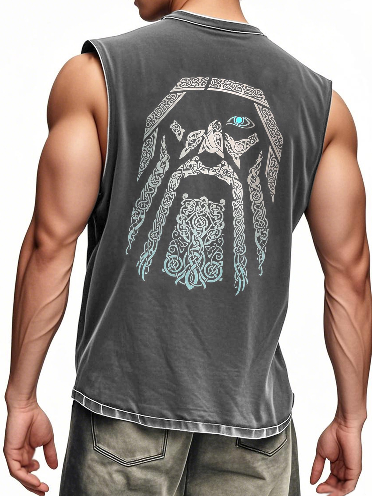 Men's Sleeveless Viking Symbol Print Tank Top Vest
