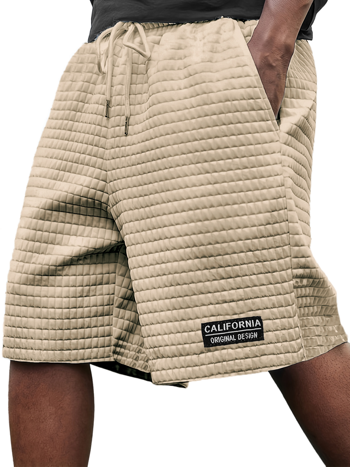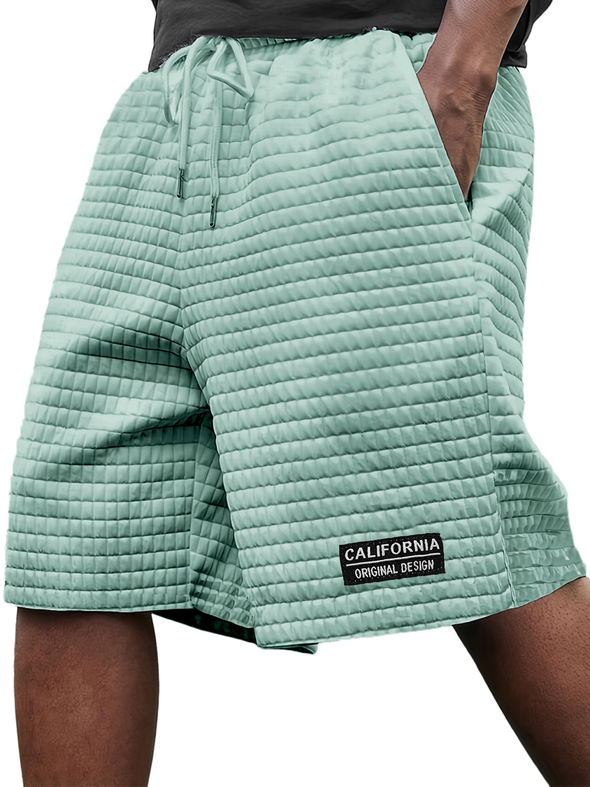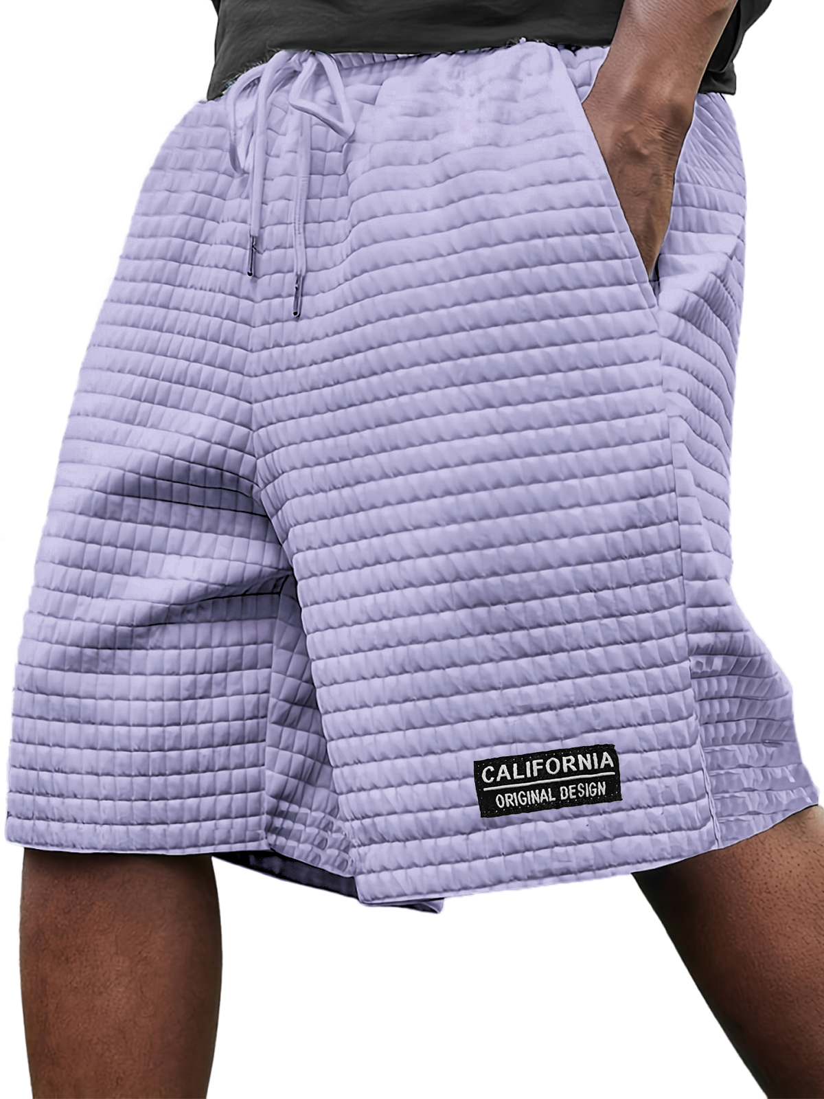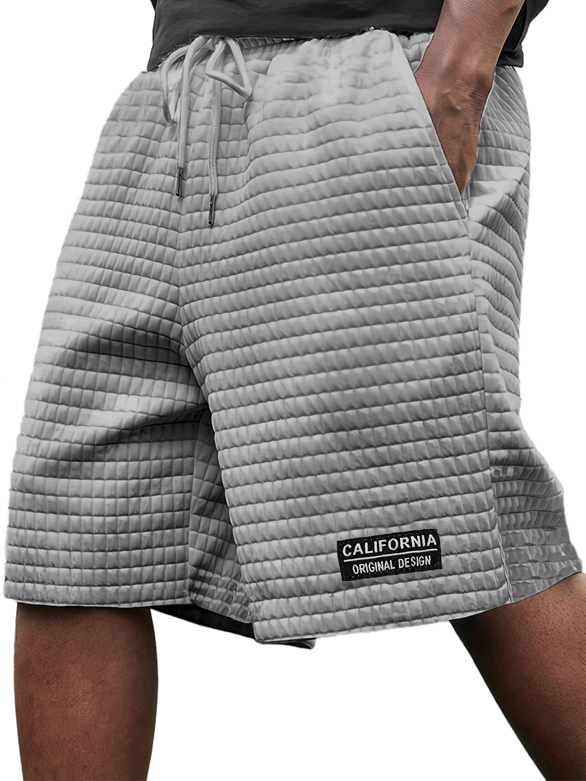 Men's Stylish Ice Silk Quilted Plaid Embroidered Label Breathable Casual Loose Shorts