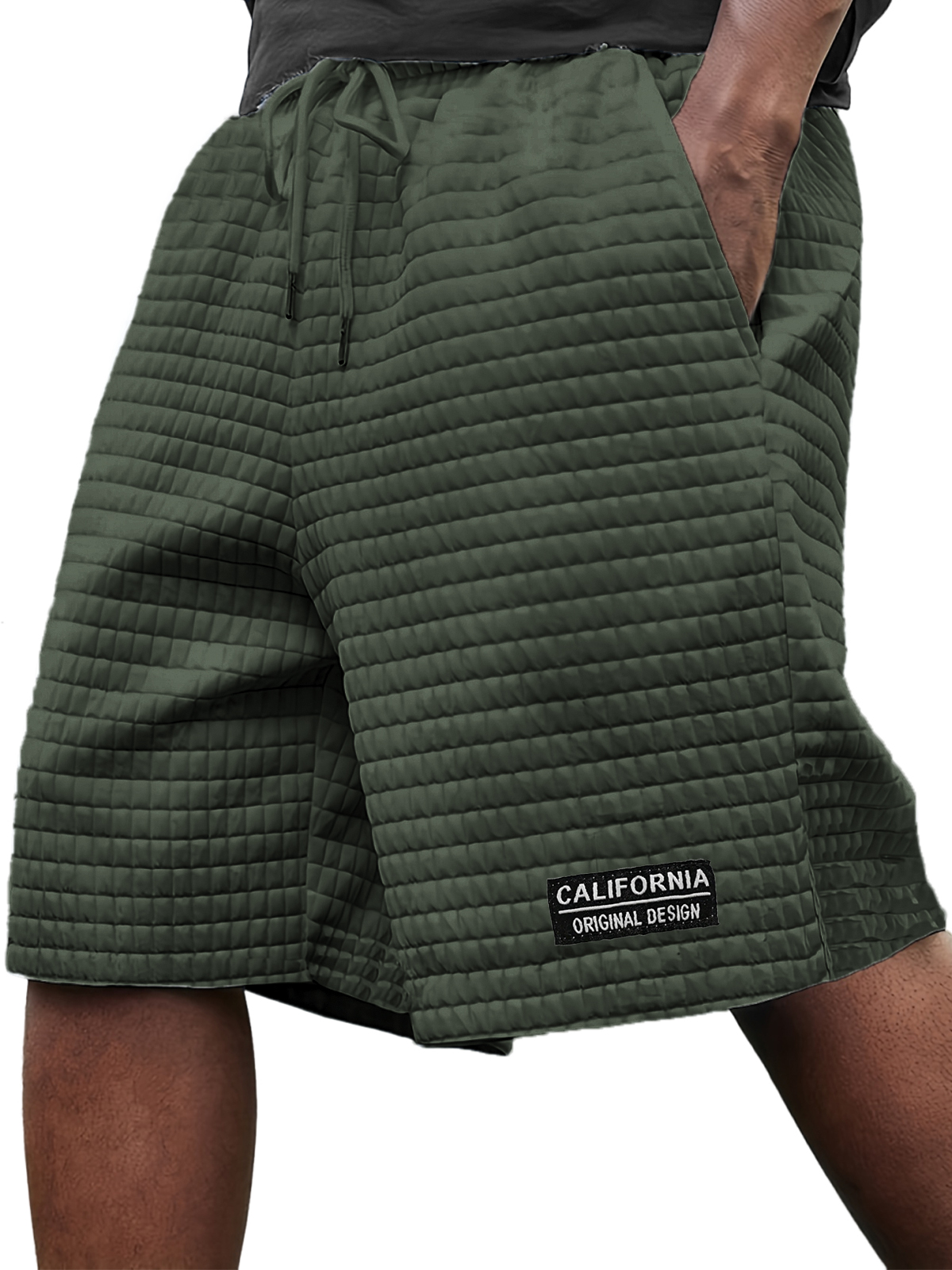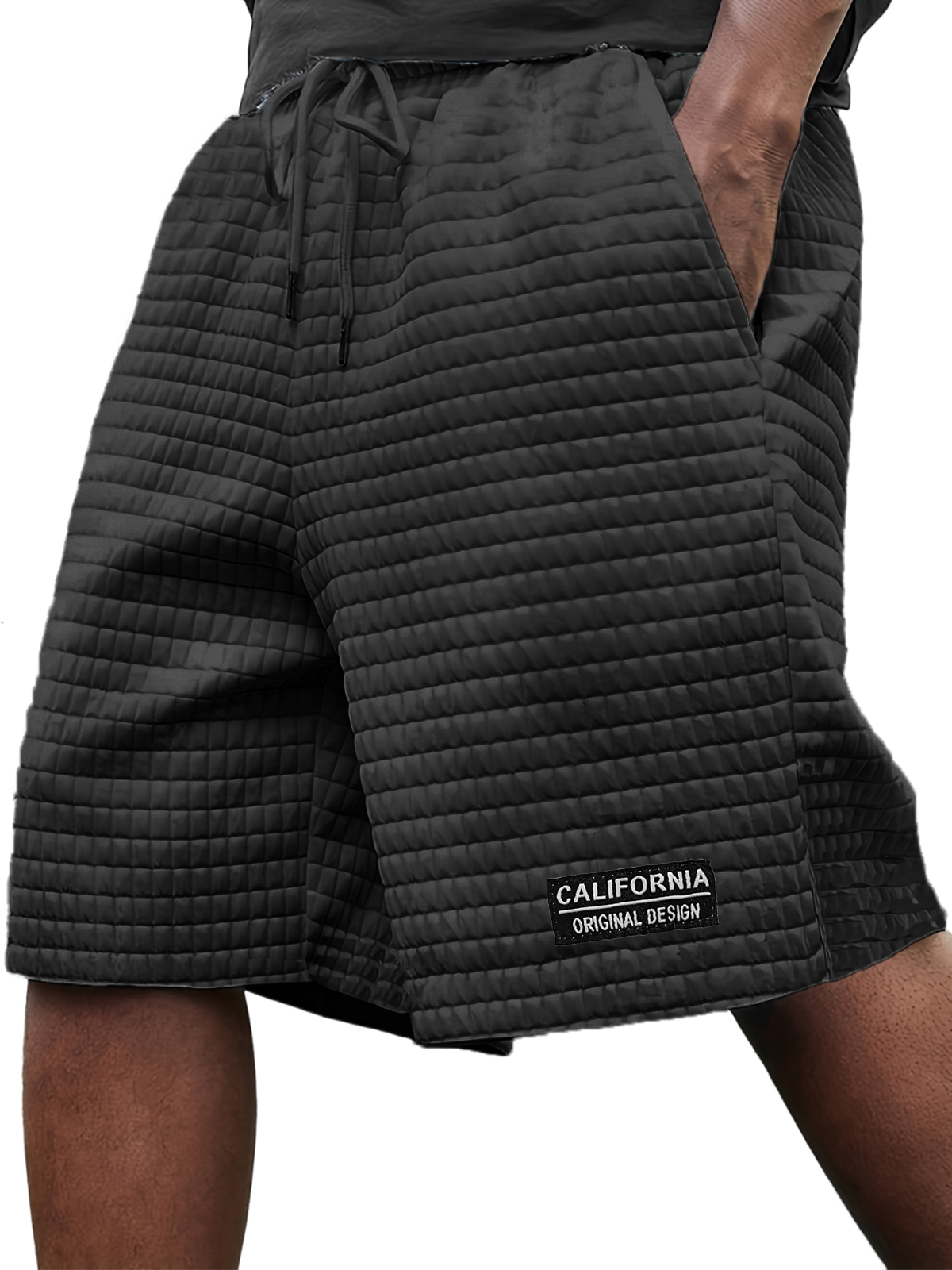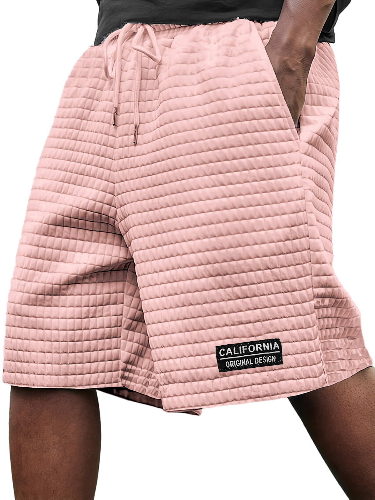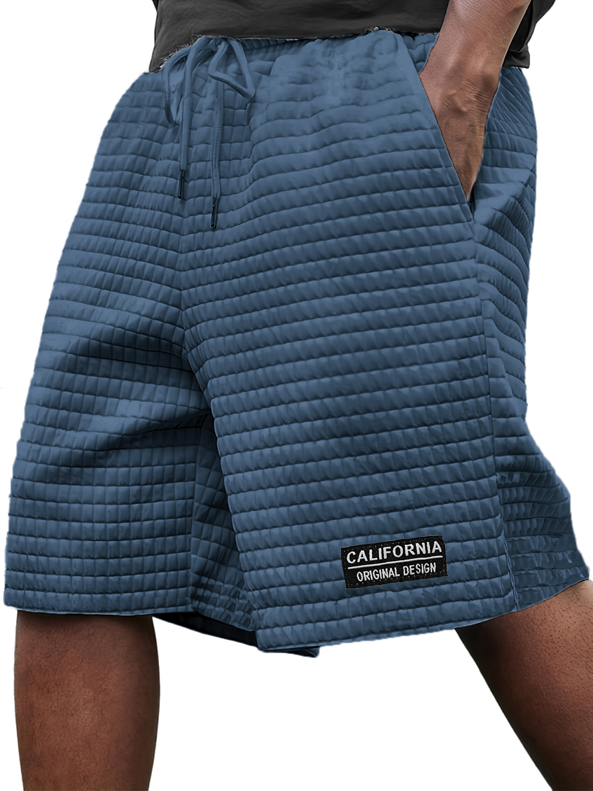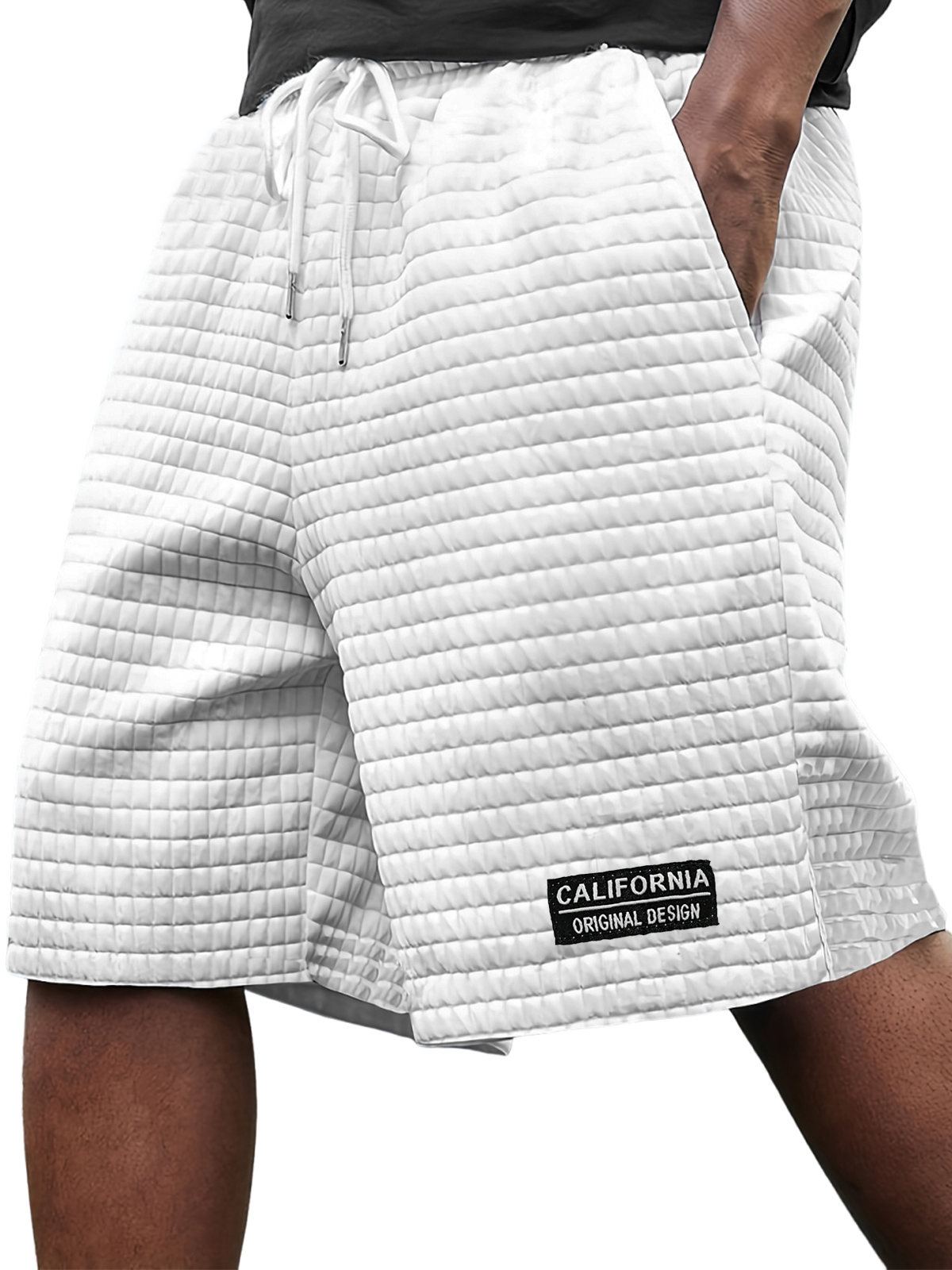 Men's Stylish Ice Silk Quilted Plaid Embroidered Label Breathable Casual Loose Shorts