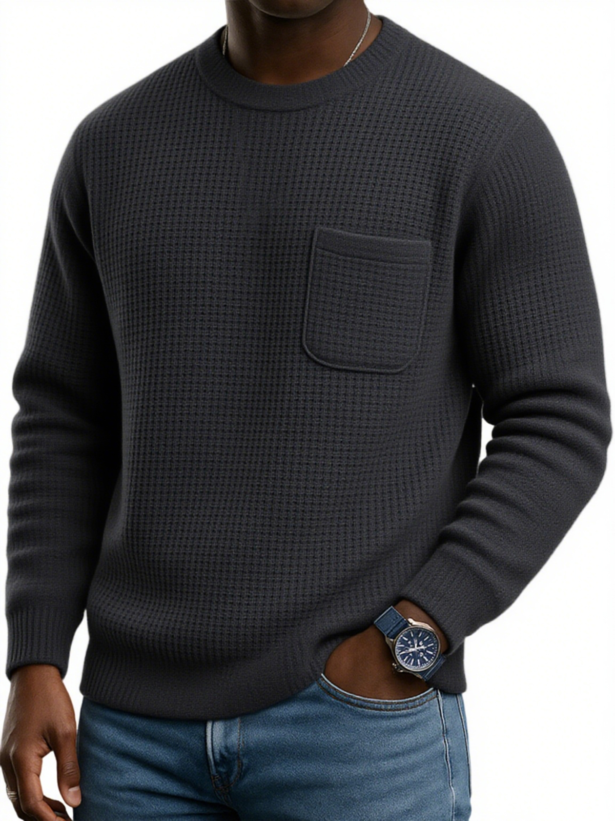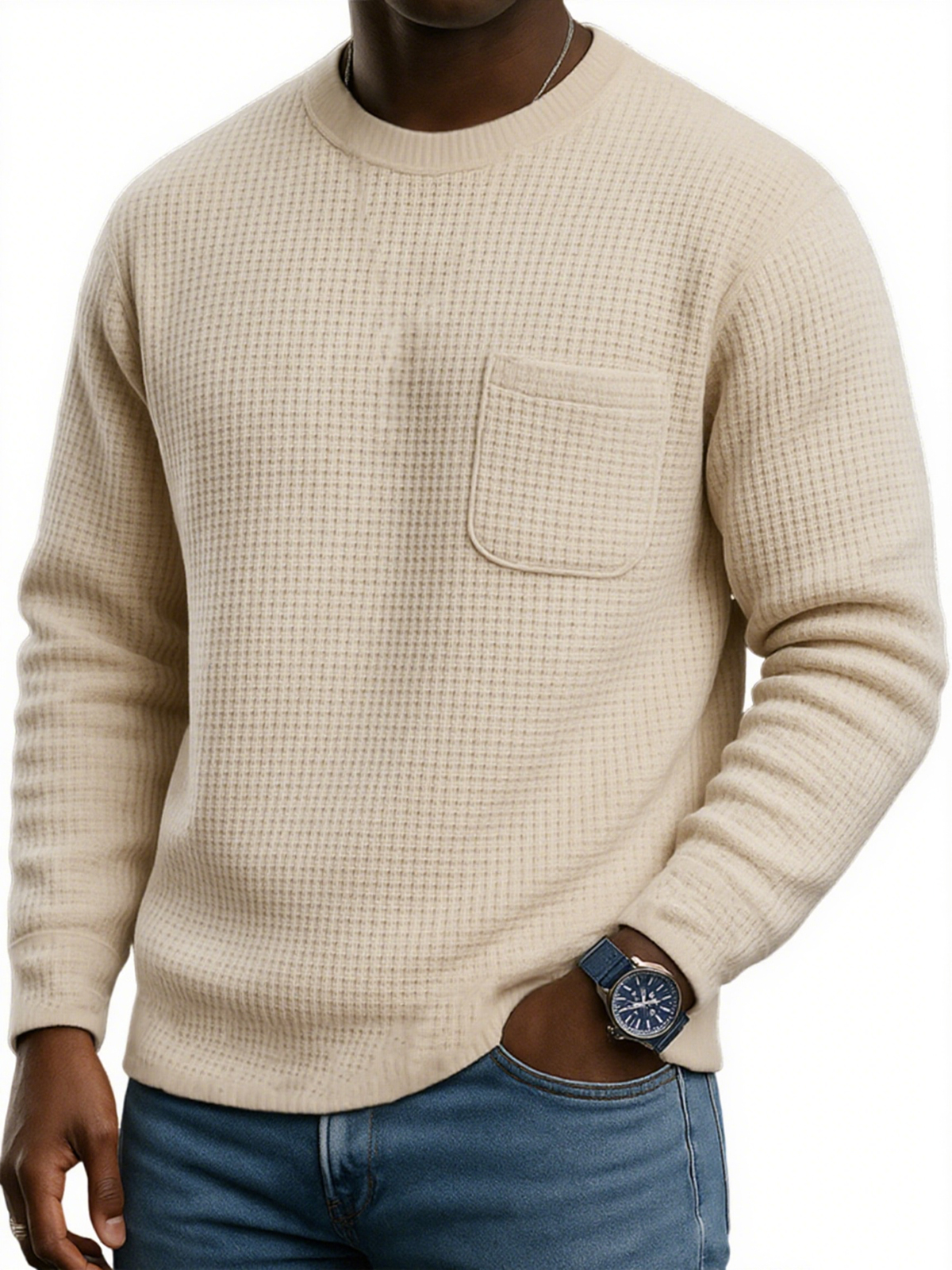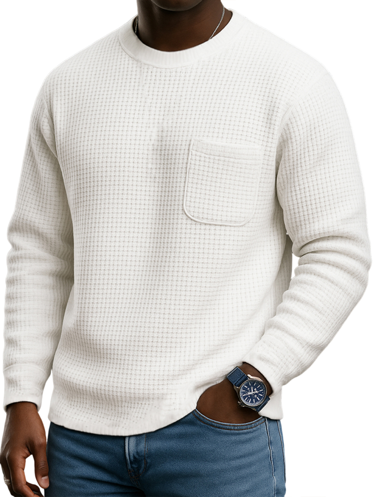 Men's Stylish Waffle Casual Pocket Sweatshirt