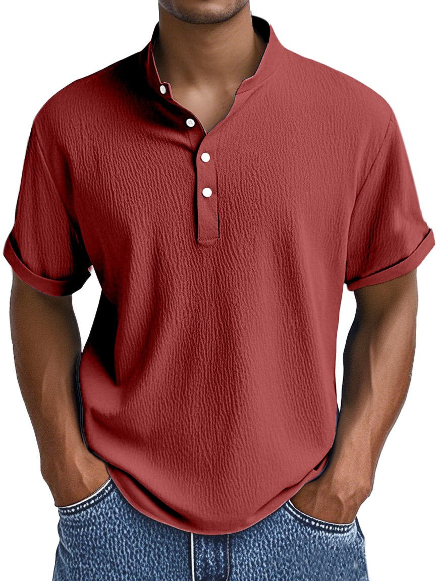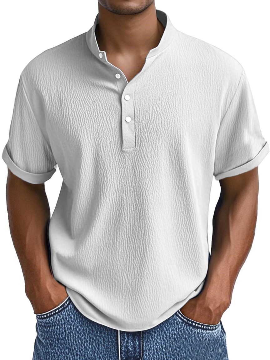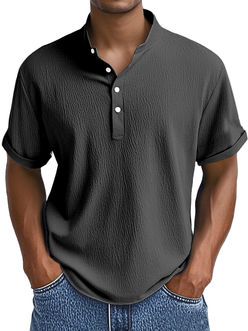 Men's Summer Daily Solid Color Pleated Texture Short-sleeved Henley Shirt