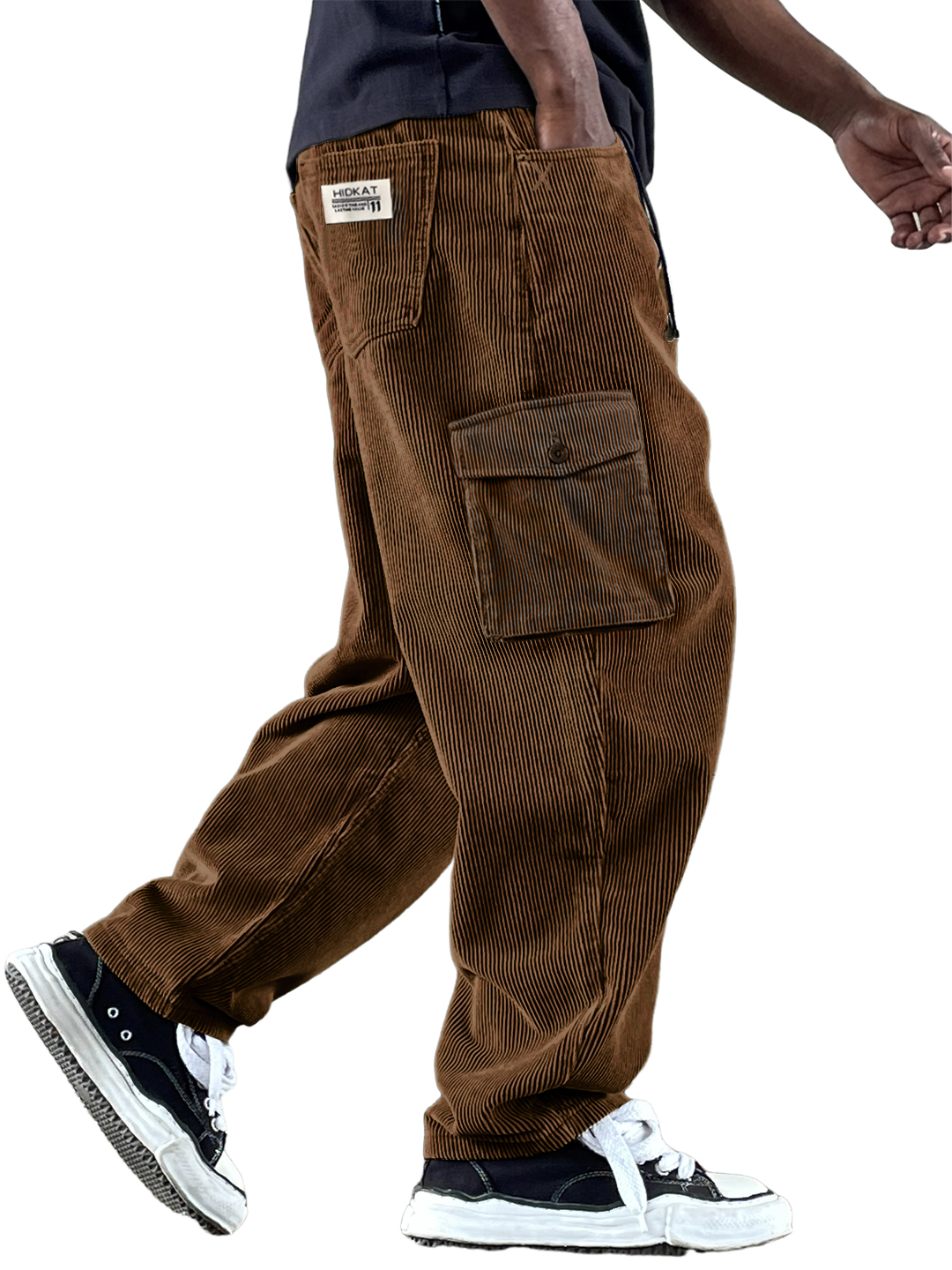 Men's Vintage Casual Multi Pocket Workwear Corduroy Trousers
