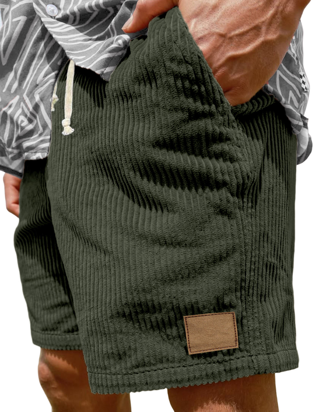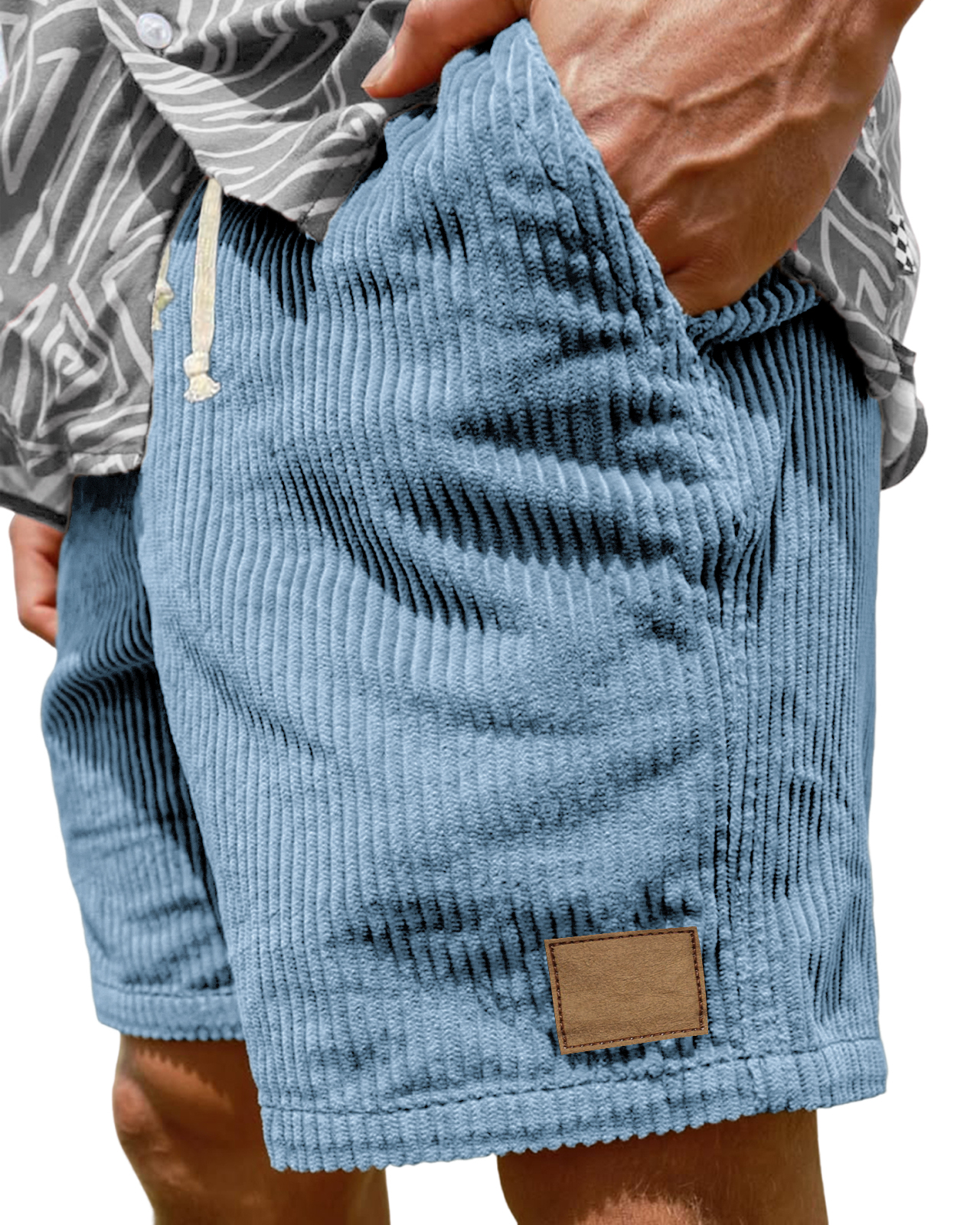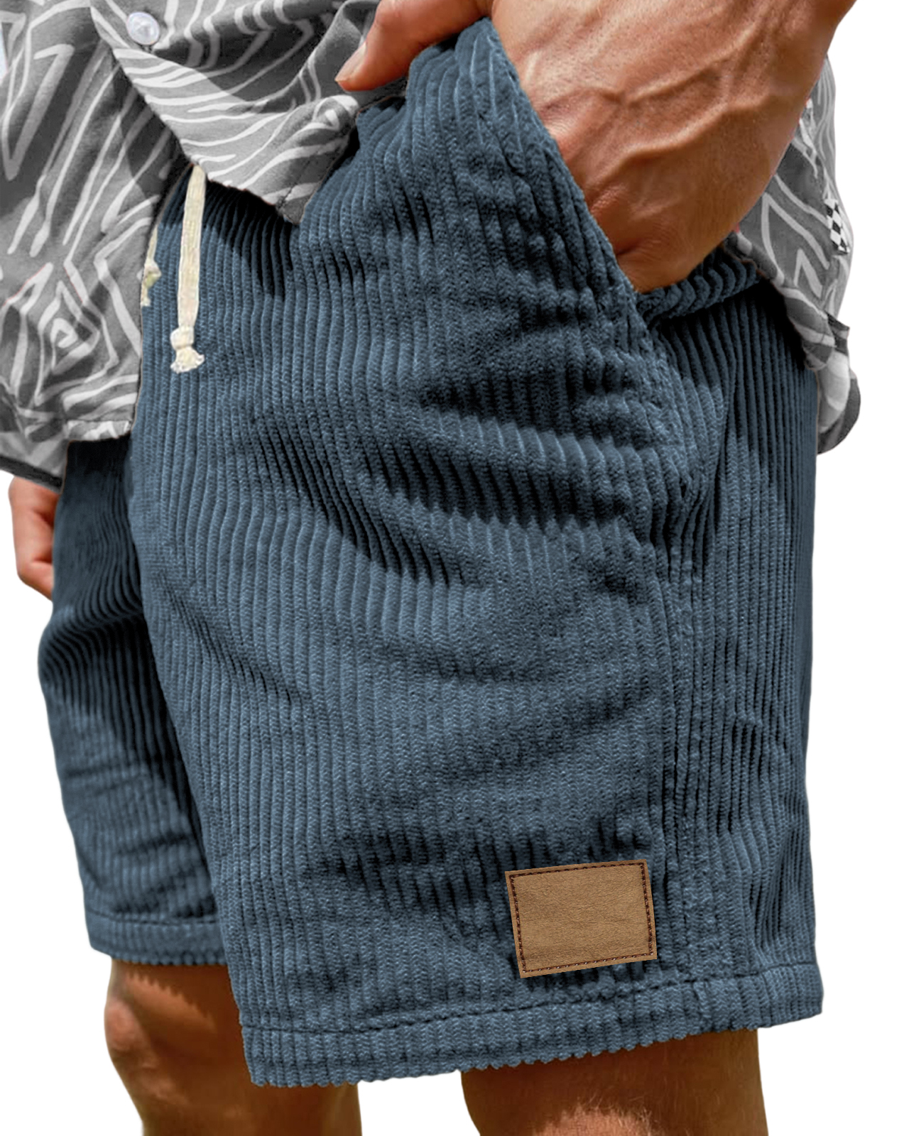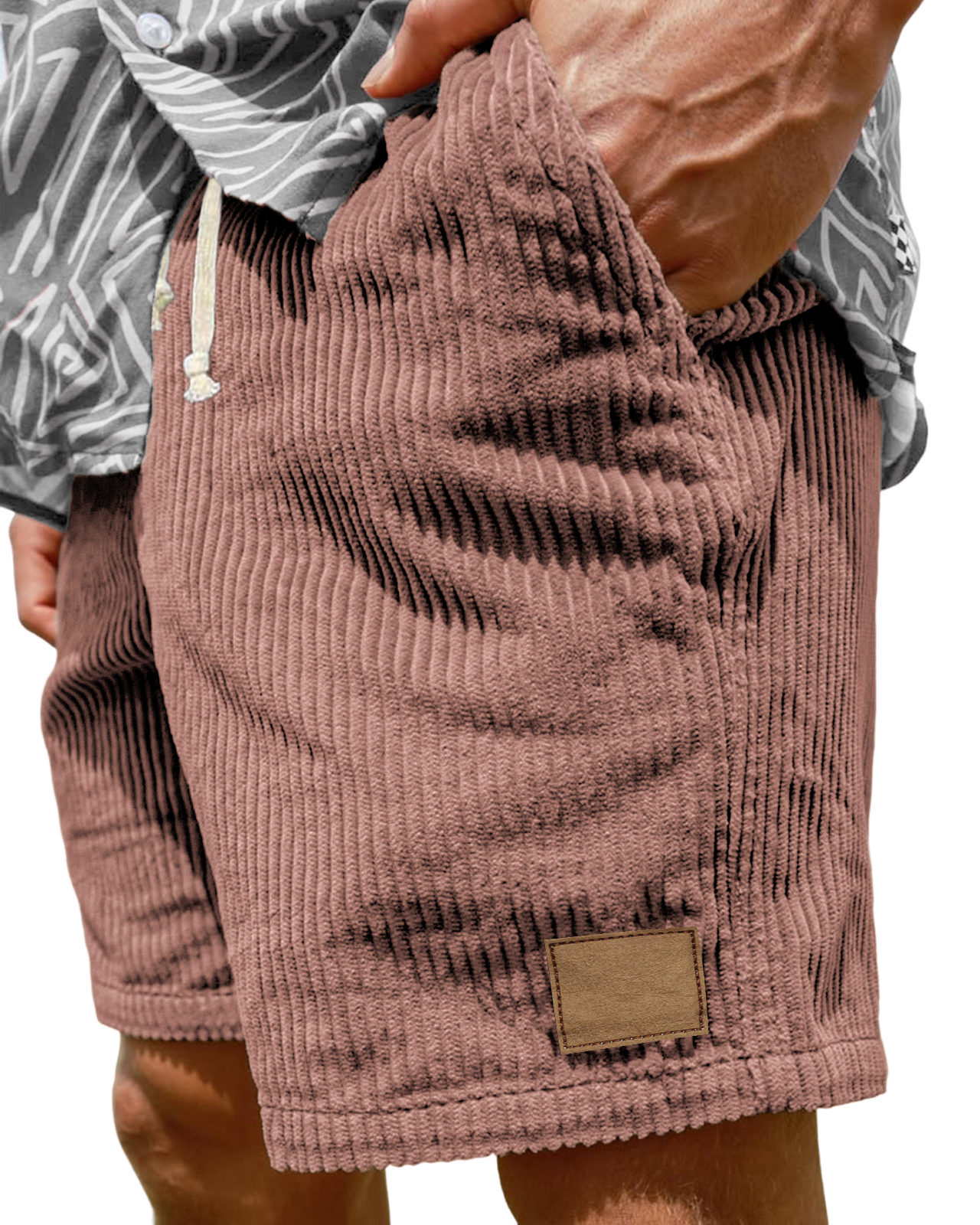 Men's Vintage Corduroy with Embroidered Lable Stylish Lace-up Casual Shorts