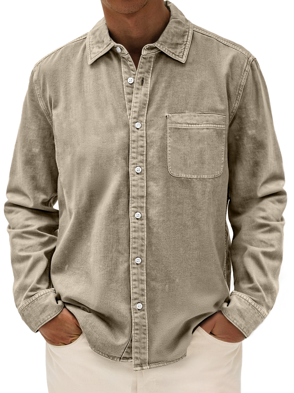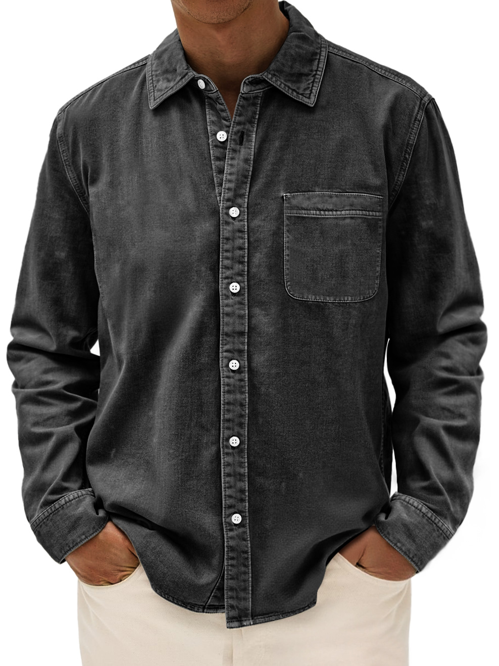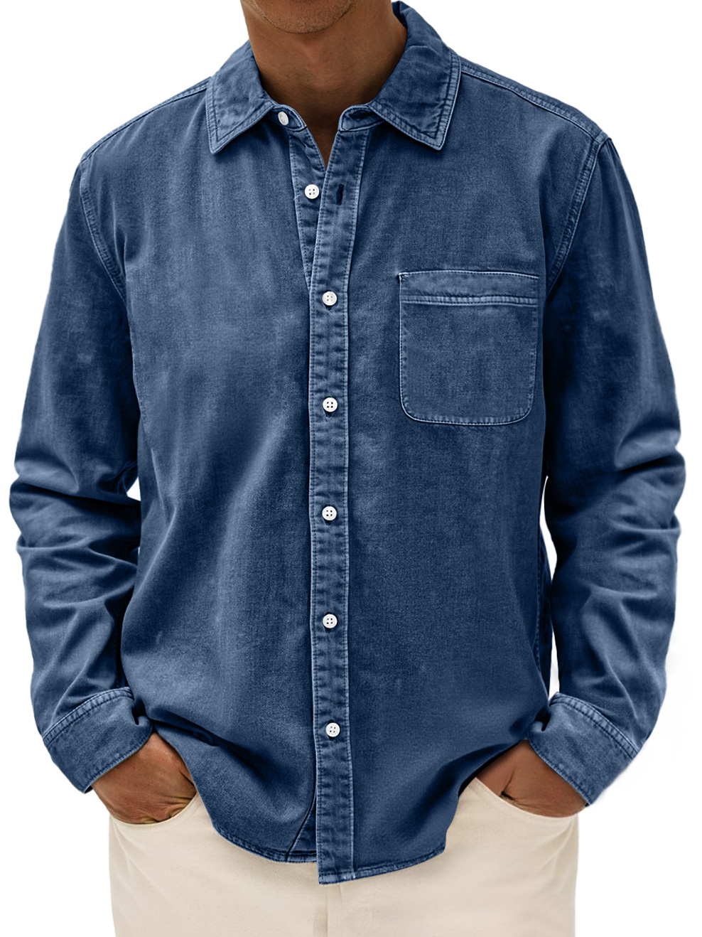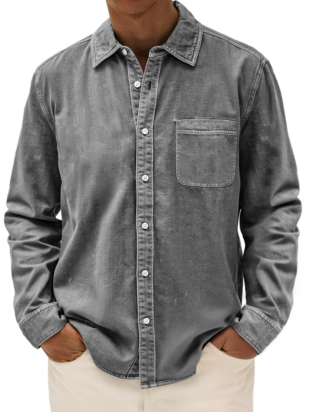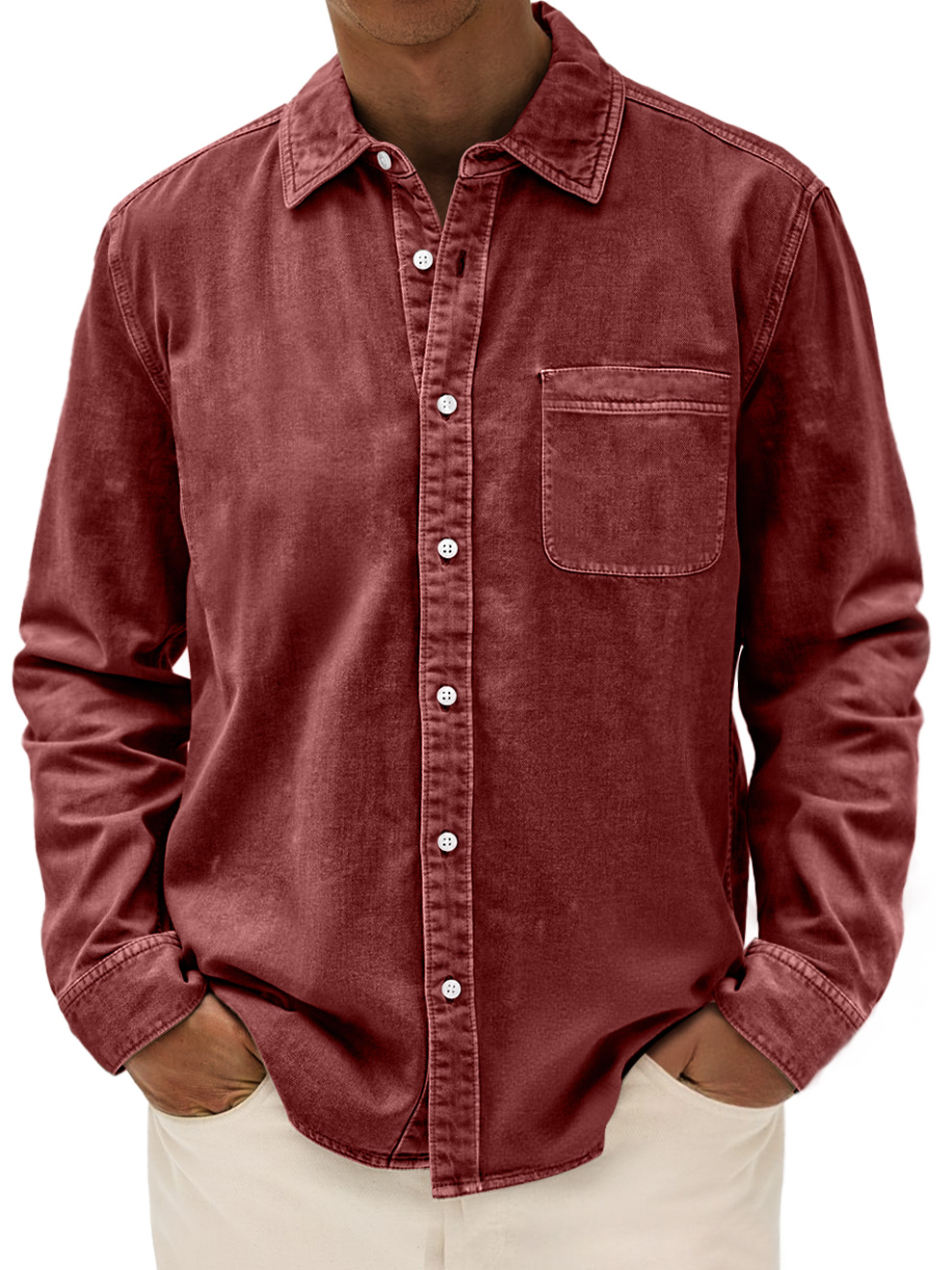 Men's Vintage Daily Casual Pocket Distressed Long-sleeved Shirt