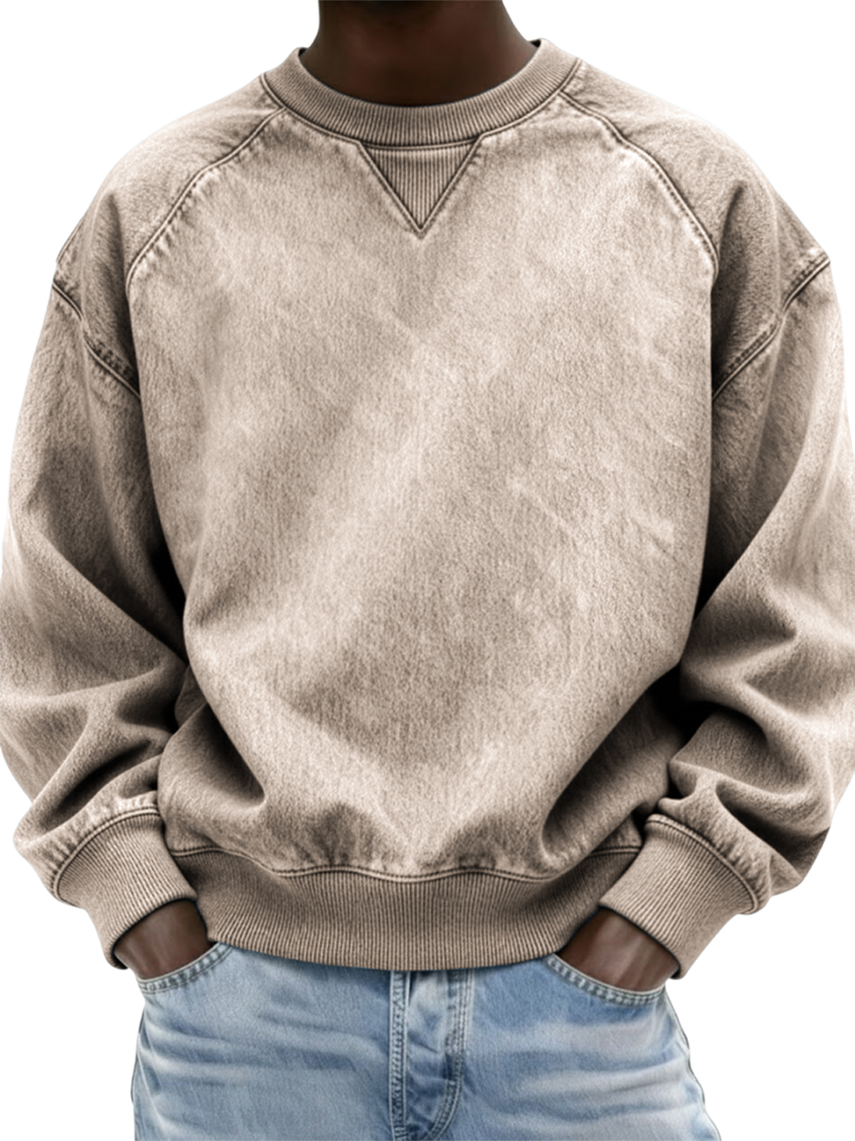 Men's Vintage Distressed Raglan Sleeve Patchwork Crew Neck Pullover Sweatshirt