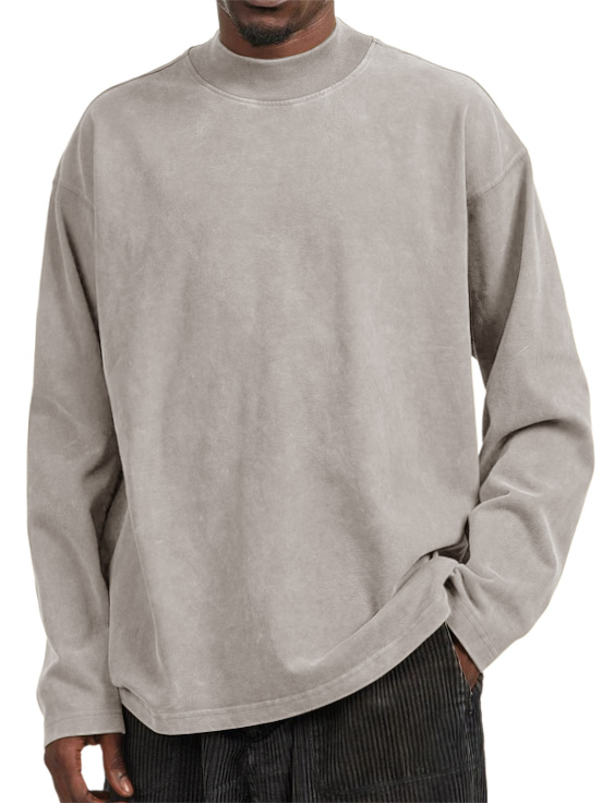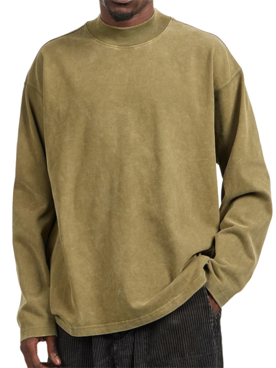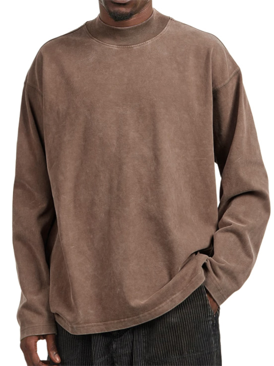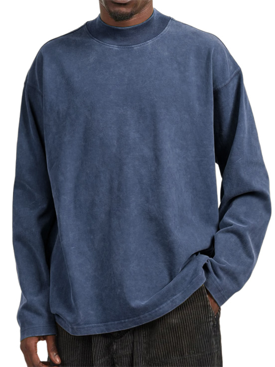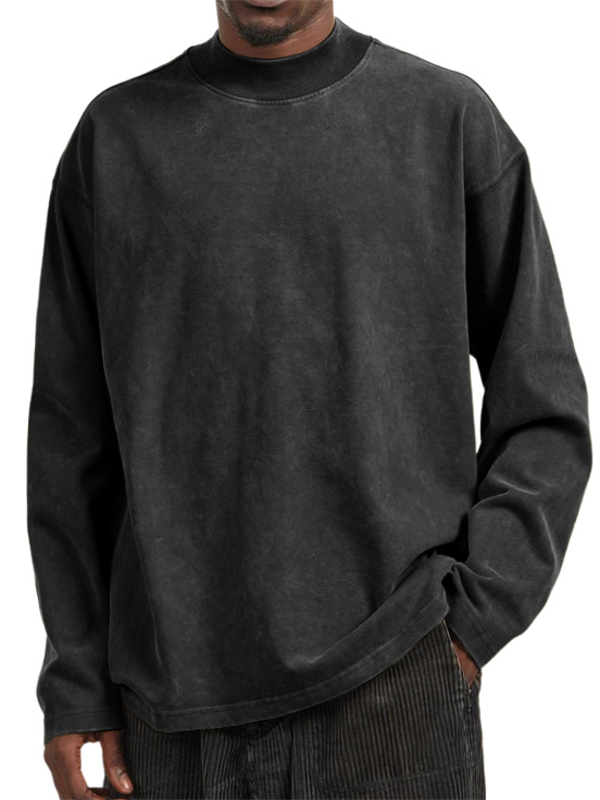 Men's Vintage Washed Distressed Crew Neck Long Sleeve T-Shirt