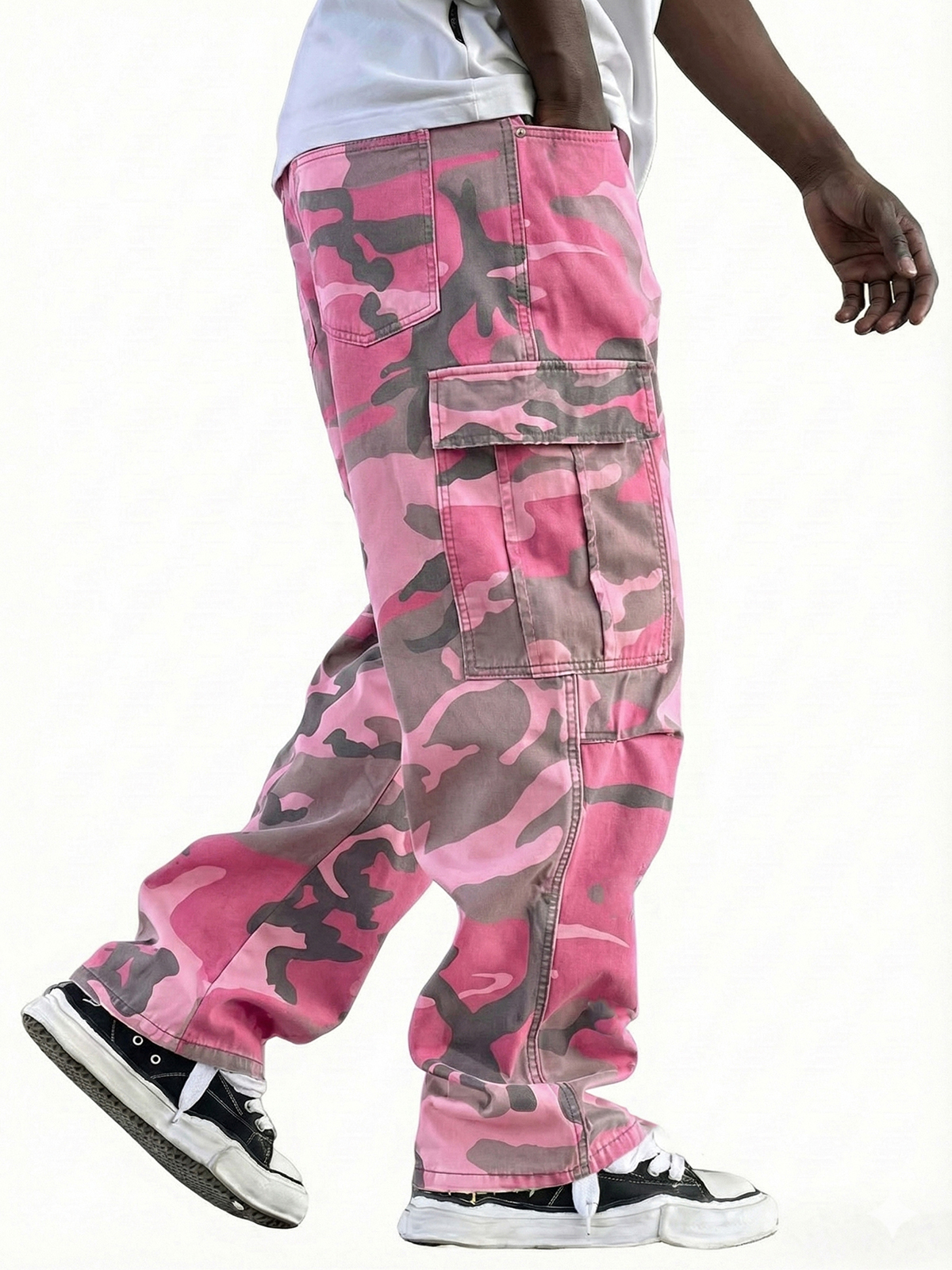 Men's Vintage Workwear Irregular Camouflage Pattern Multi-pocket Wide-leg Trousers