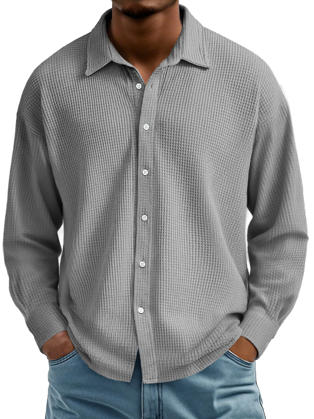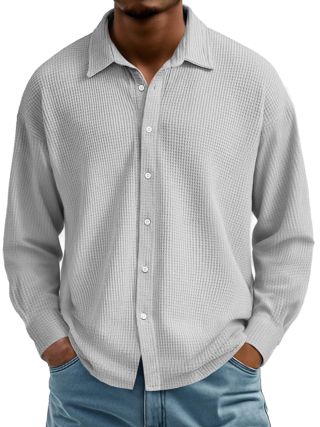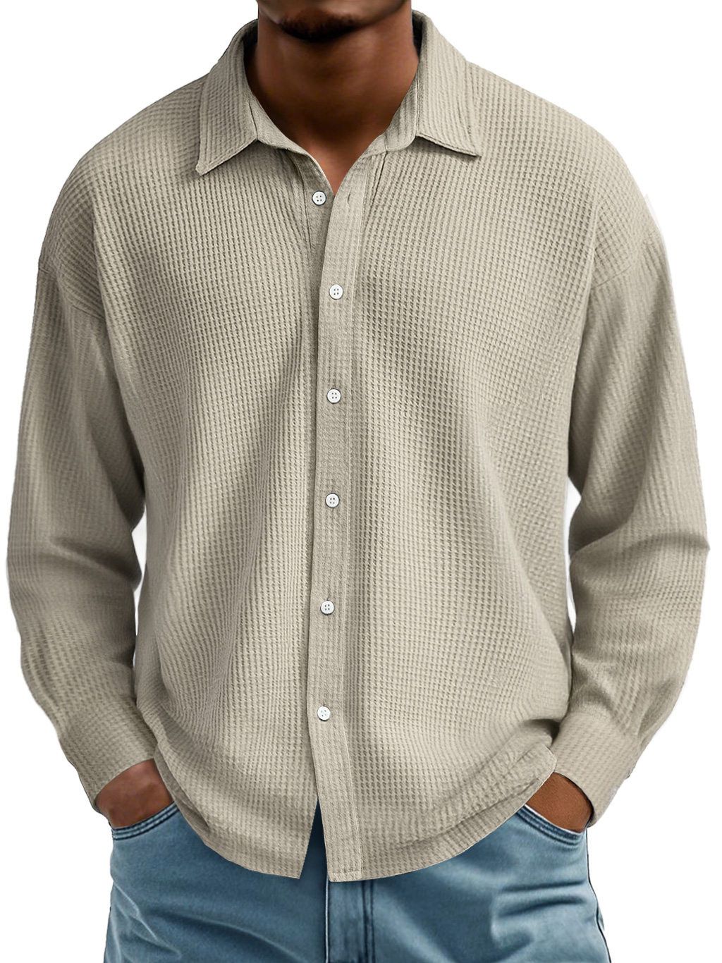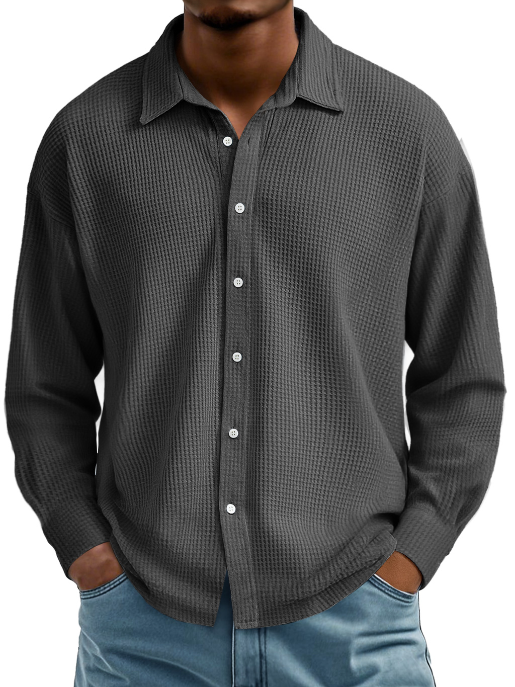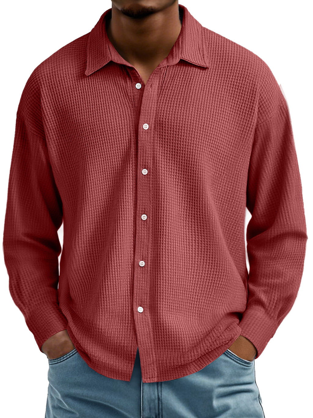 Men's Waffle Lapel Casual Comfort Long Sleeve Shirt