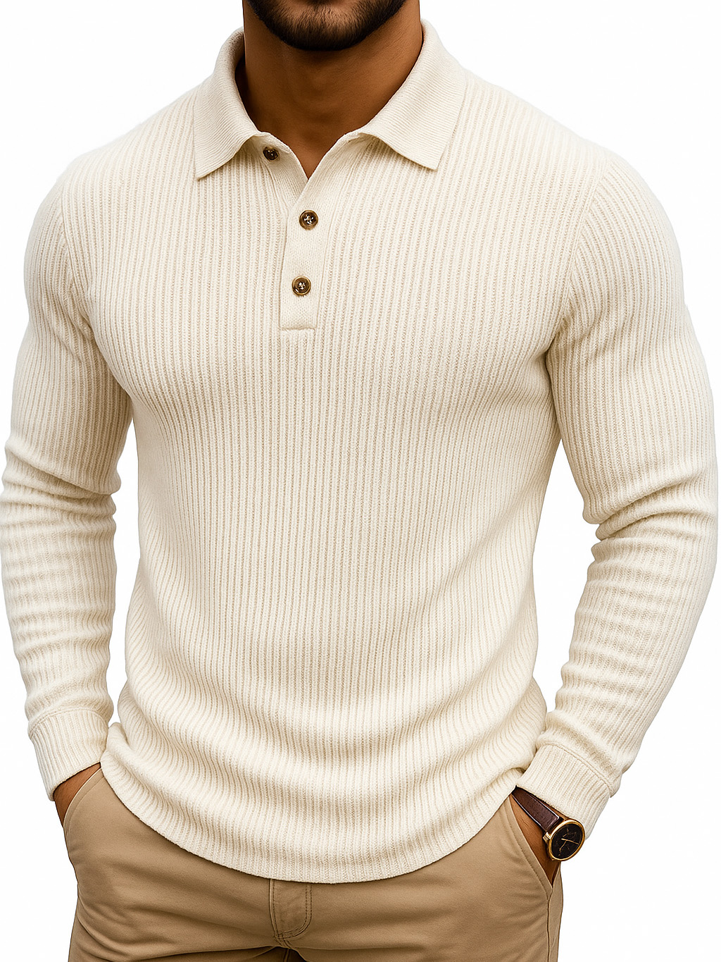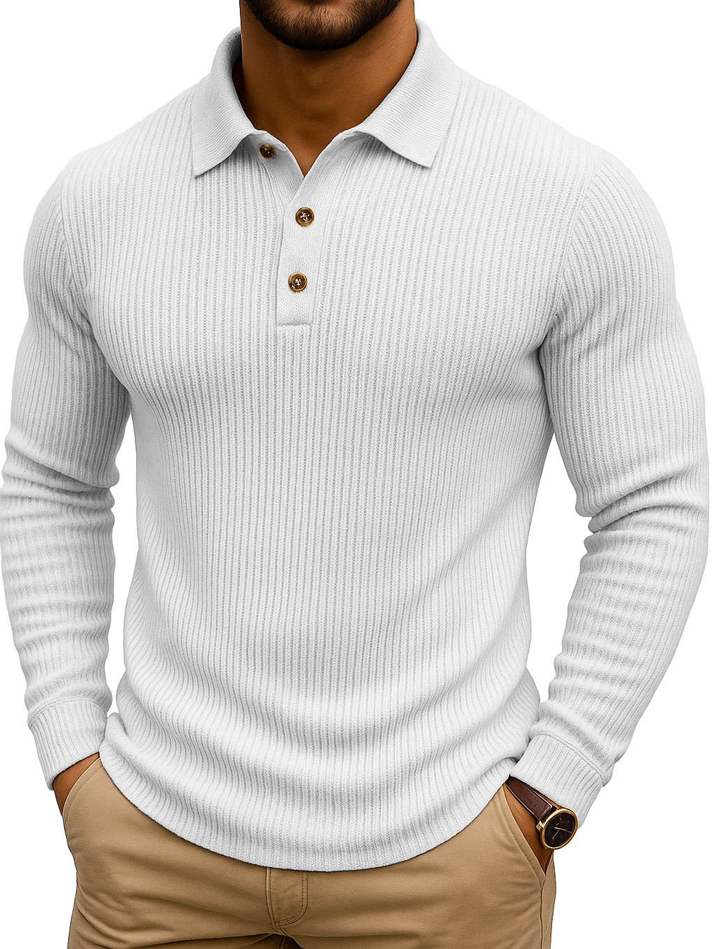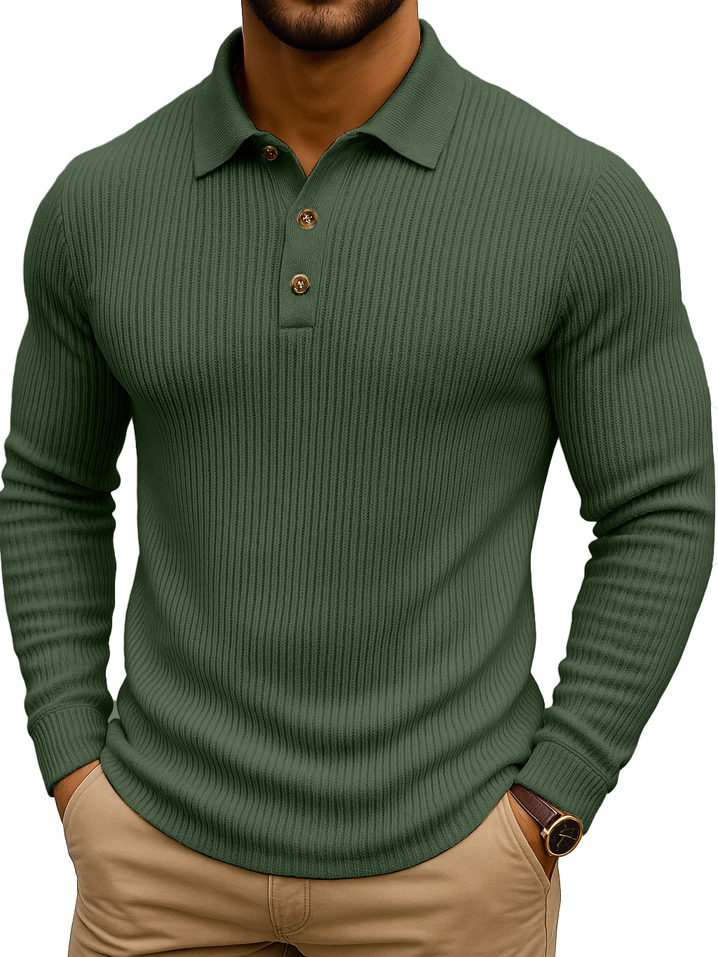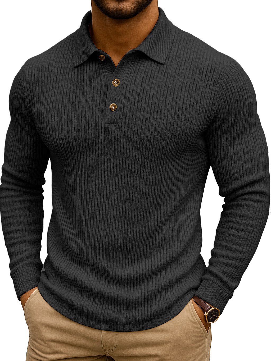 Simple Casual Striped Stretch Long-sleeved Polo Shirt