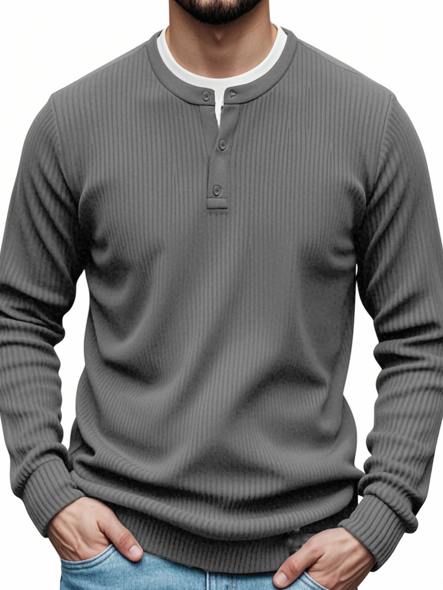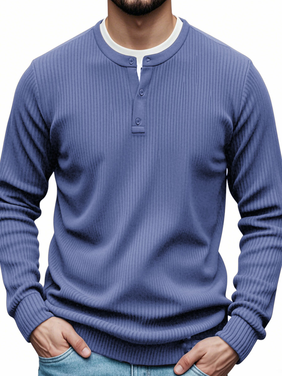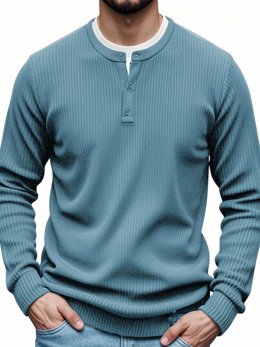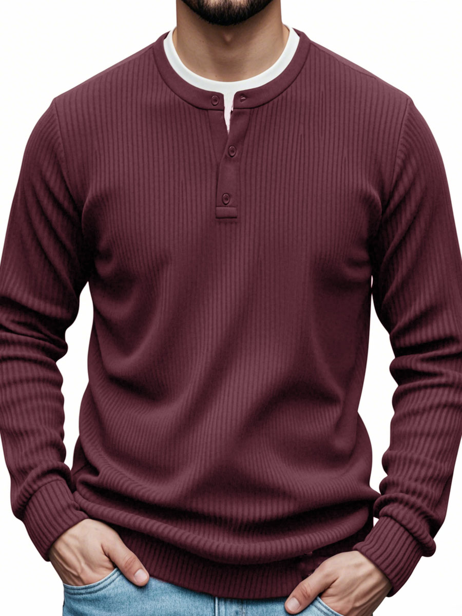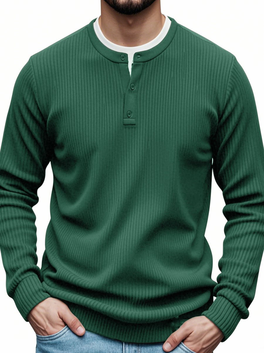 Men's Fashion Casual Retro Ribbed Fabric Long Sleeve Henley Shirt