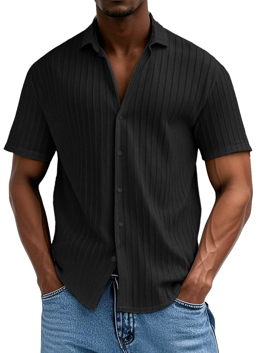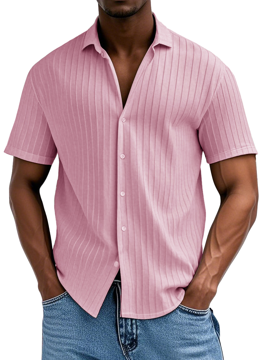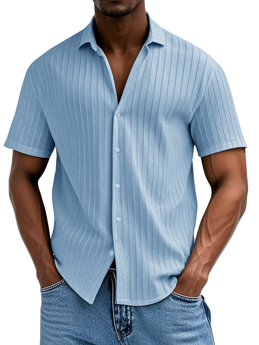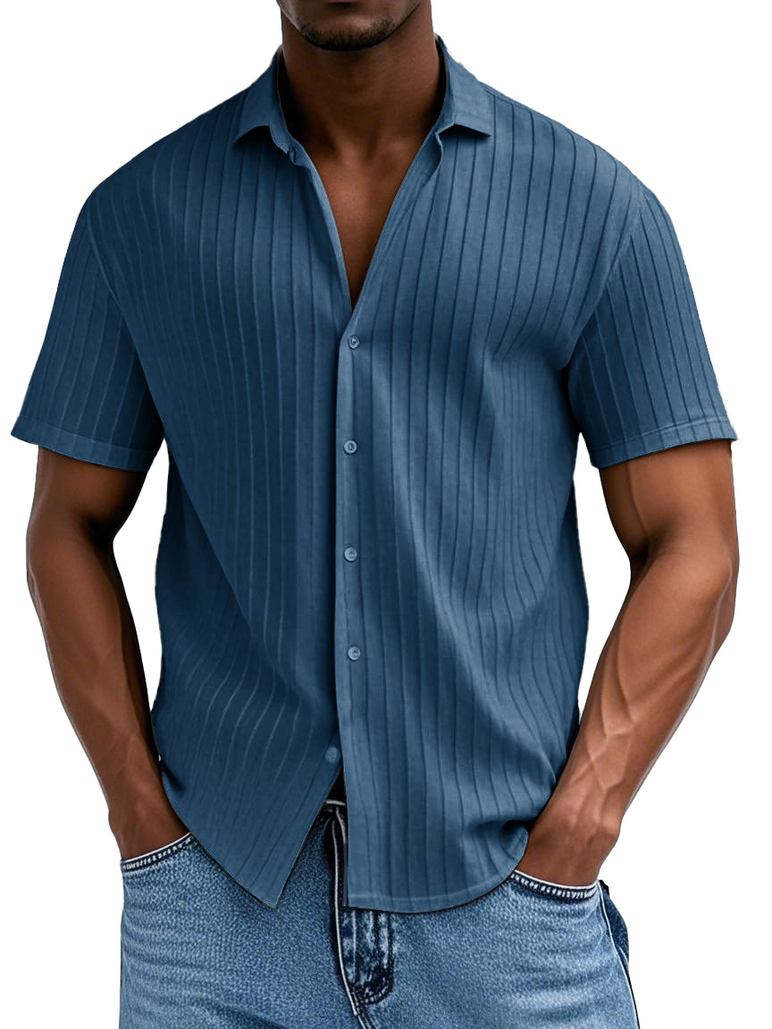 Men's Fashion Casual Short-sleeved Shirt With Ribbed Fabric