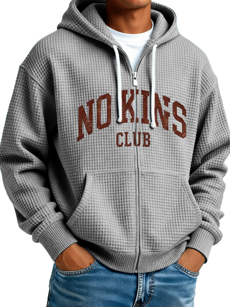 "no Kings" Letter-printed Waffle Fabric Pockets Long-sleeved Hoodie