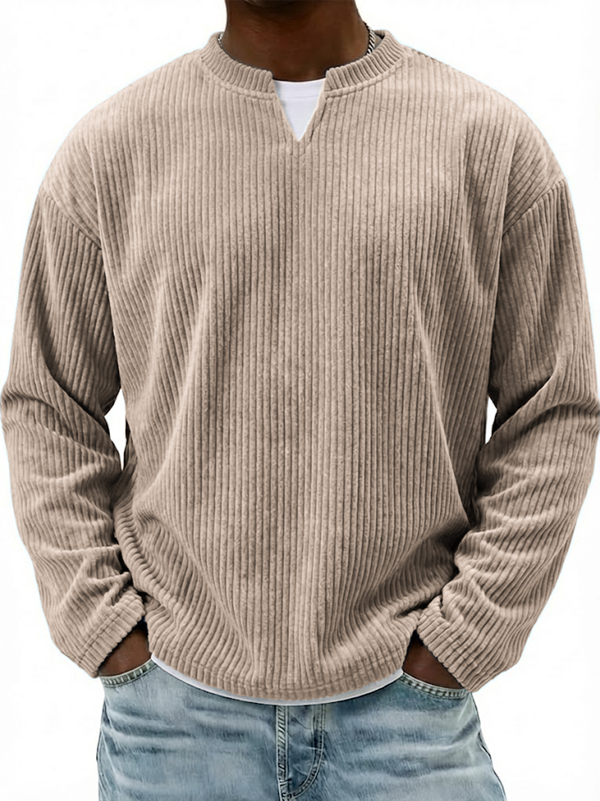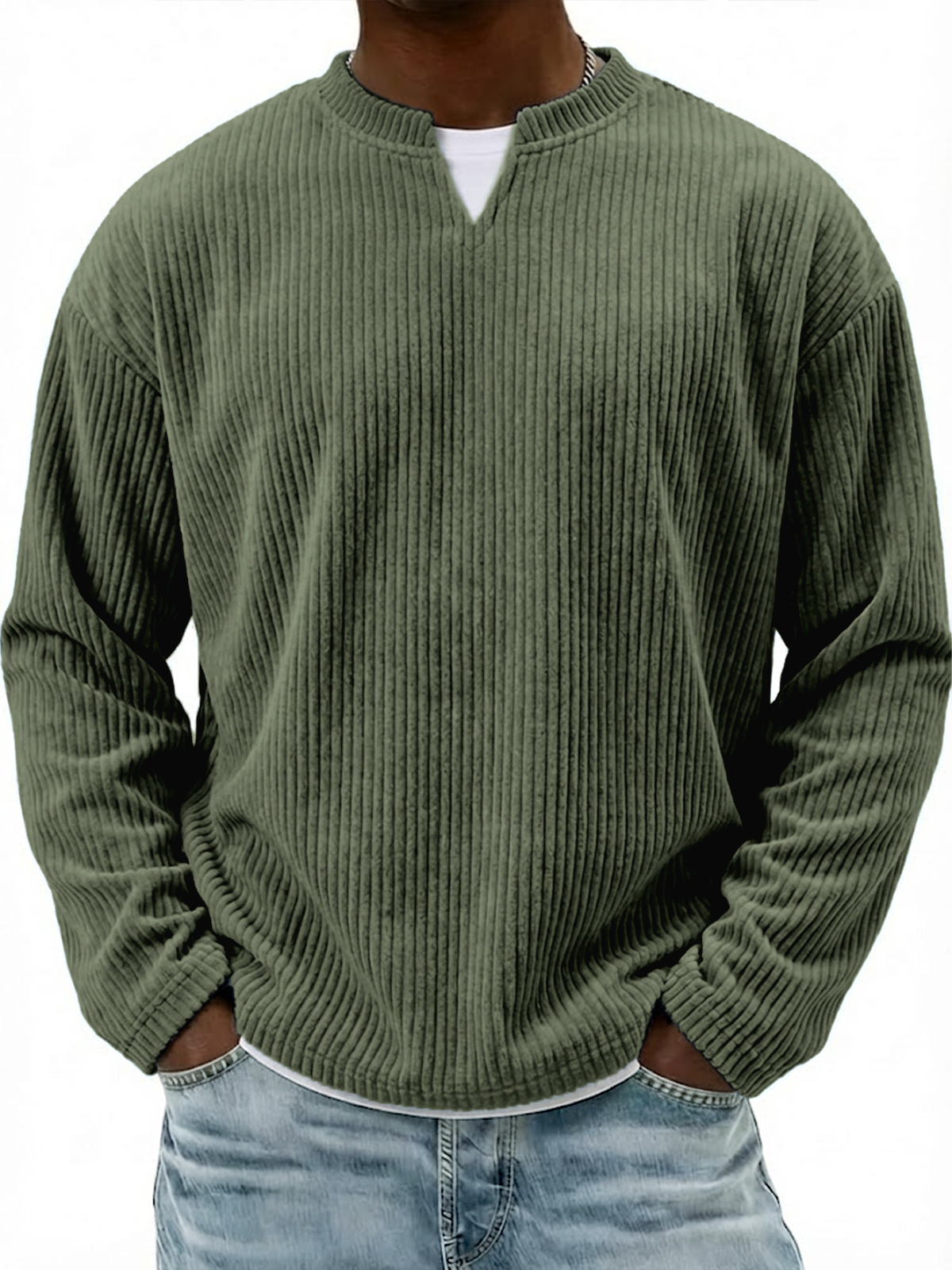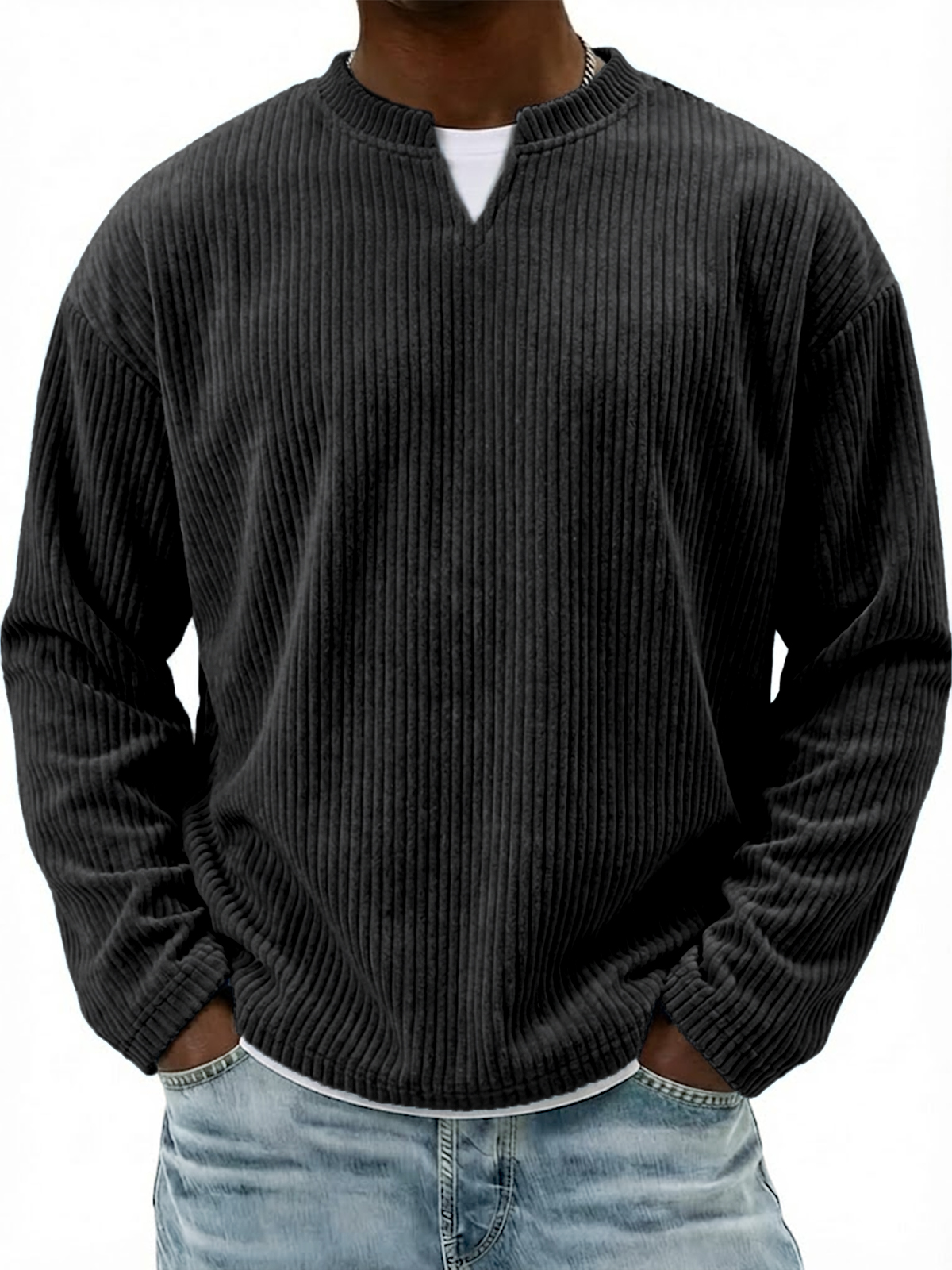 Corduroy V-neck Casual Long-sleeved T-shirt