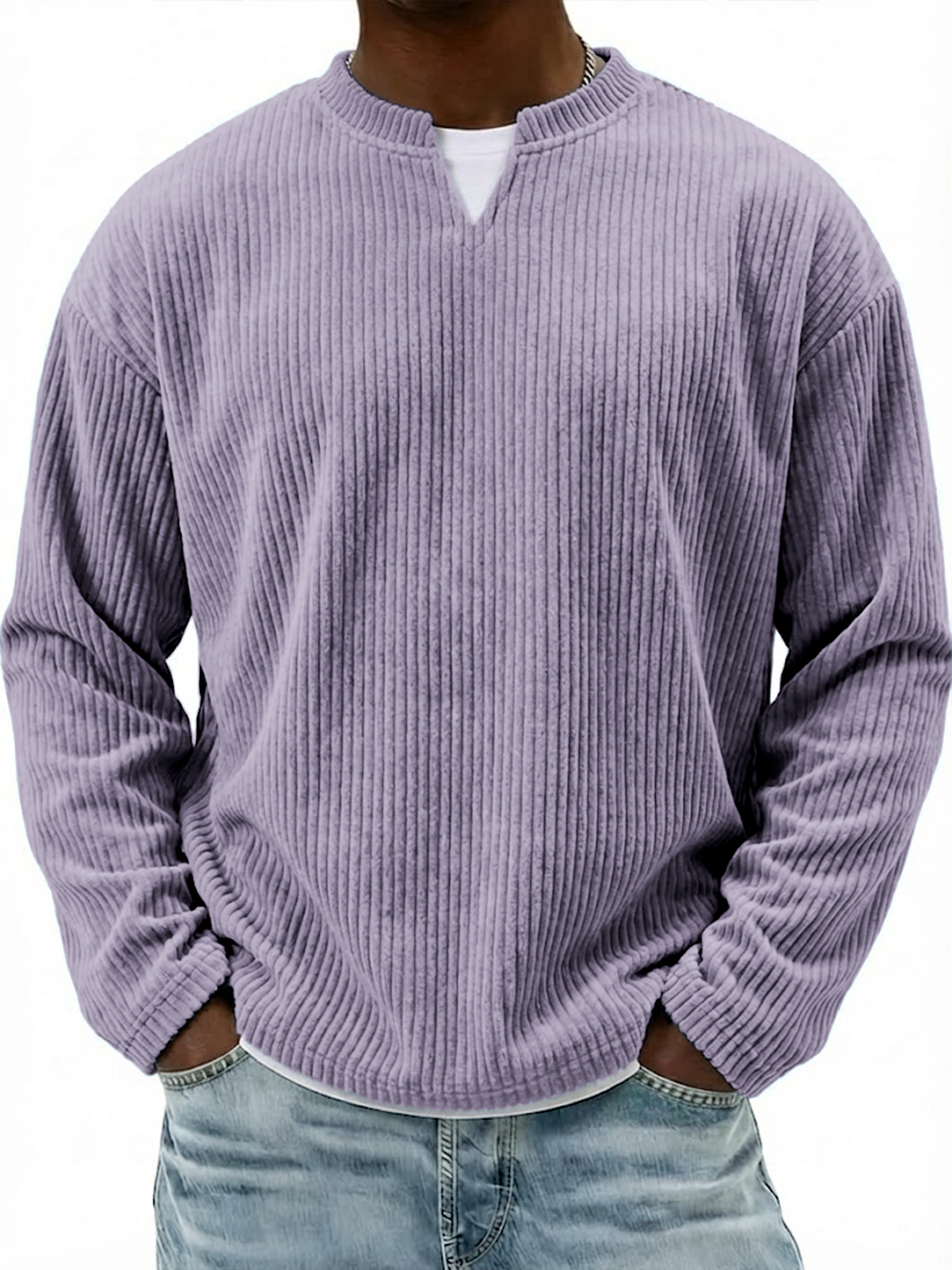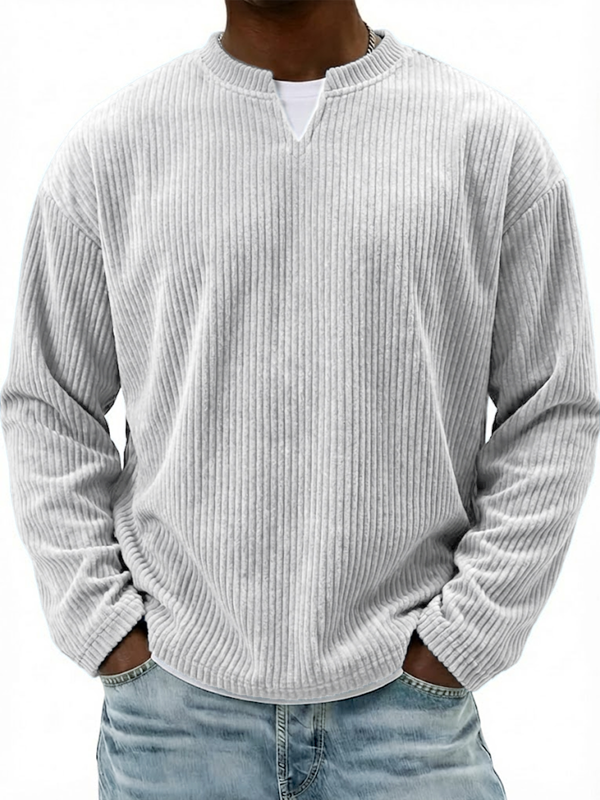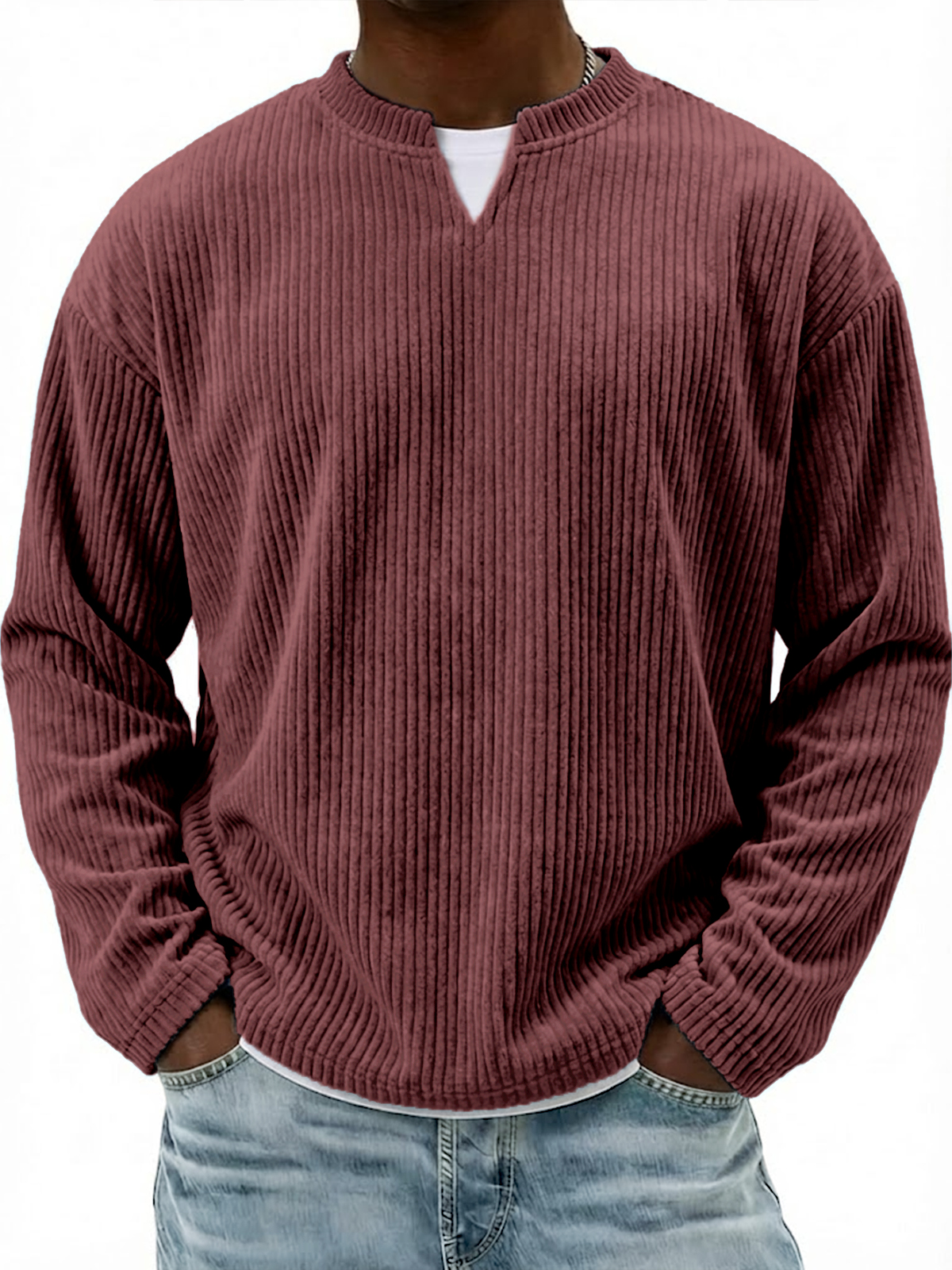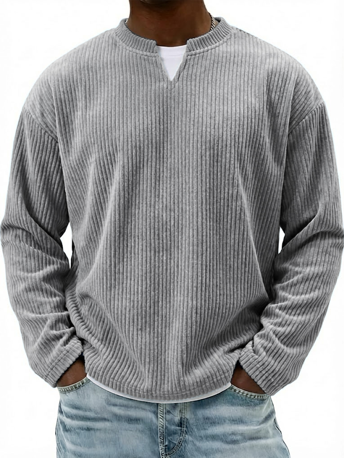 Corduroy V-neck Casual Long-sleeved T-shirt