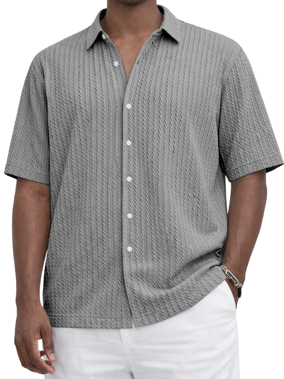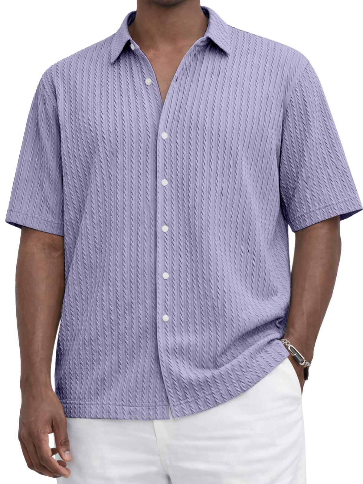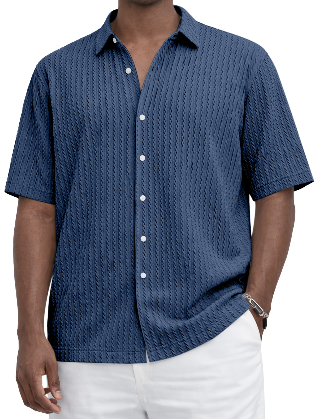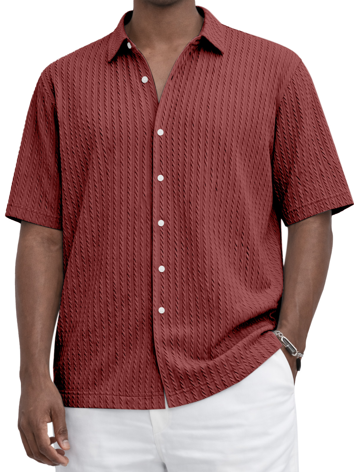 Everyday Casual Solid Color Textured Short-Sleeve Shirt