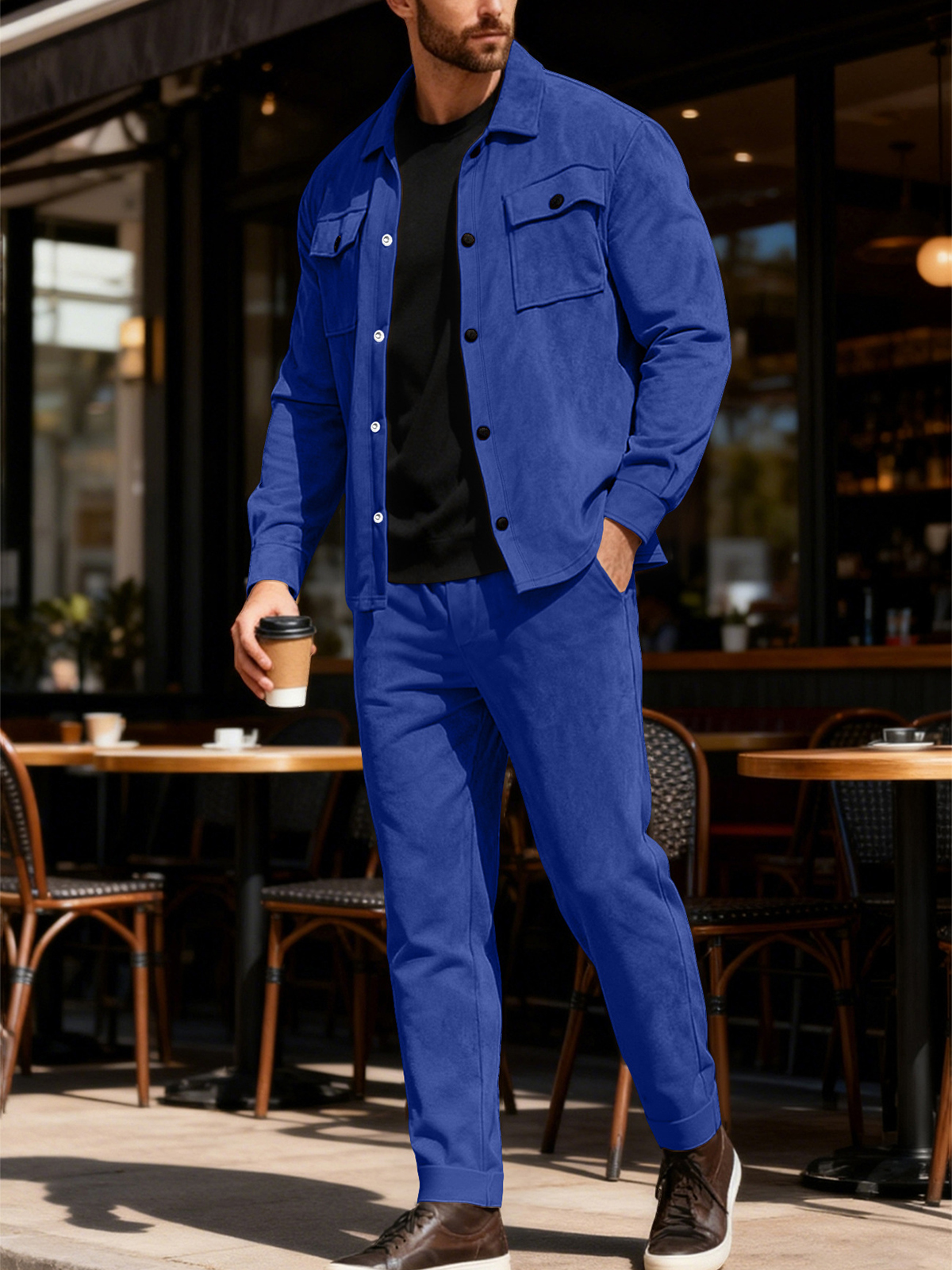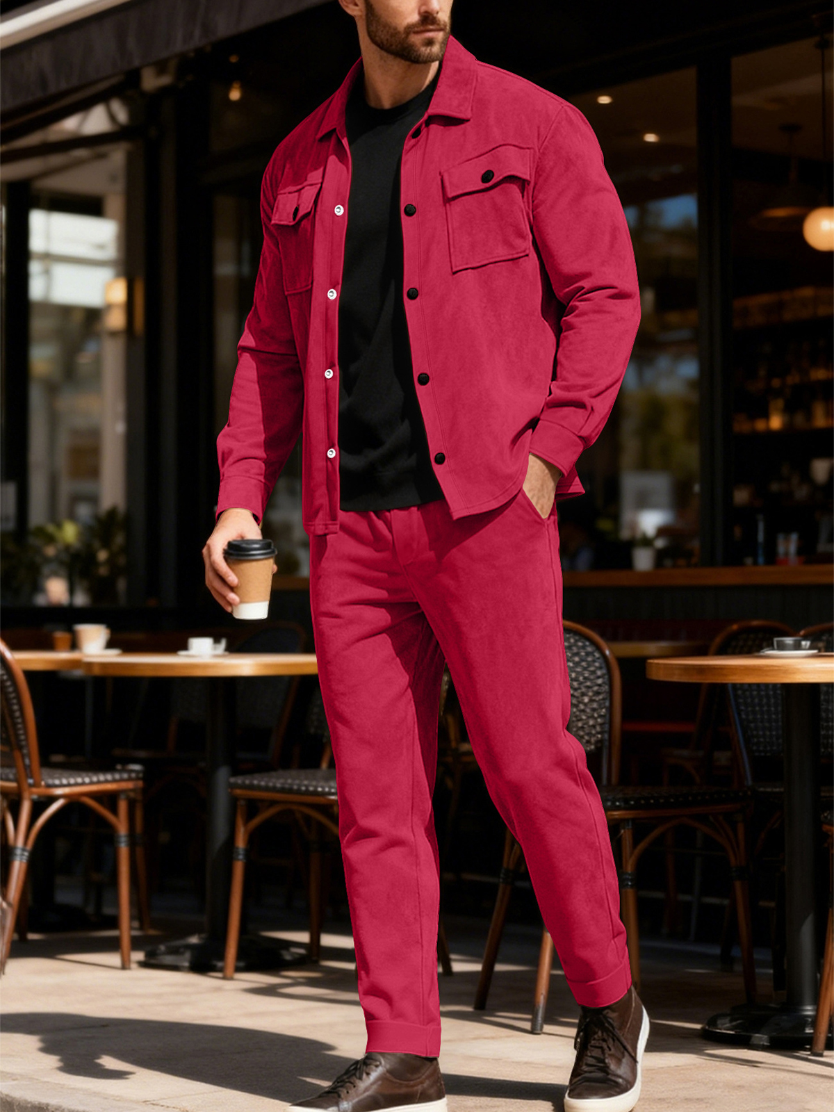 Heavyweight Casual Solid Color Suede Jacket and Trousers Set