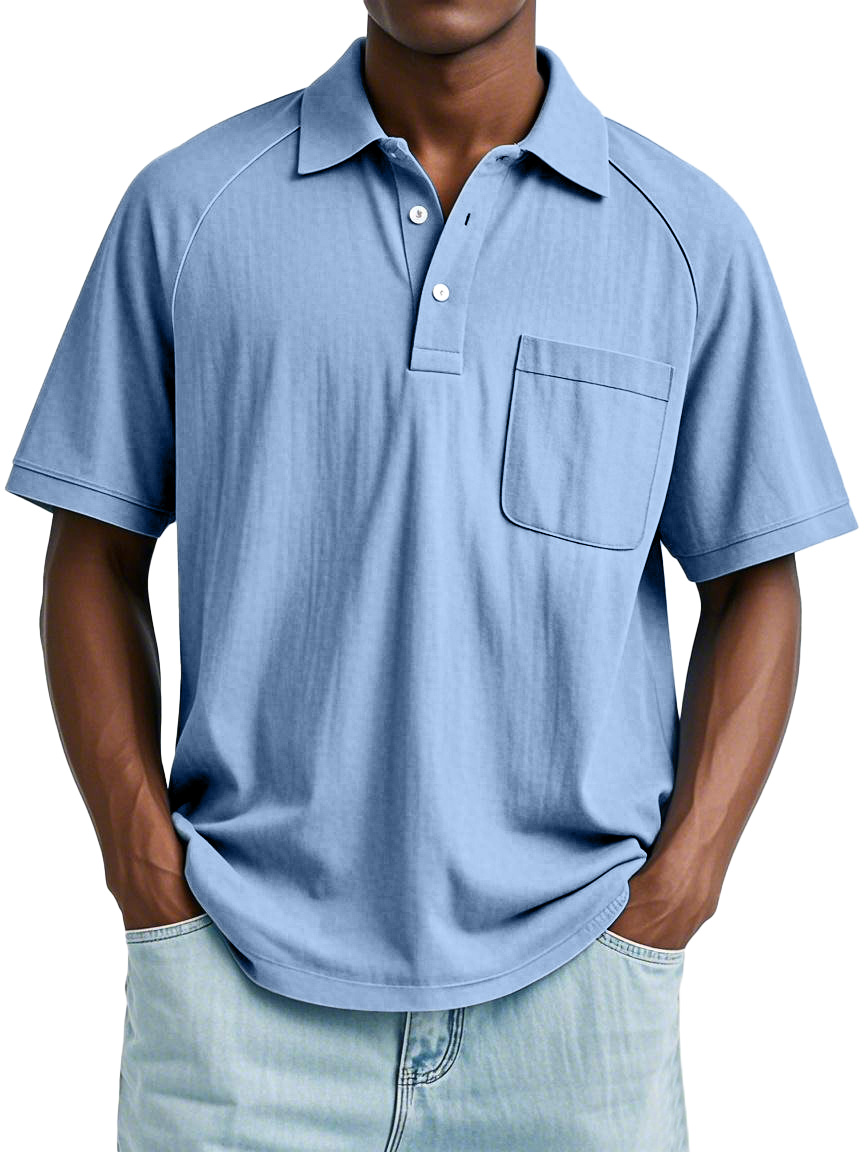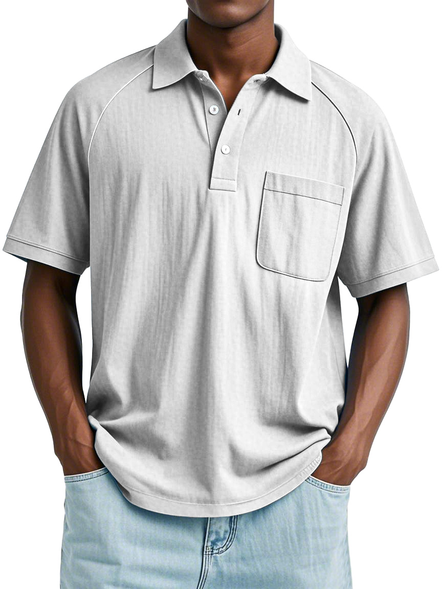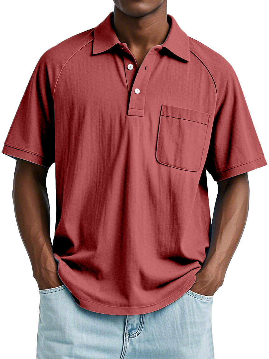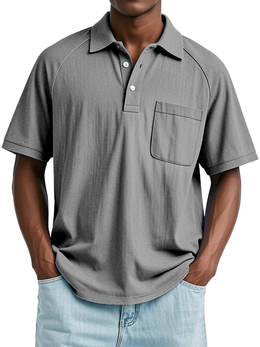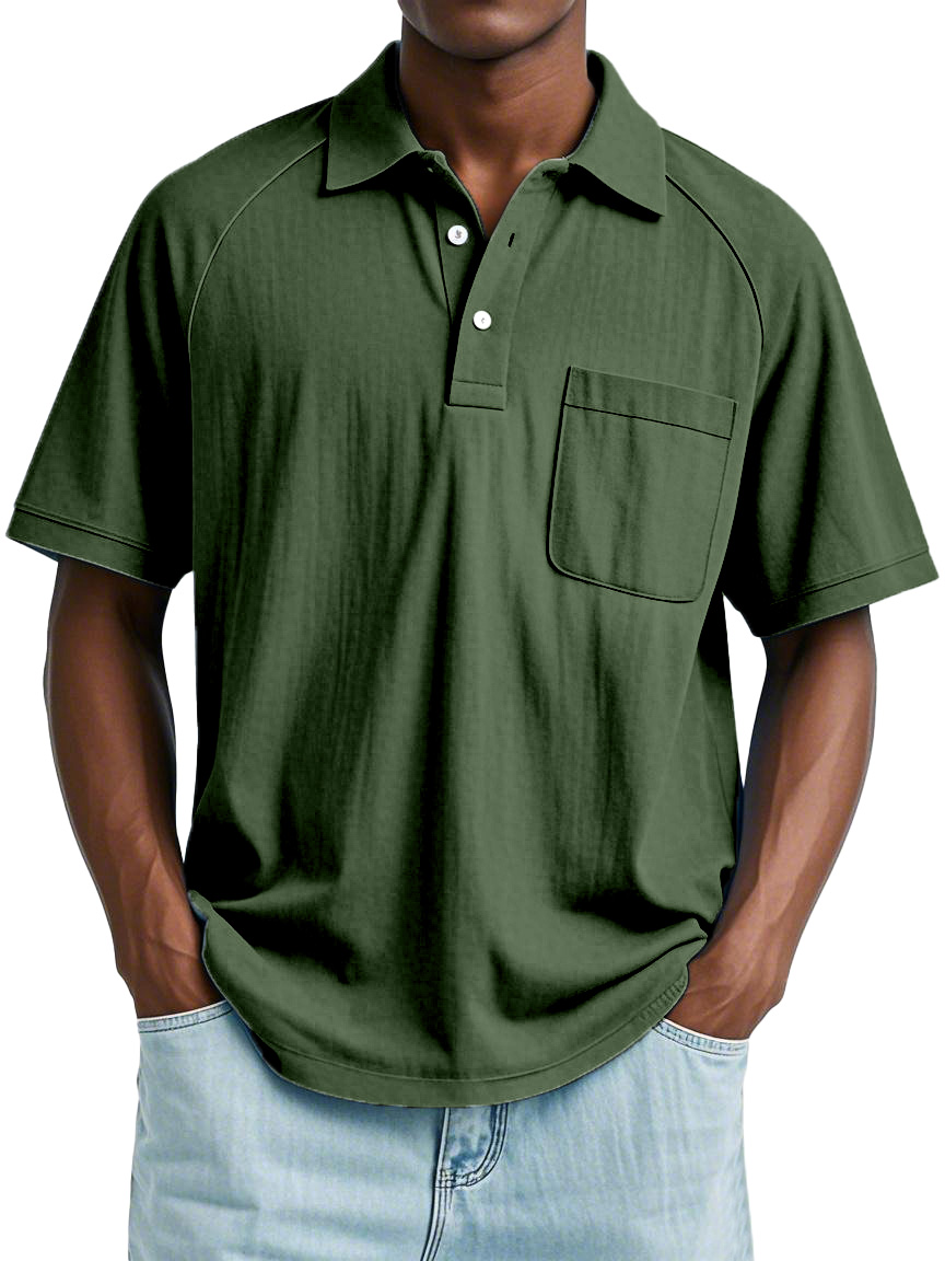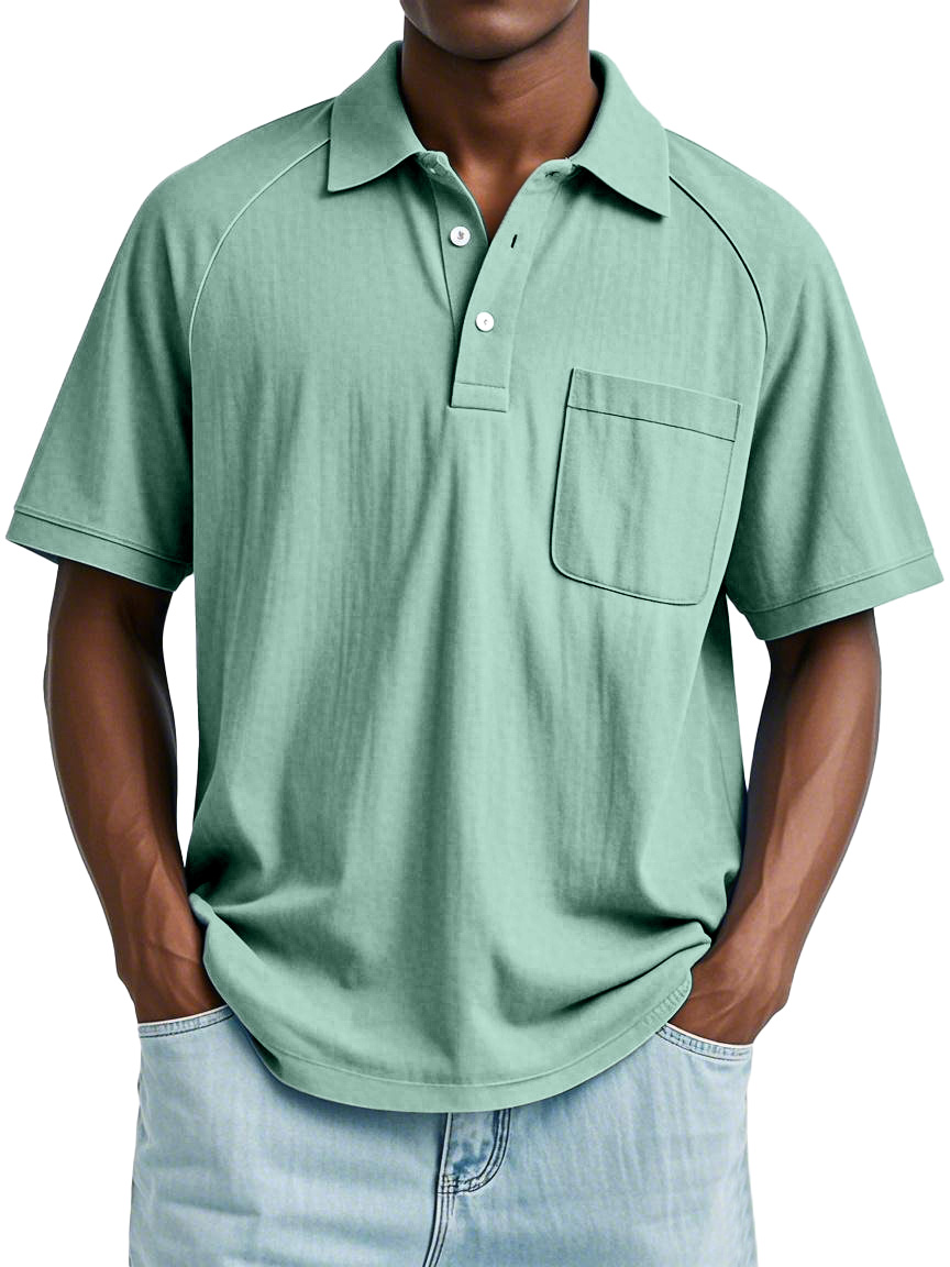 Men's Casual Simple Solid Color Raglan Short Sleeve Lapel Polo Shirt