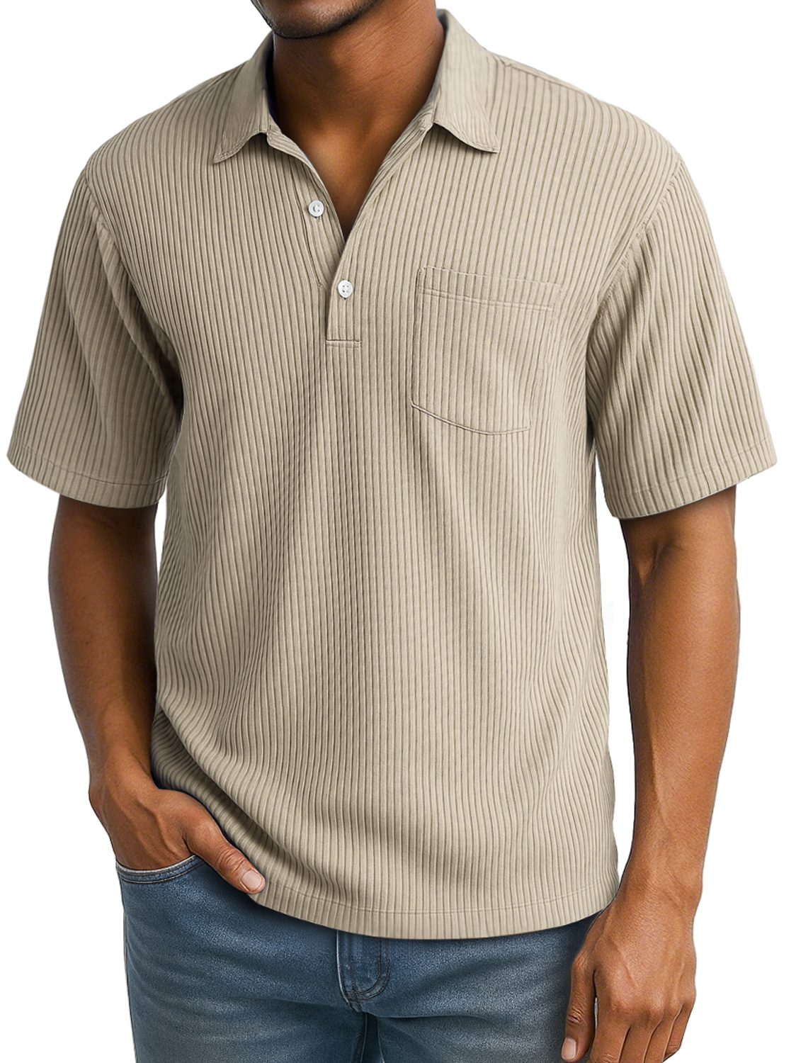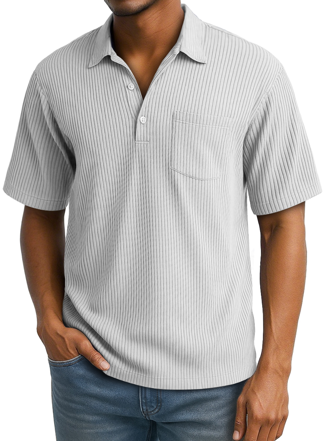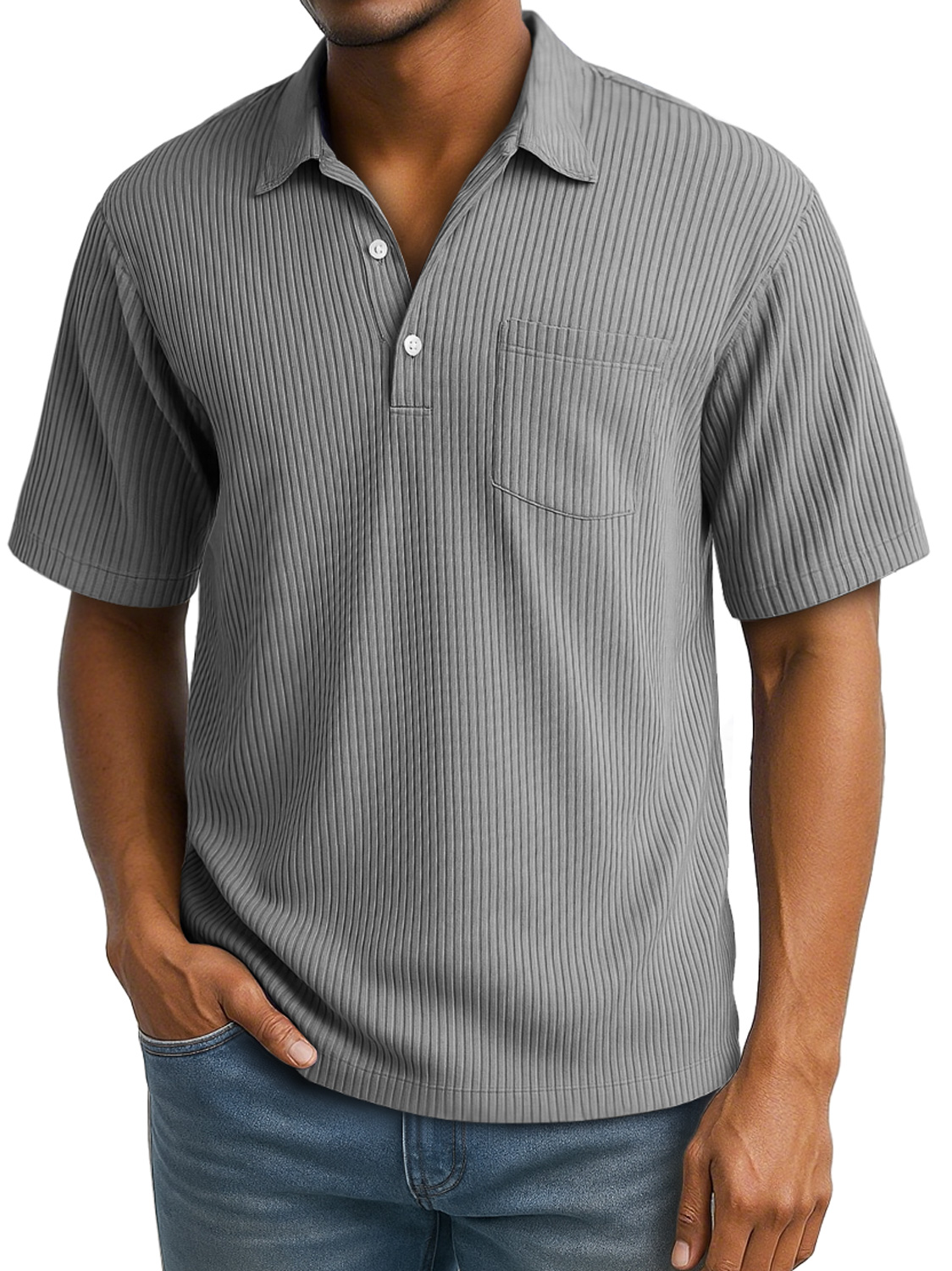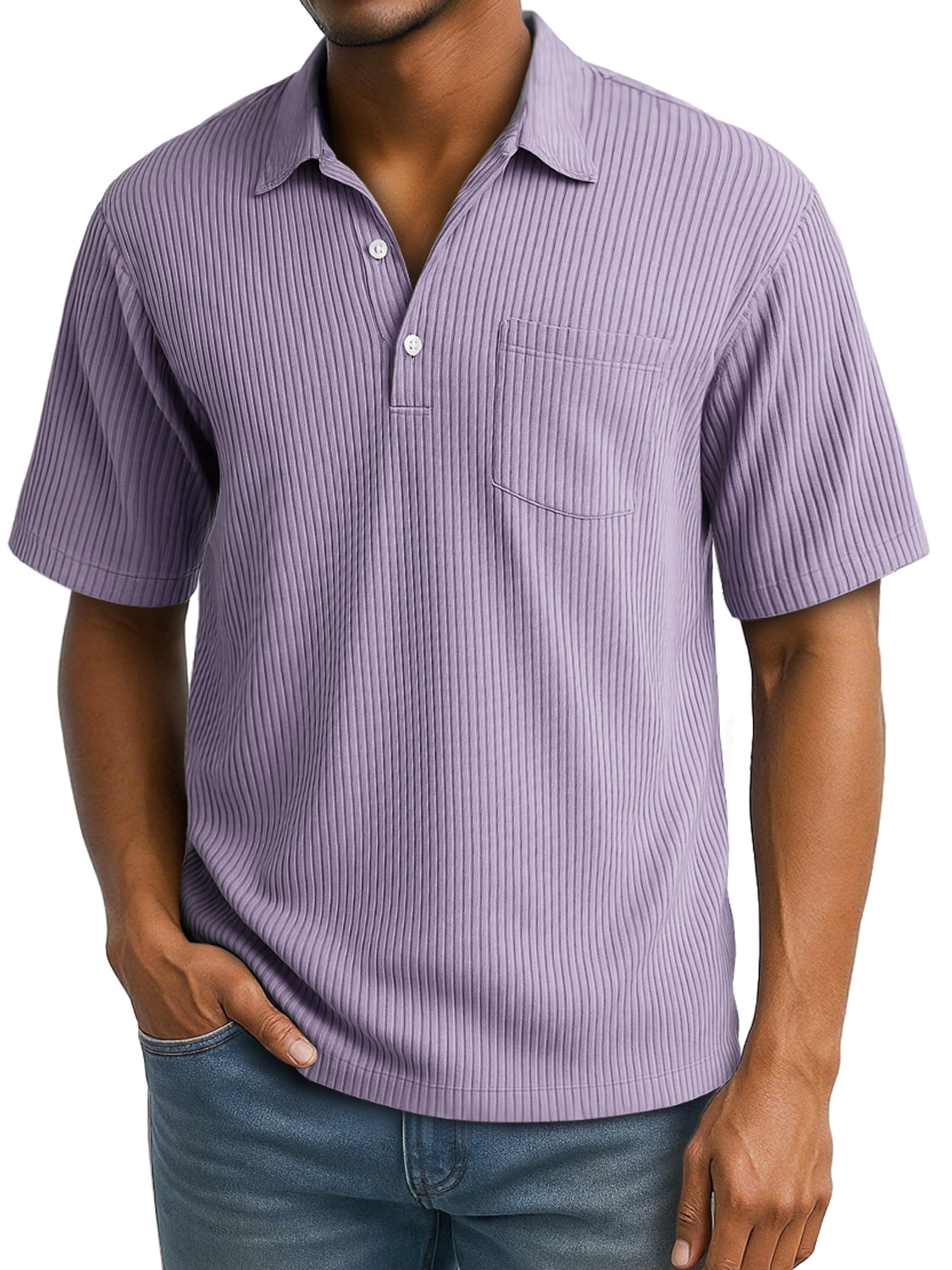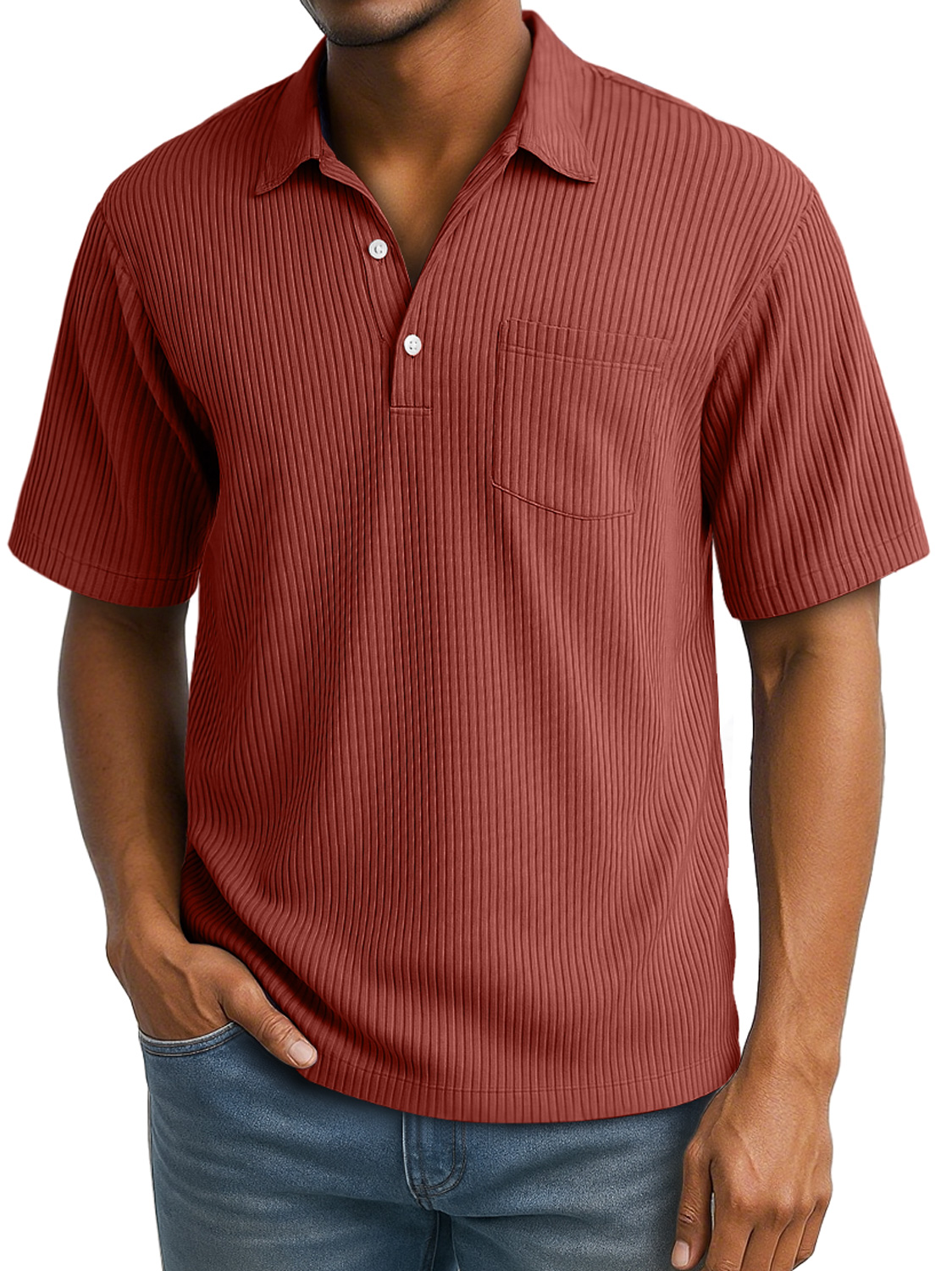 Men's Daily Lapel Pocket Ribbed Short-sleeved Polo Shirt