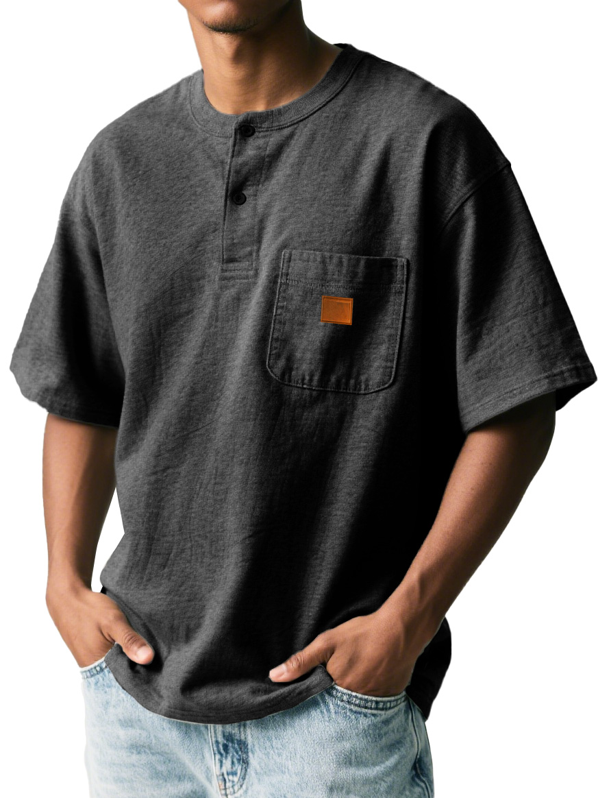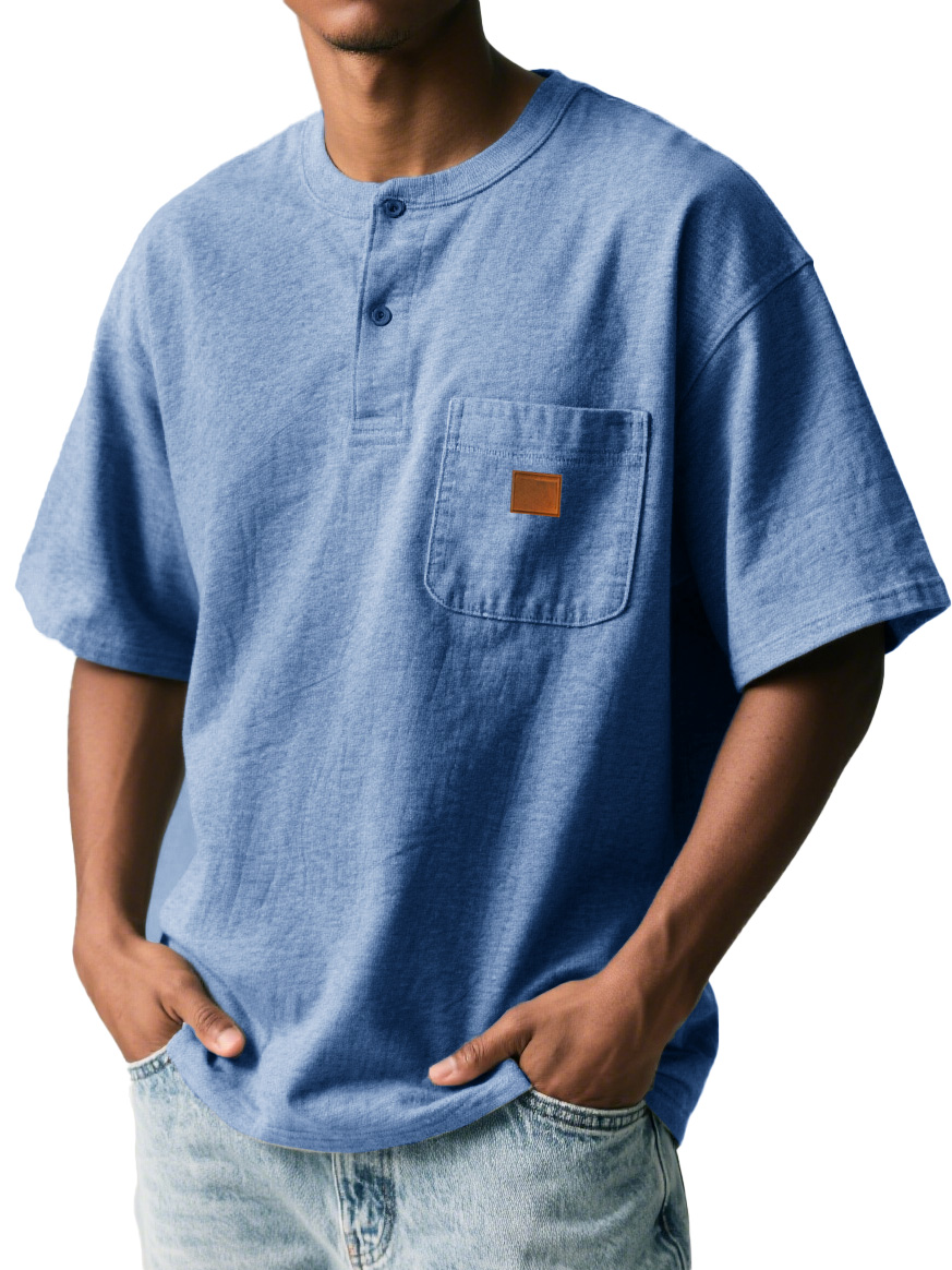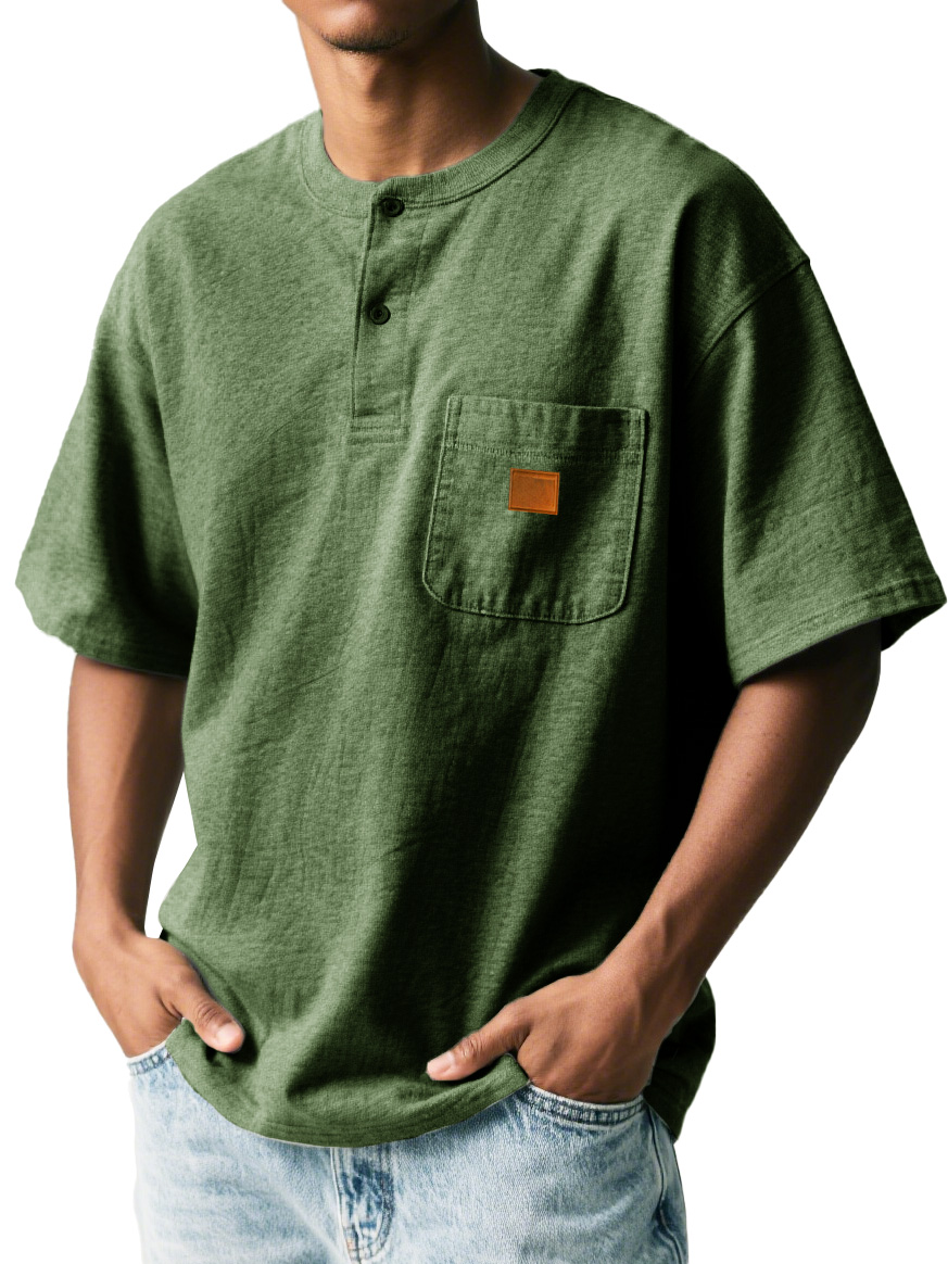 Men's Fashion Retro Sports Pocket Embroidered Button Henley Shirt