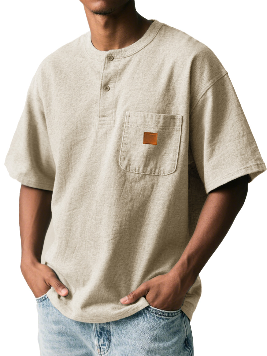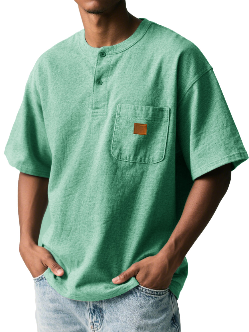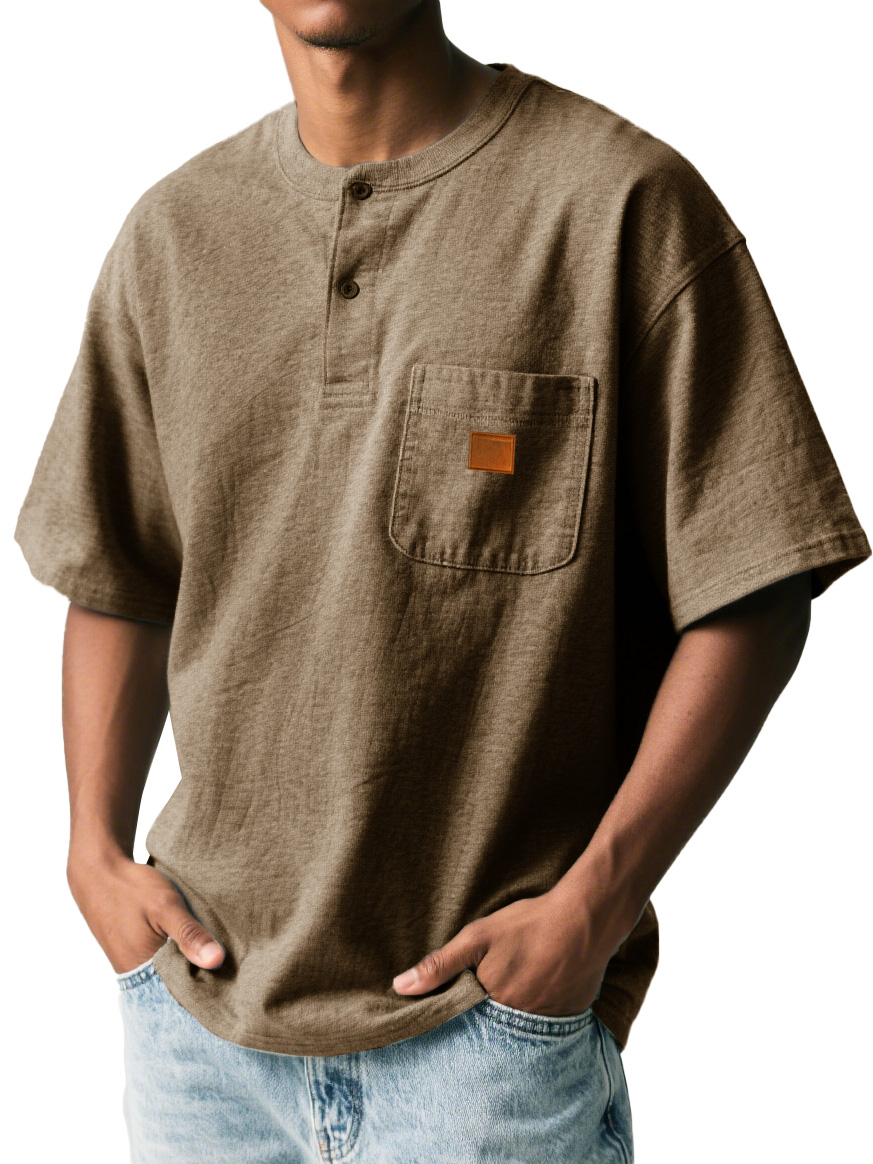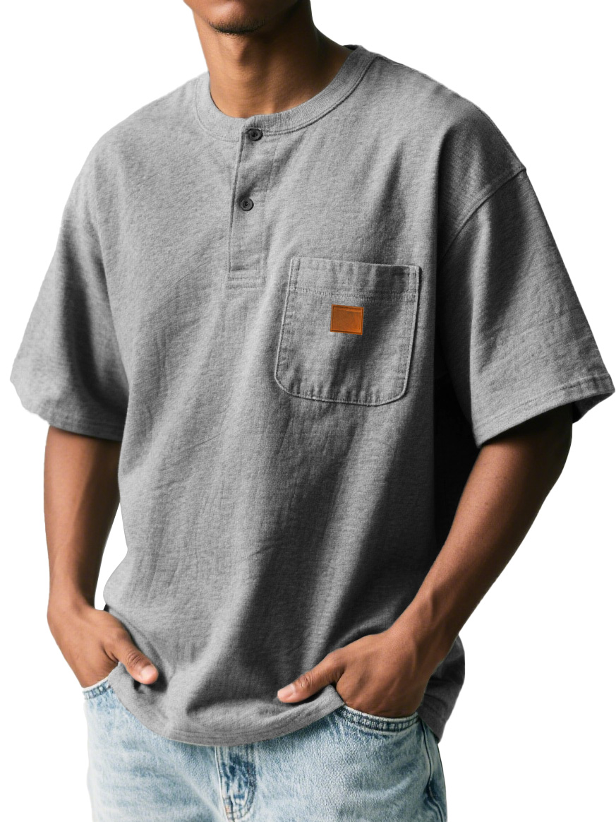 Men's Fashion Retro Sports Pocket Embroidered Button Henley Shirt