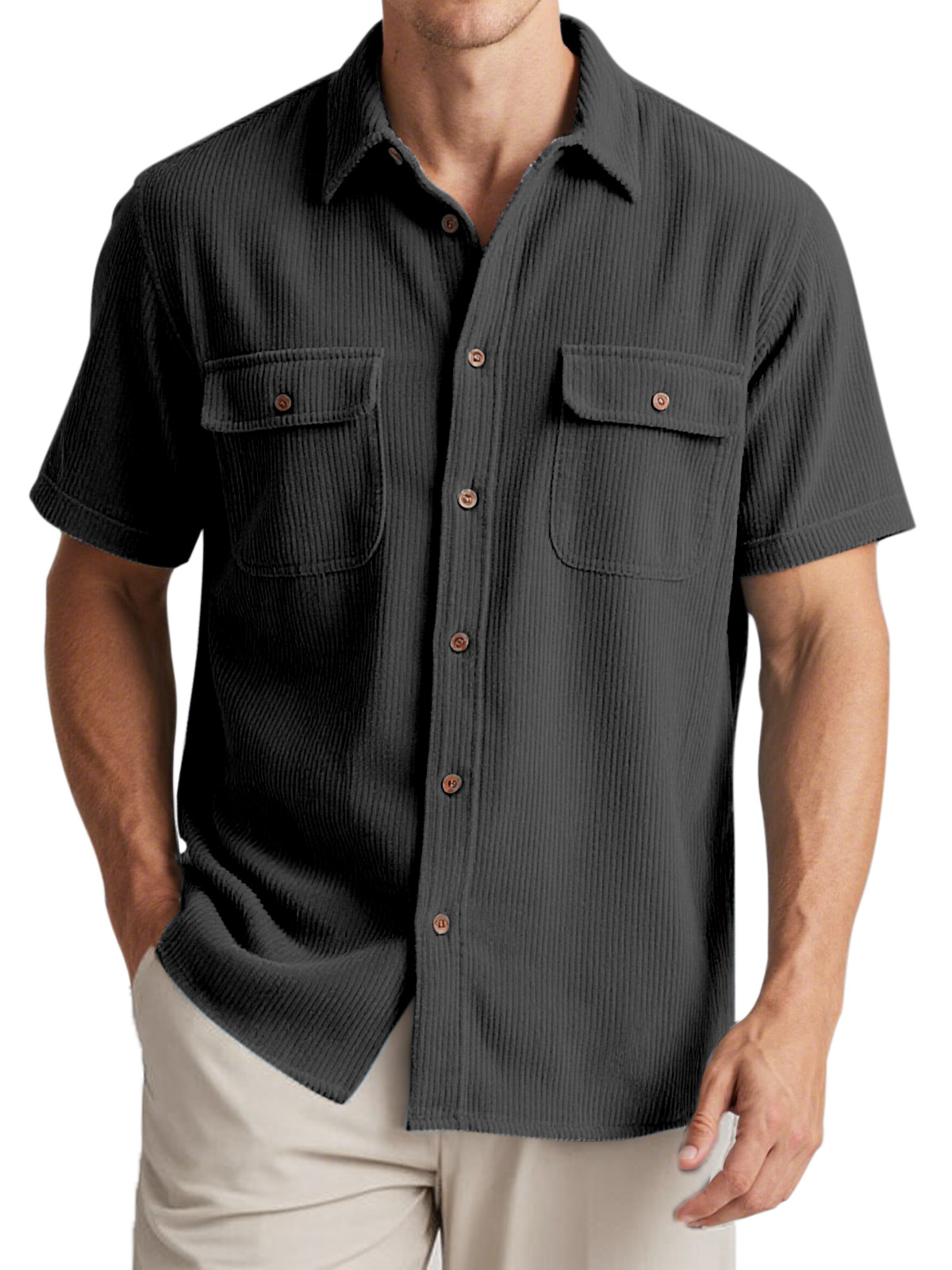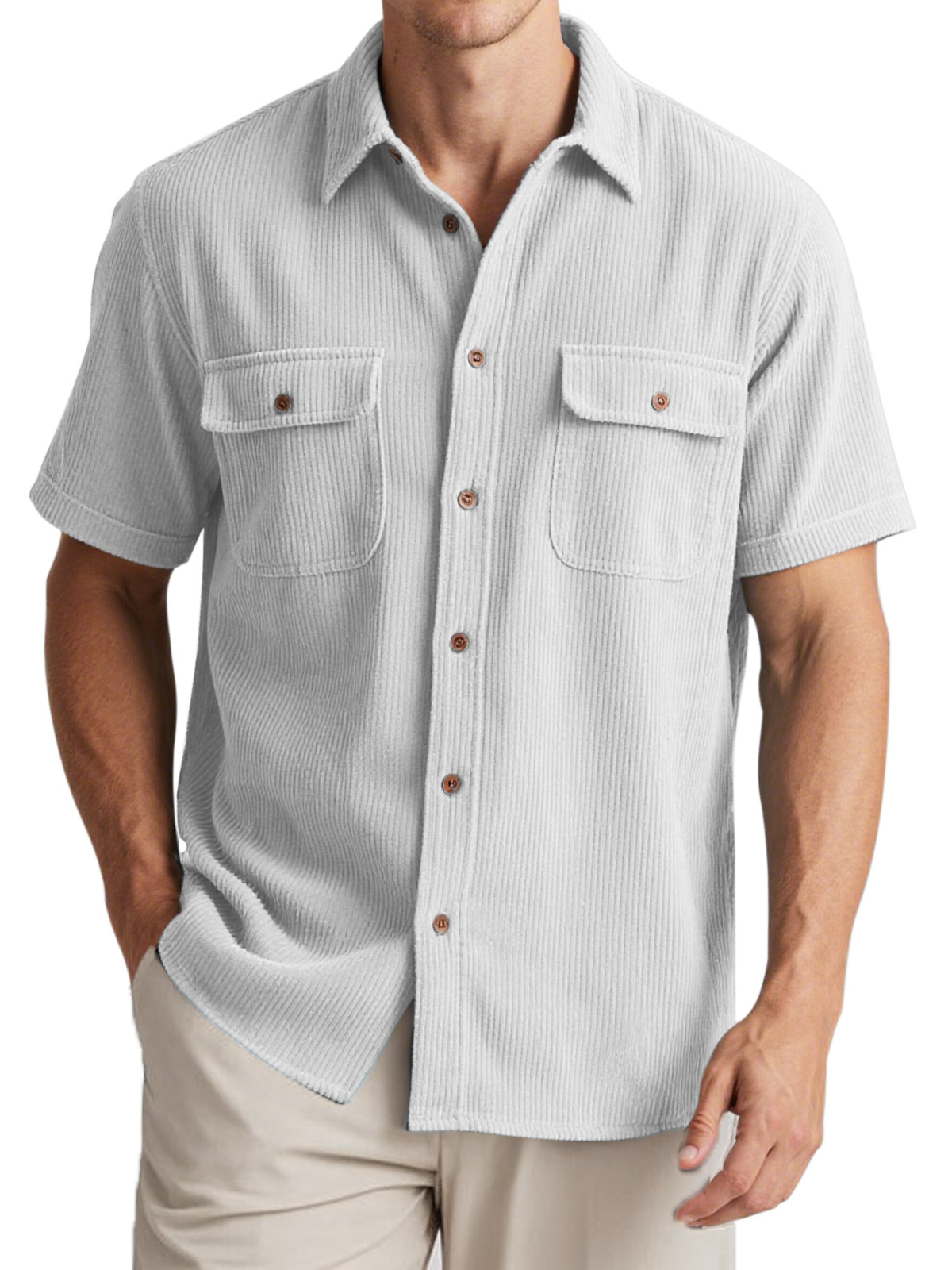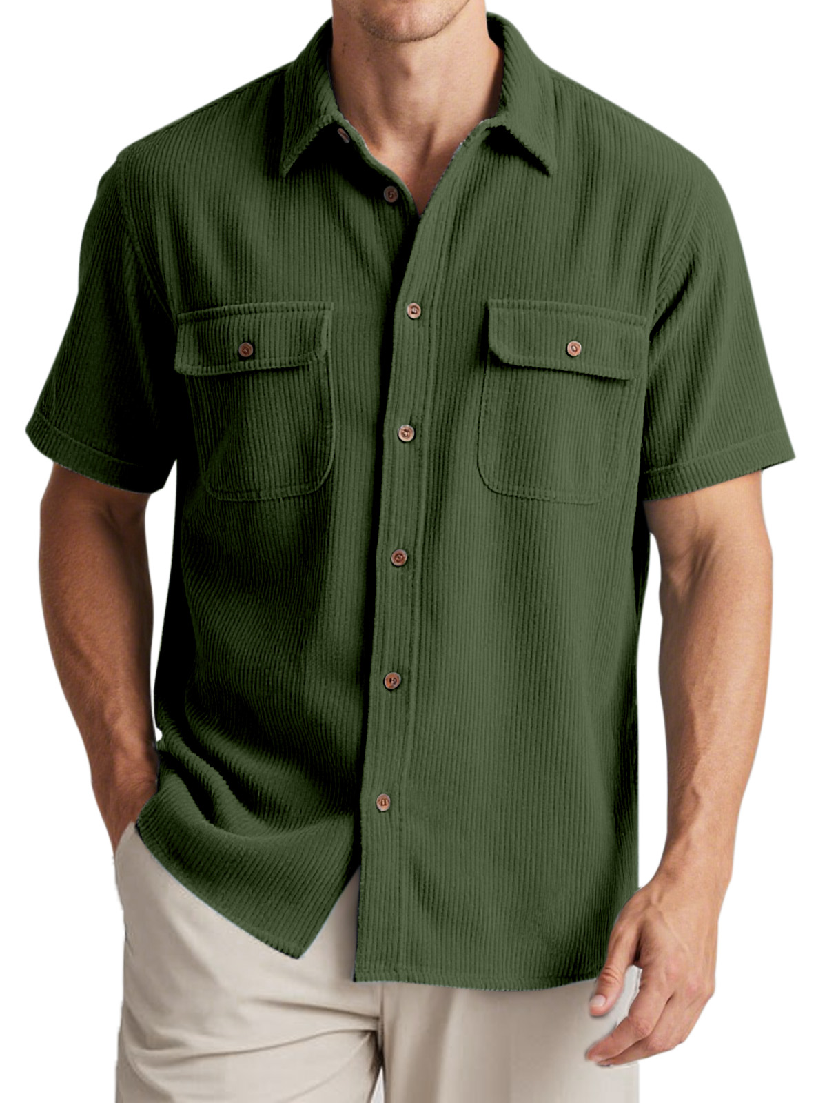 Men's Vintage Double Pocket Corduroy Work Short Sleeve Shirt
