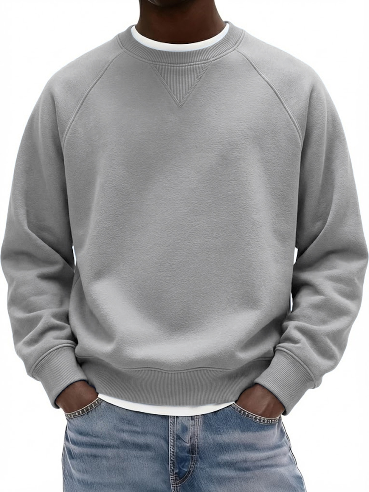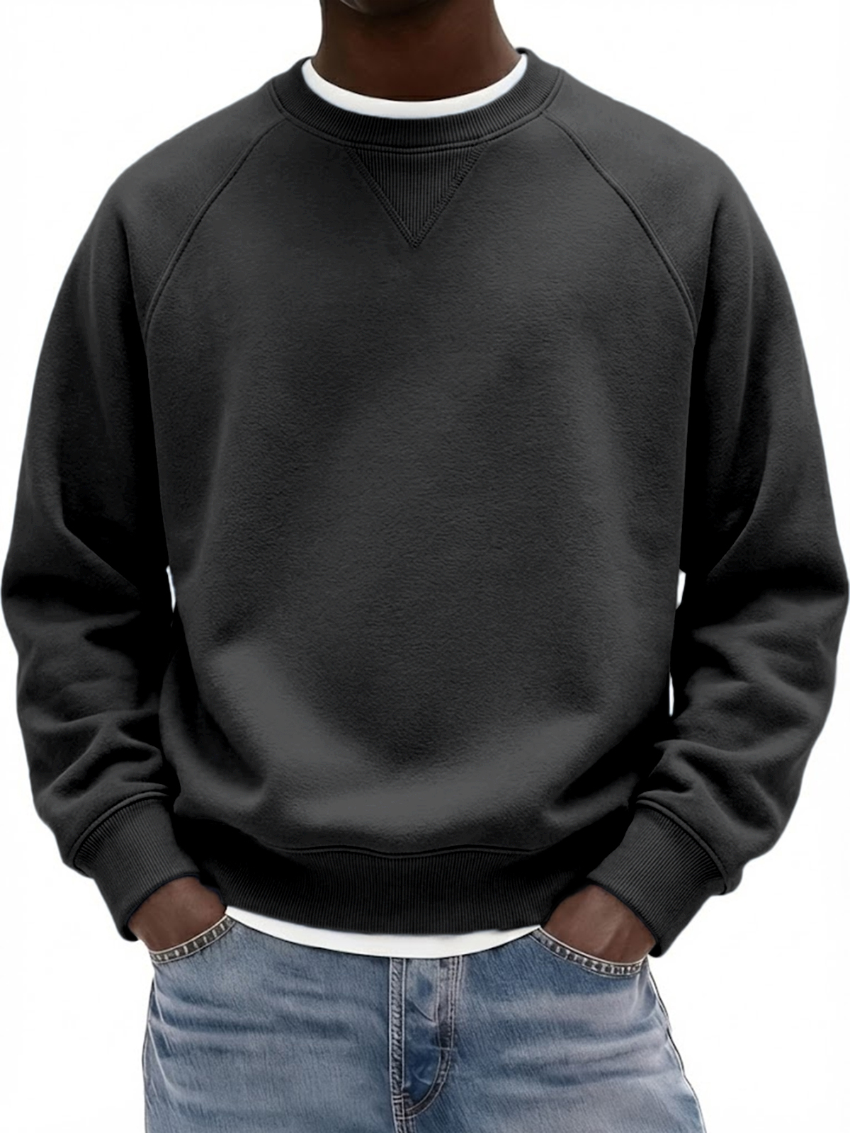 Men's Basic Heavyweight Inverted Triangle Design Raglan Sleeve Pullover Sweatshirt