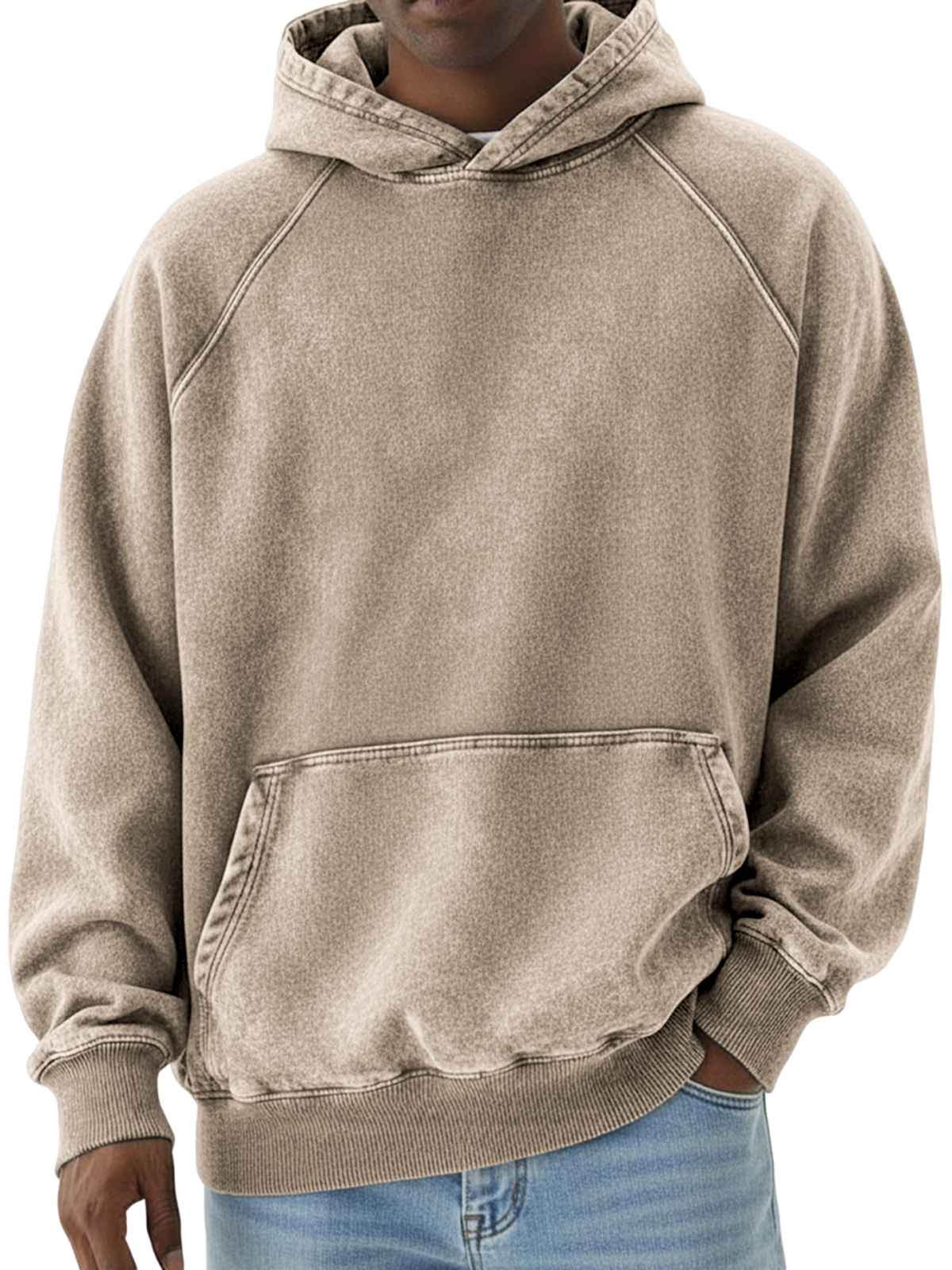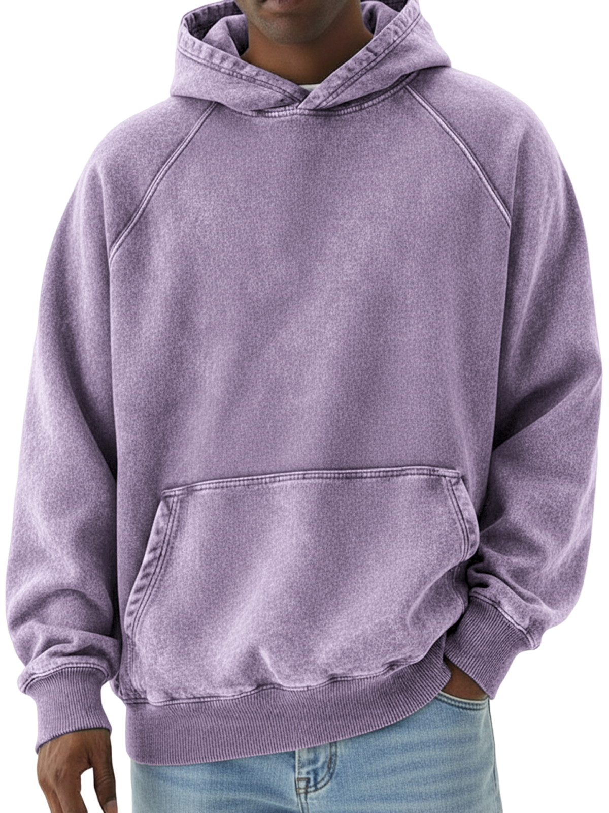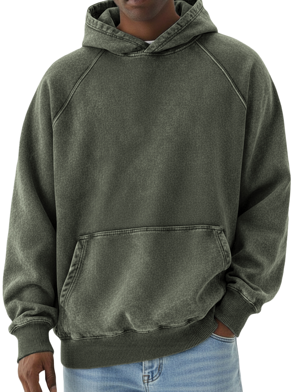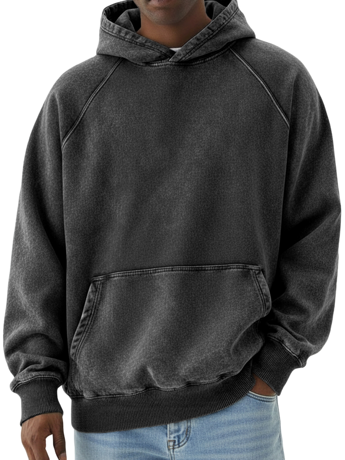 Men's Basic Retro Distressed Raglan Sleeve Pullover Hoodie