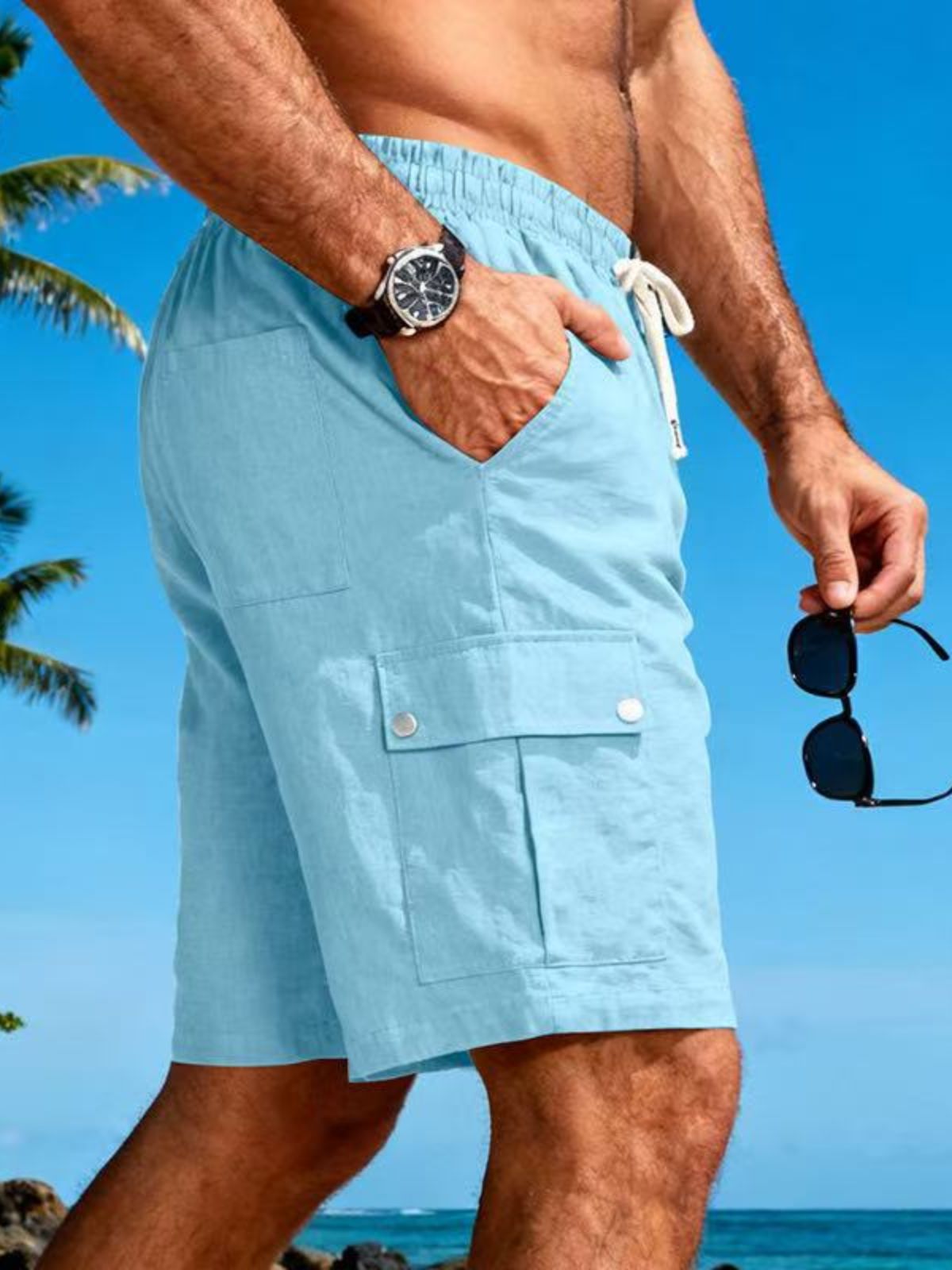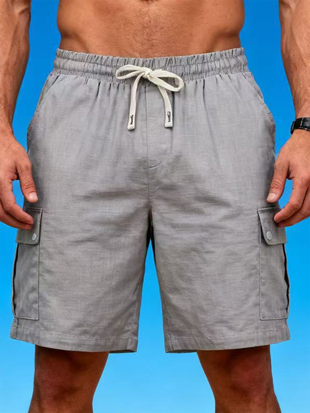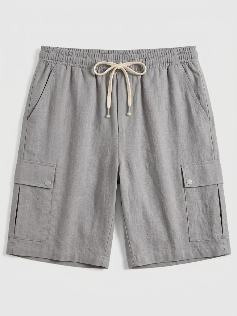 Men's Beachwear-Style Breathable Linen Loose-Fitting Workwear Shorts with Multiple Pockets