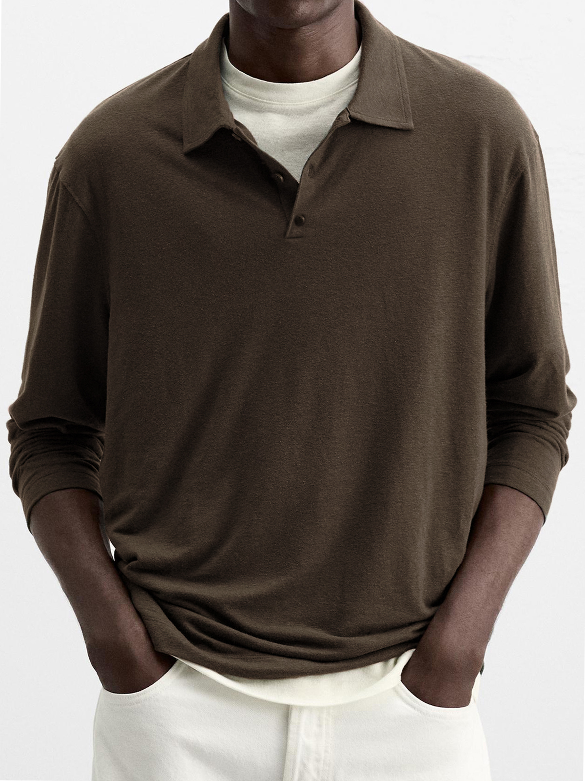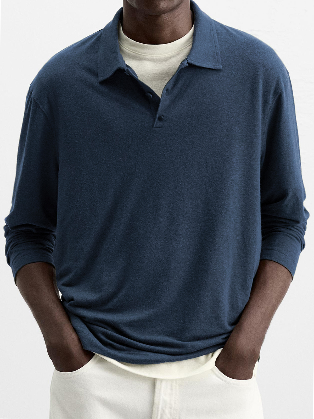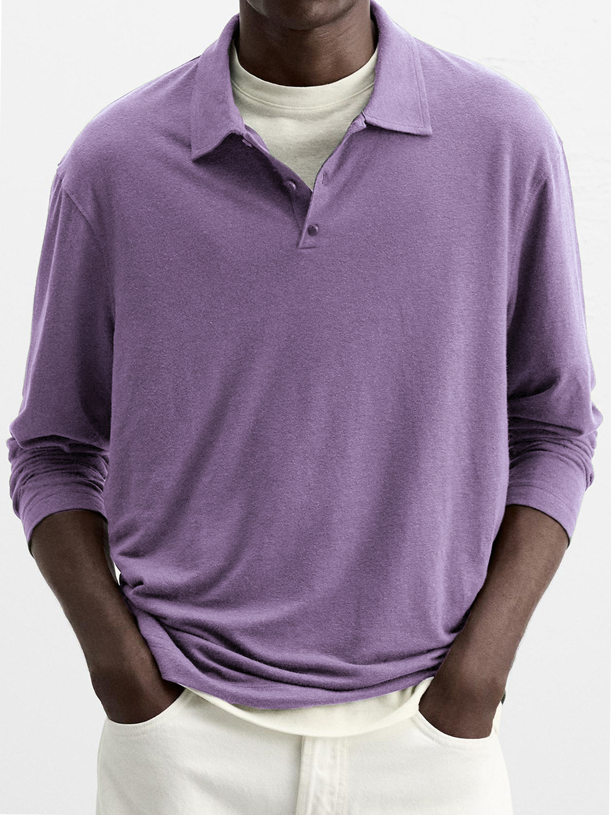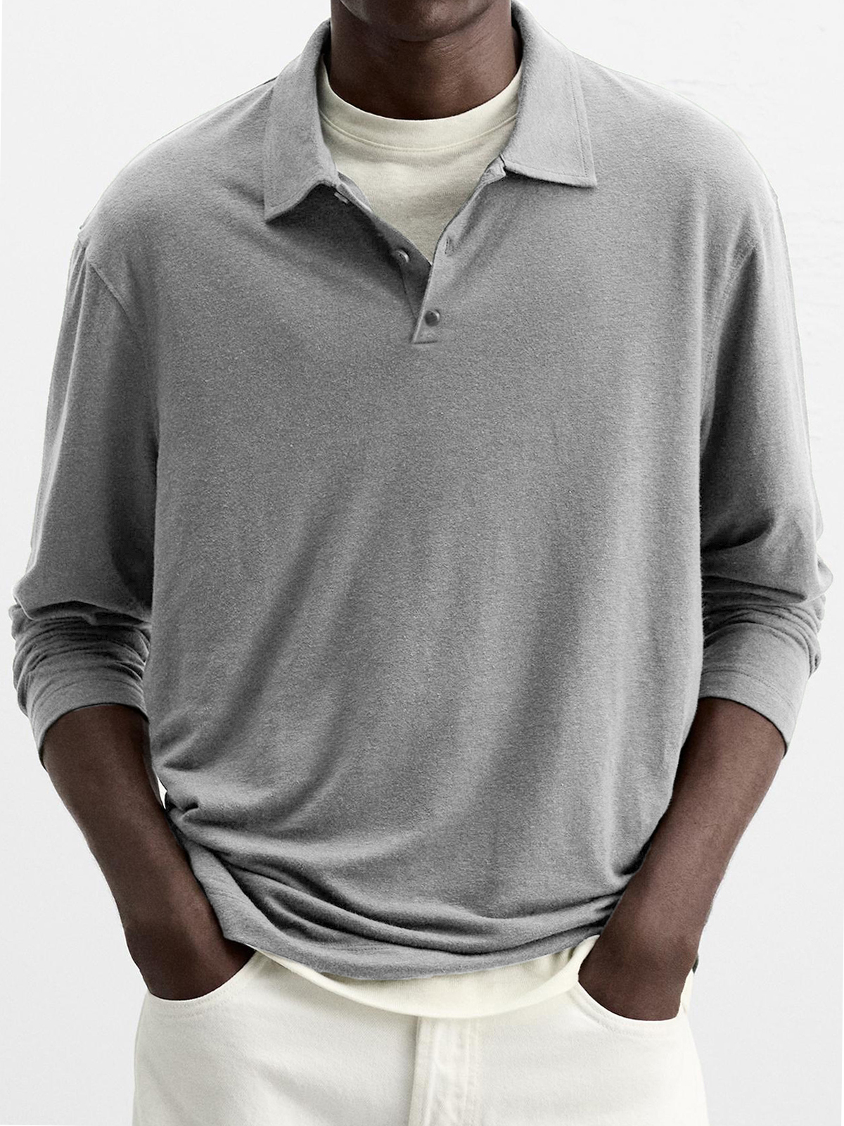 Men's Breathable Casual Soft Button-Down Long Sleeve POLO Shirt