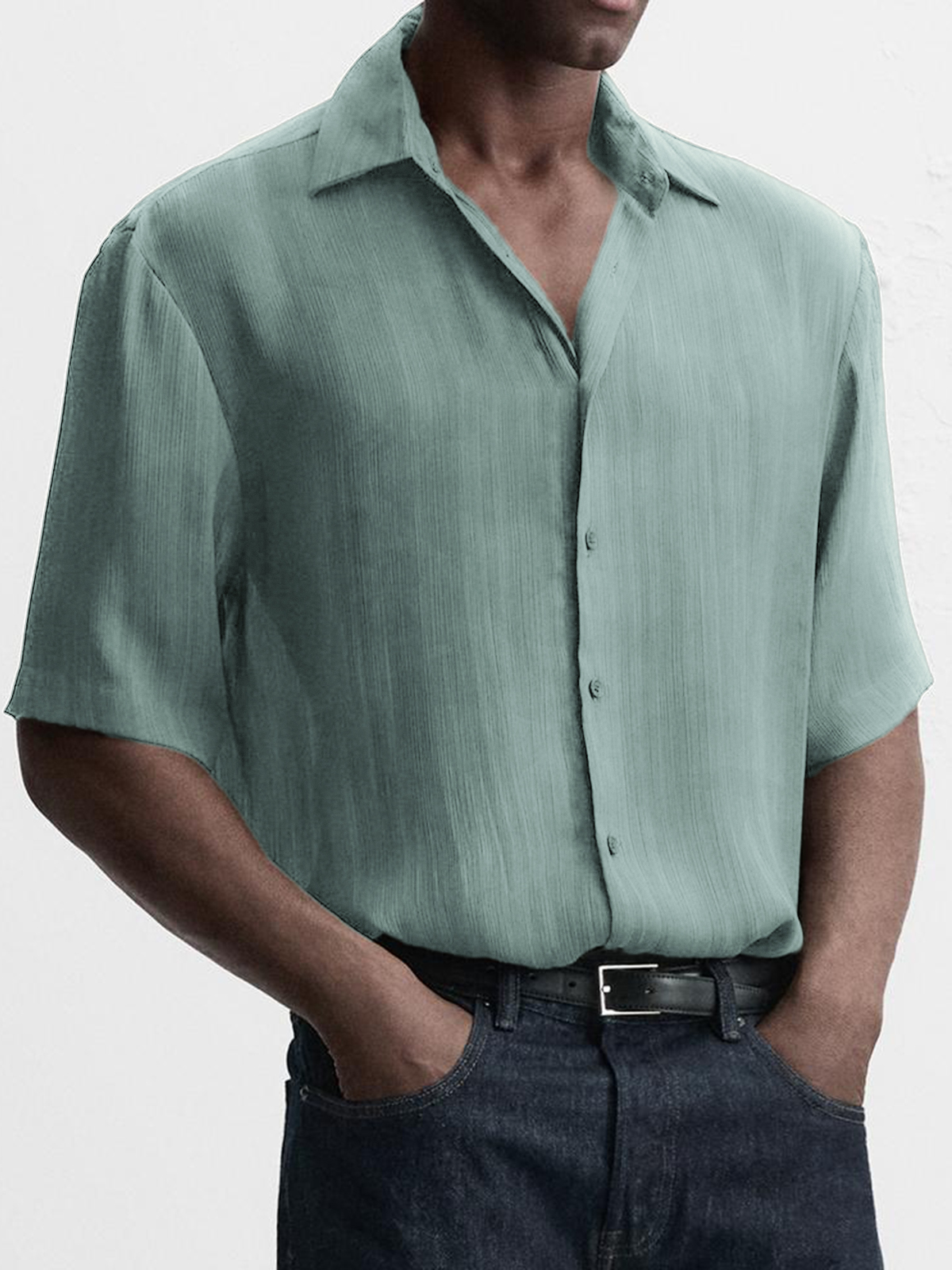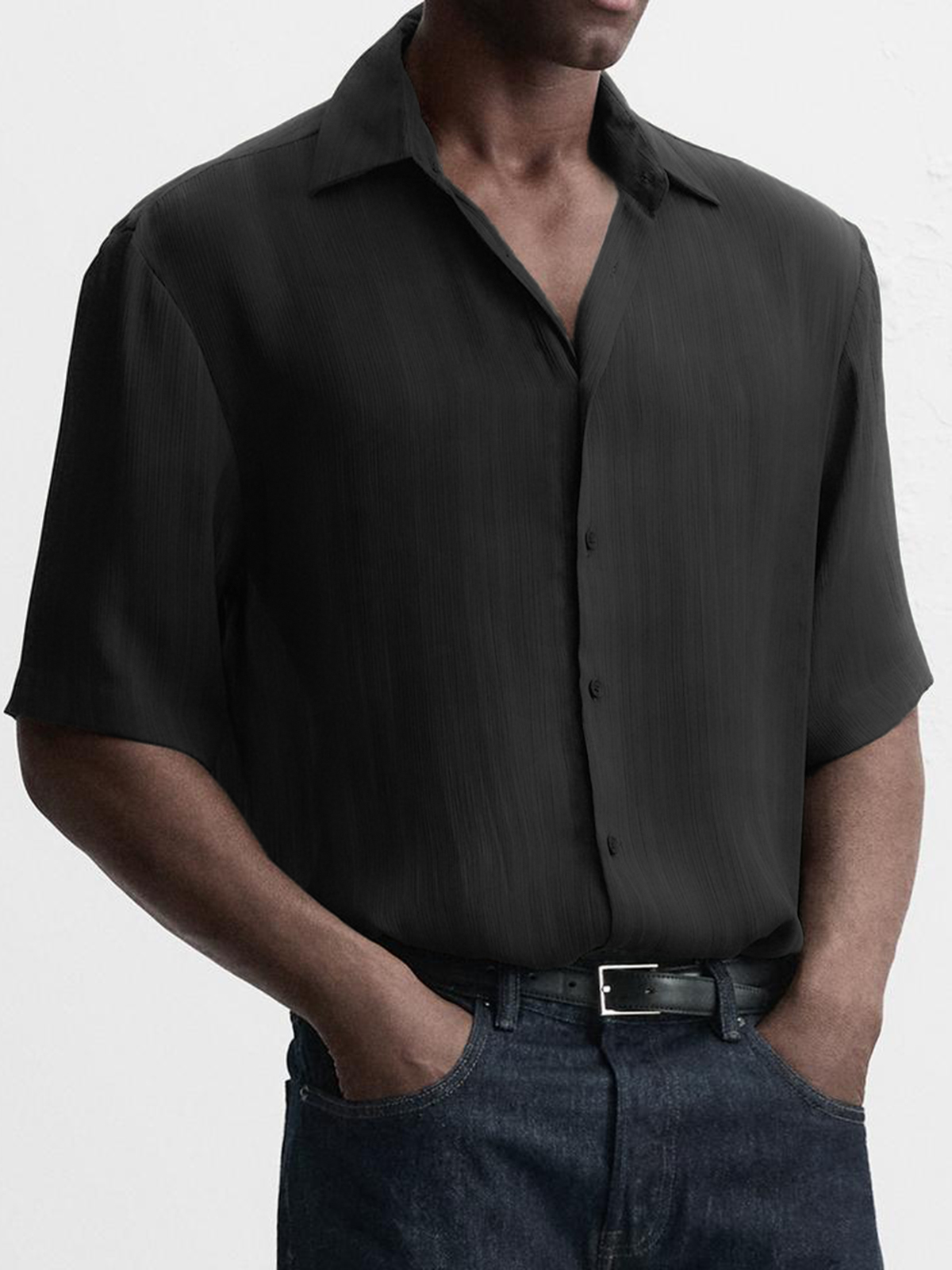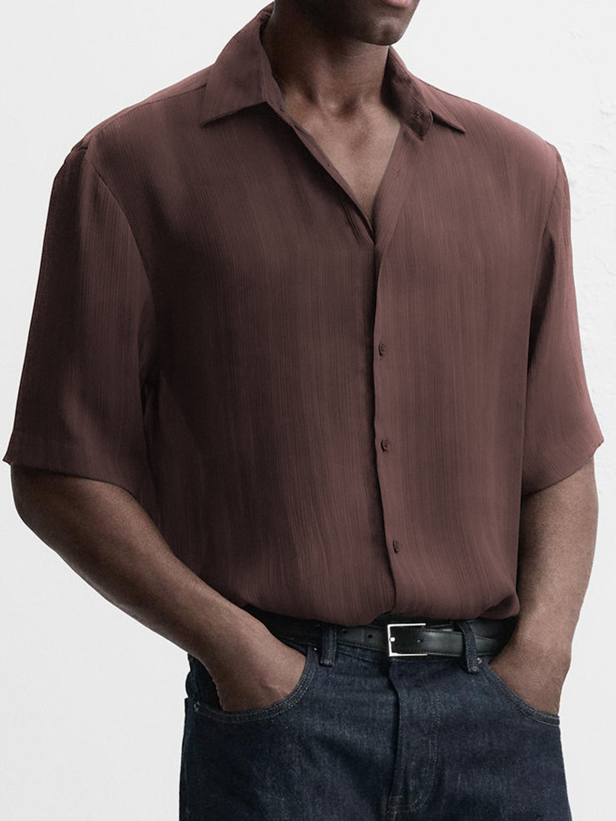 Men's Breathable Textured Casual Short Sleeve Basic Shirt