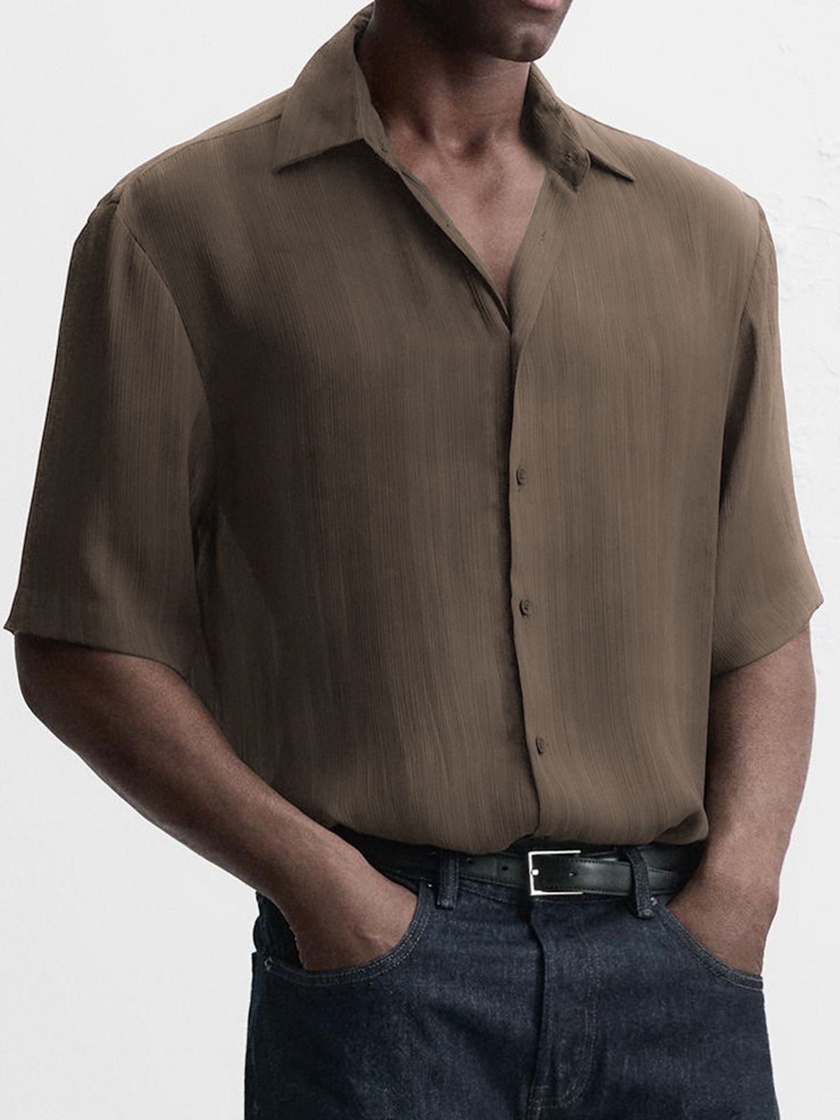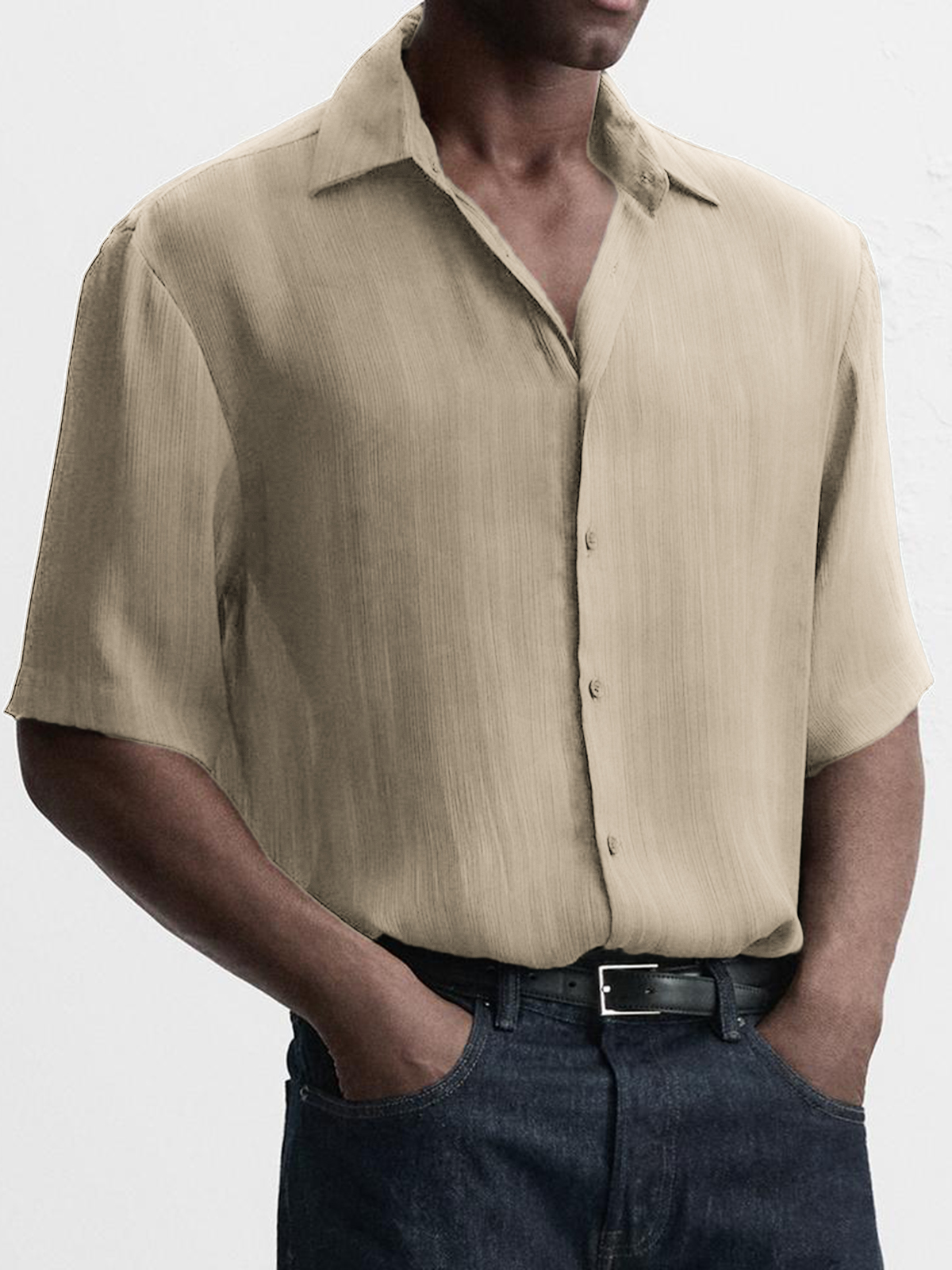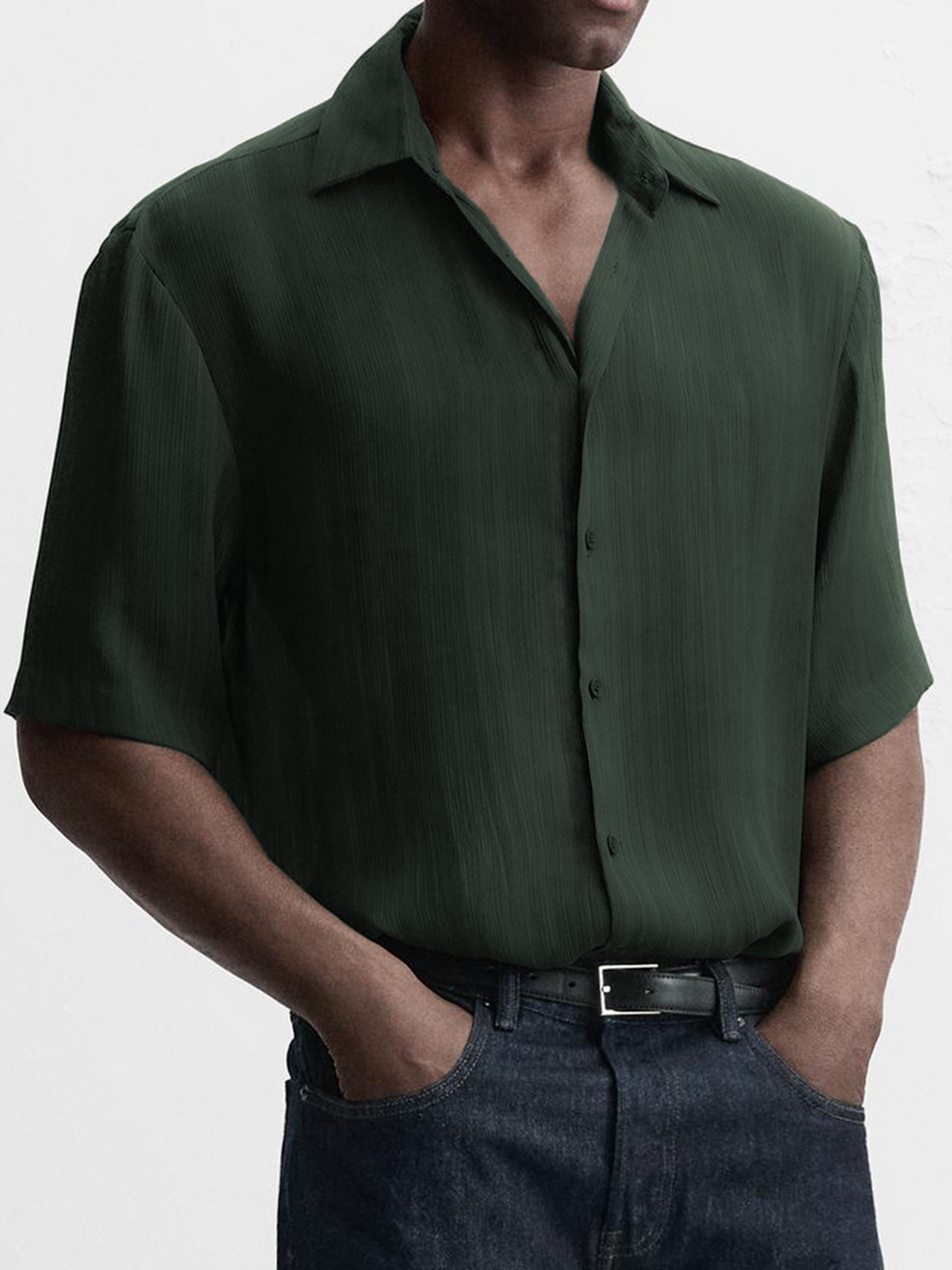 Men's Breathable Textured Casual Short Sleeve Basic Shirt