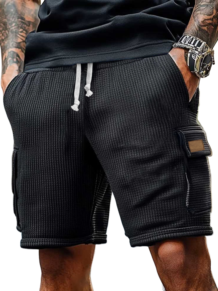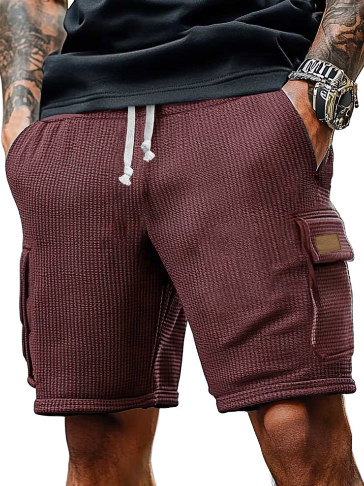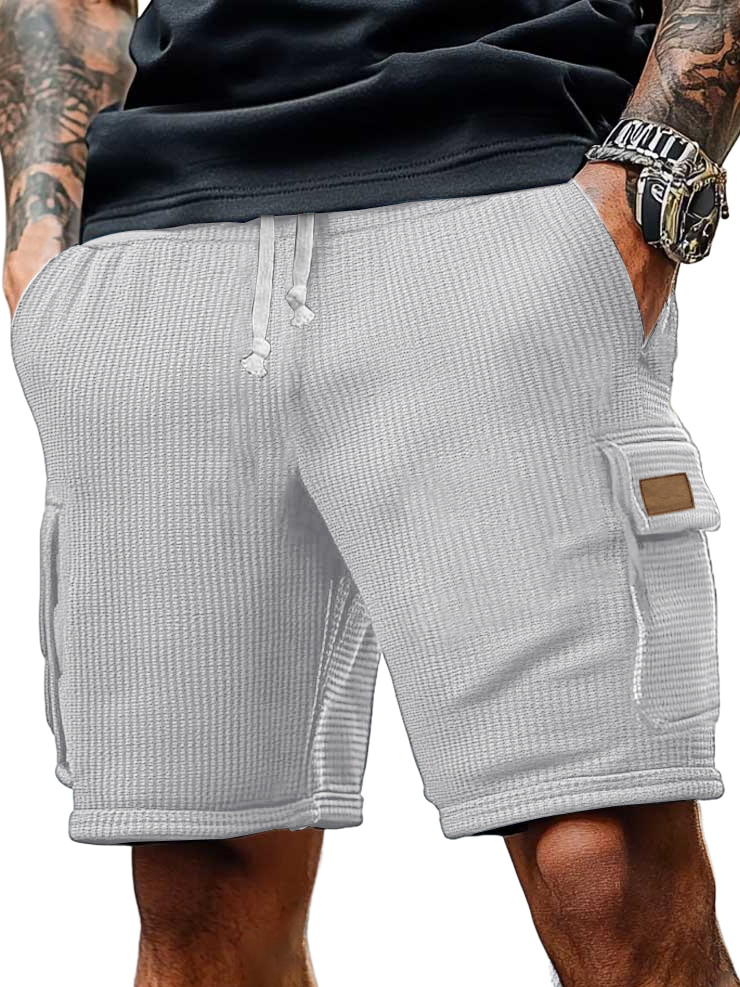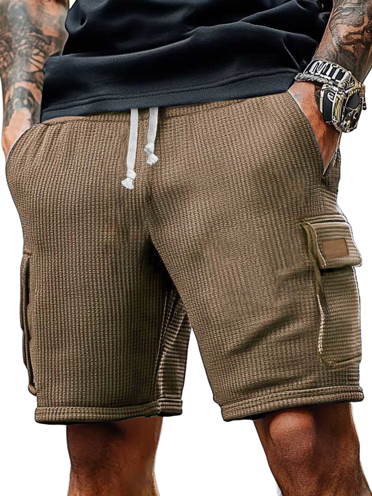 Men's Cargo Retro Multi-pocket Casual Waffle Logo Shorts
